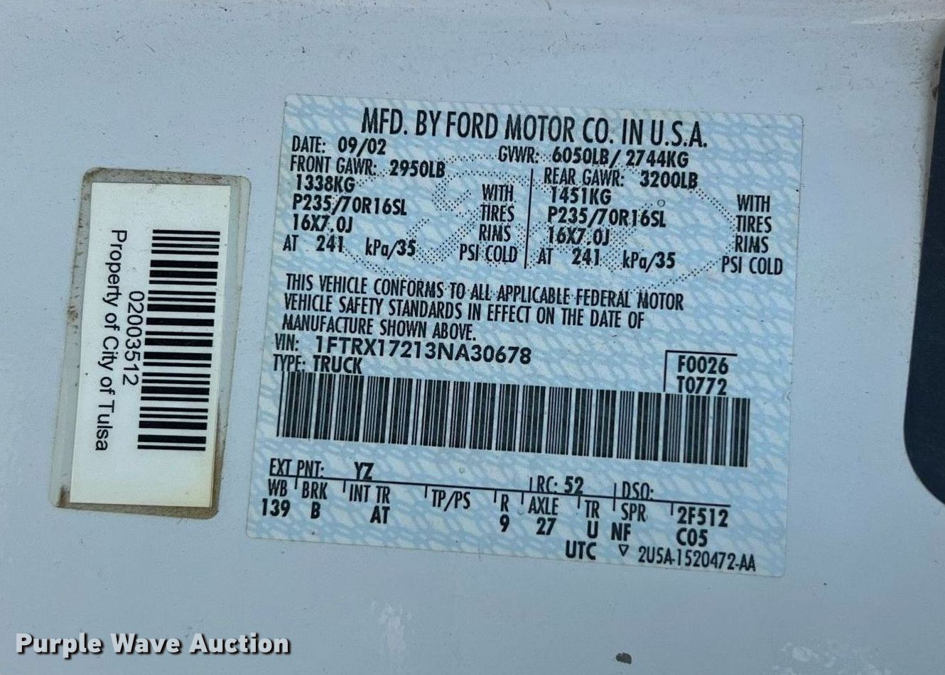 Purple Wave is selling a used 1/2 Ton Pickup or Van in Oklahoma. This item is a 2003 Ford F150 SuperCab pickup truck with the following: Miles: 60,878 on odometer, VIN: 1FTRX17213NA30678, Unit #: 705