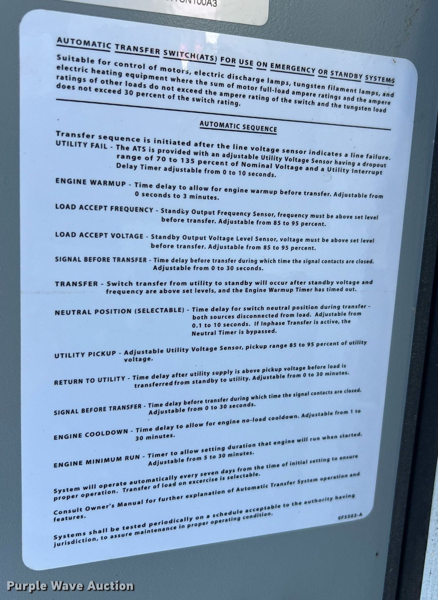 Purple Wave is selling a used Generator Set in Oklahoma. This item is a 2008 Generac 9922440100 generator with the following: Hours: 530 on meter, Serial: 2098307, Unit #: 714