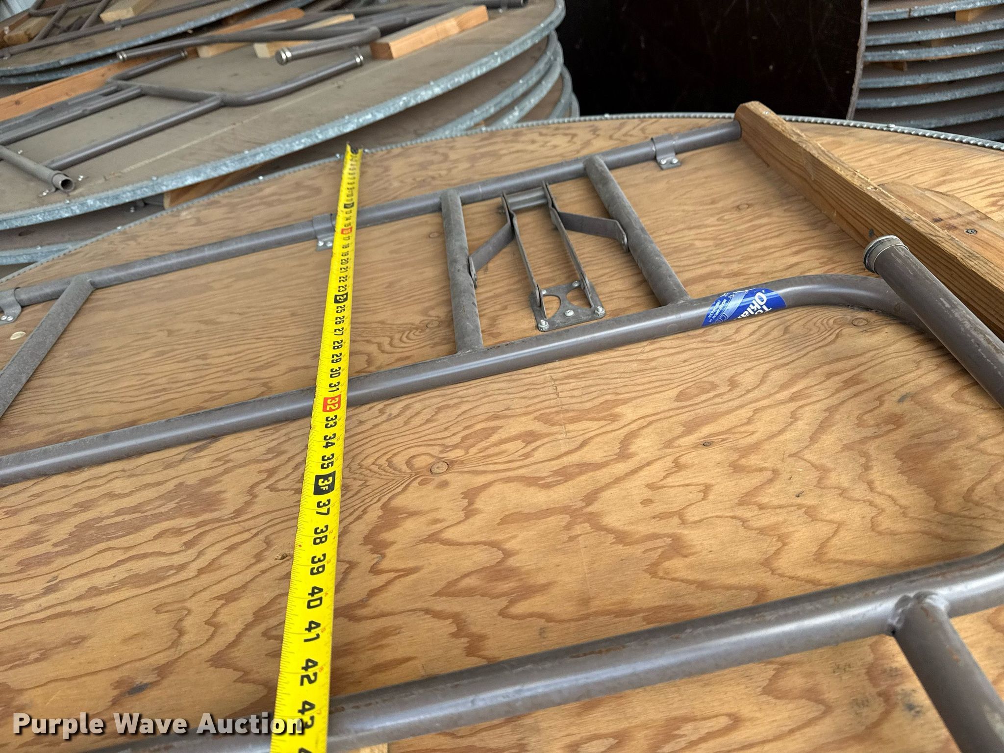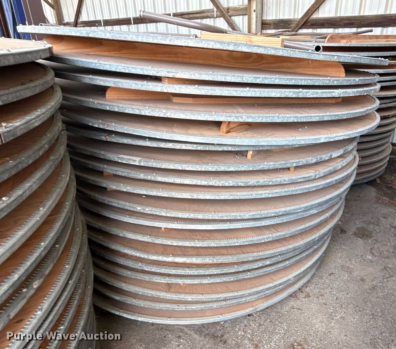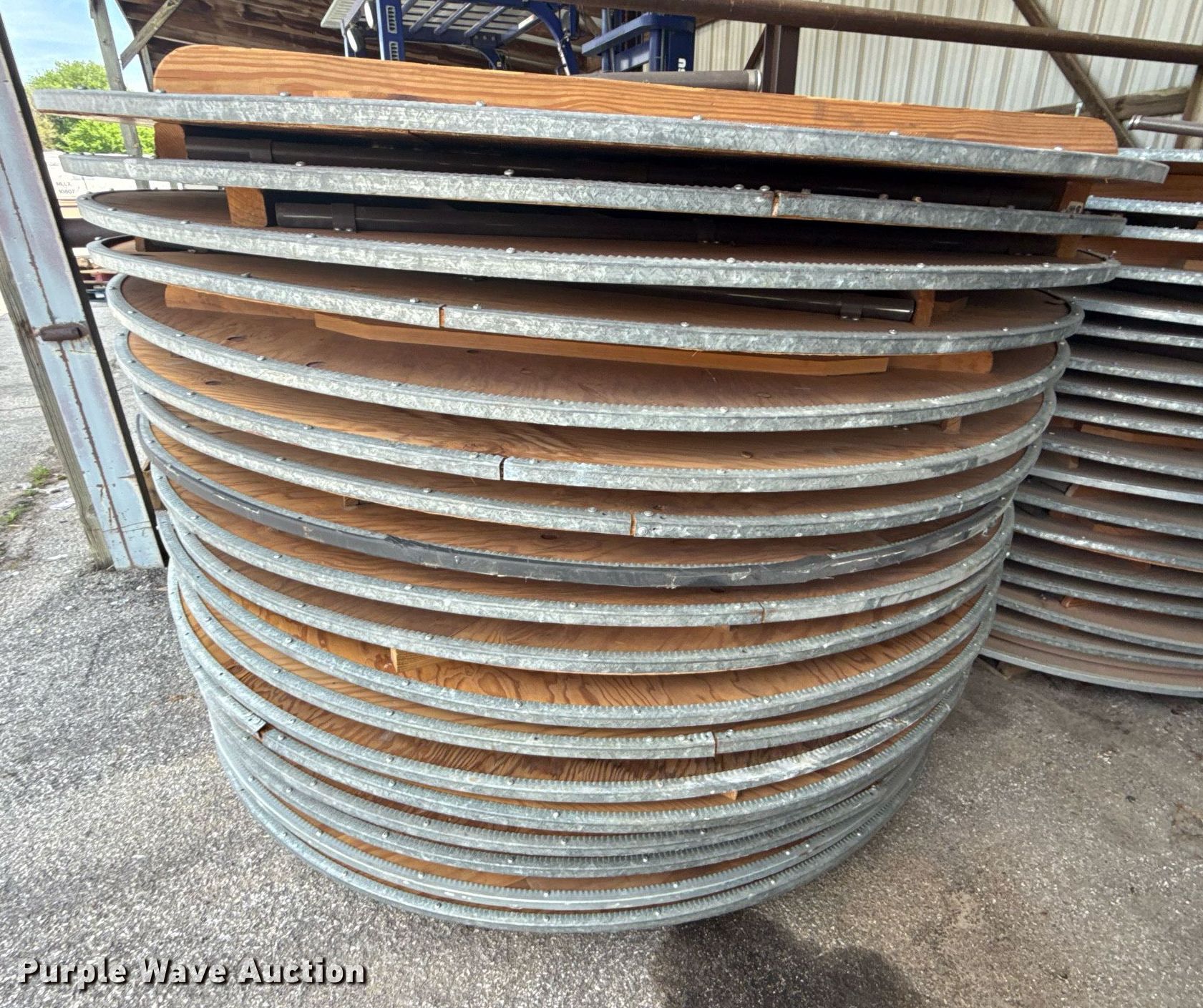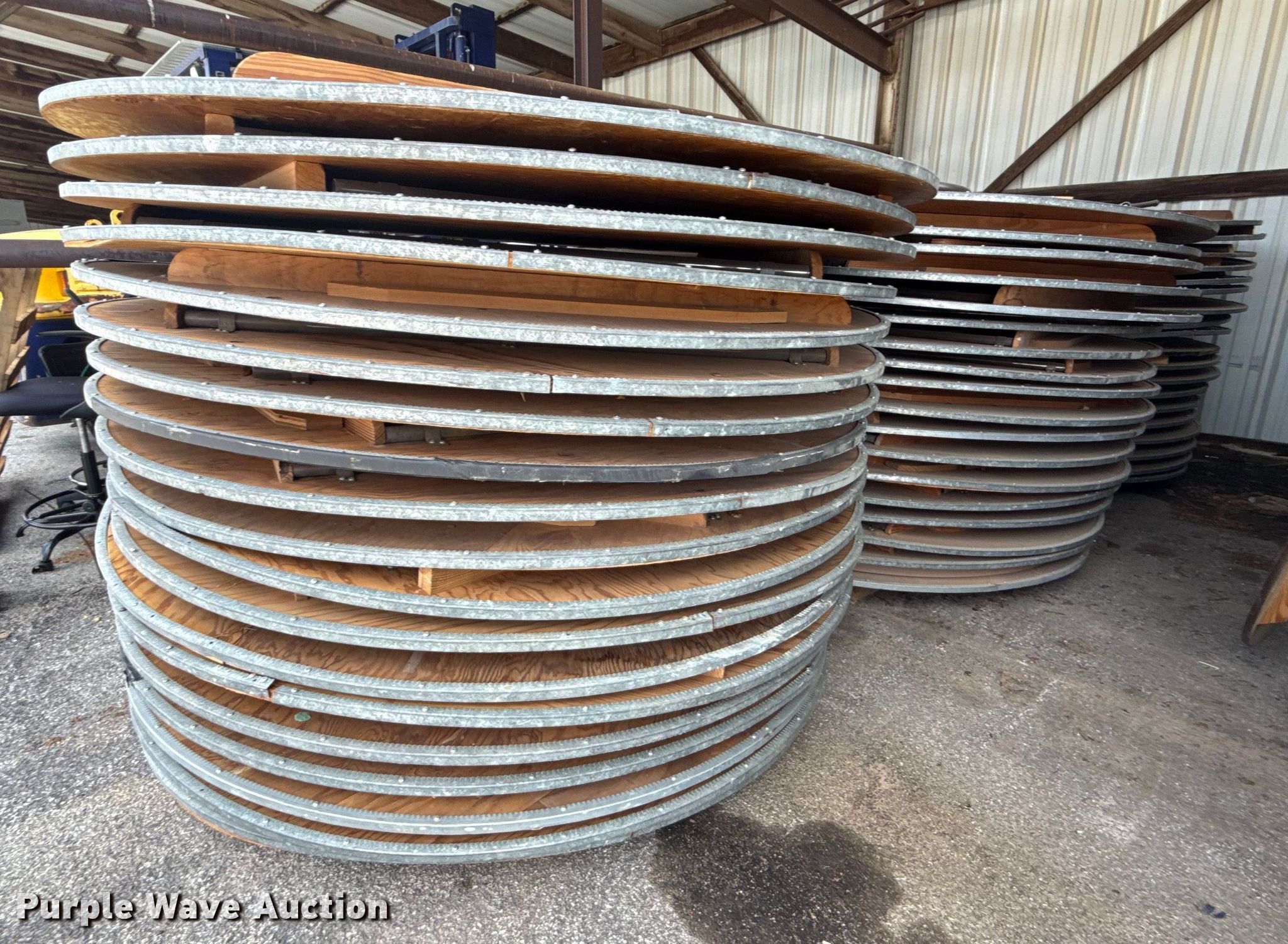 Purple Wave is selling a used Furniture in Oklahoma. This item is a Approximately 56 tables with the following: Diameter: Approx. 72", Unit #: 102