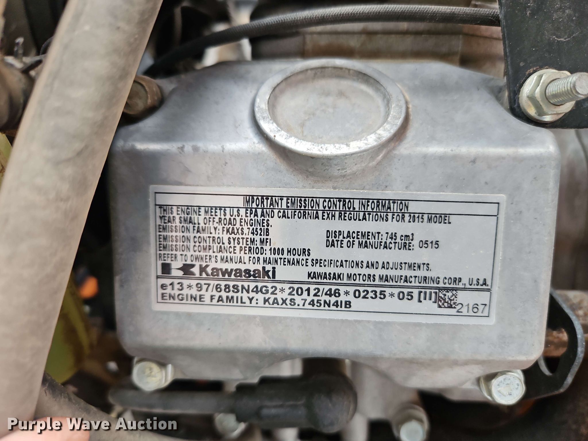 Scagg Turf Tiger ZTR lawn mower. Hours: 794 on meter, Cutting width: 60". Engine Kawasaki, Displacement: 745 cc, Cylinders: 2, Fuel type: Gas. Transmission Hydrostatic. Operators station OROPS. Tires Front: 13x6.50-4.50, Rear: 24x12.00-12. City of Prairie Village KS. Prairie Village, KS 66208