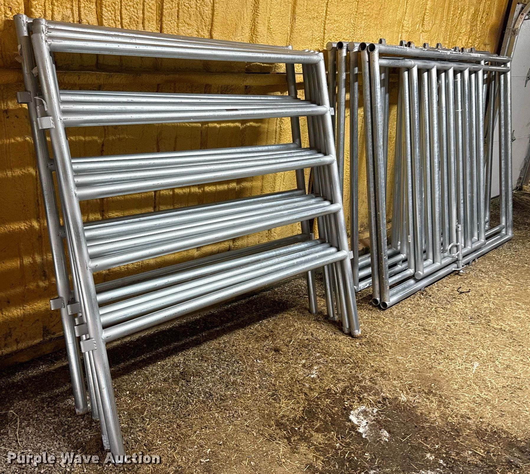 Purple Wave is selling a used Livestock Equip. in Oklahoma. This item is a Noble livestock pens with the following: (6) outside panels, 6' L x 5' H, (5) divider panels, Length: 5' L x 5' H, (5) gates, Width: 5' L x 7' H