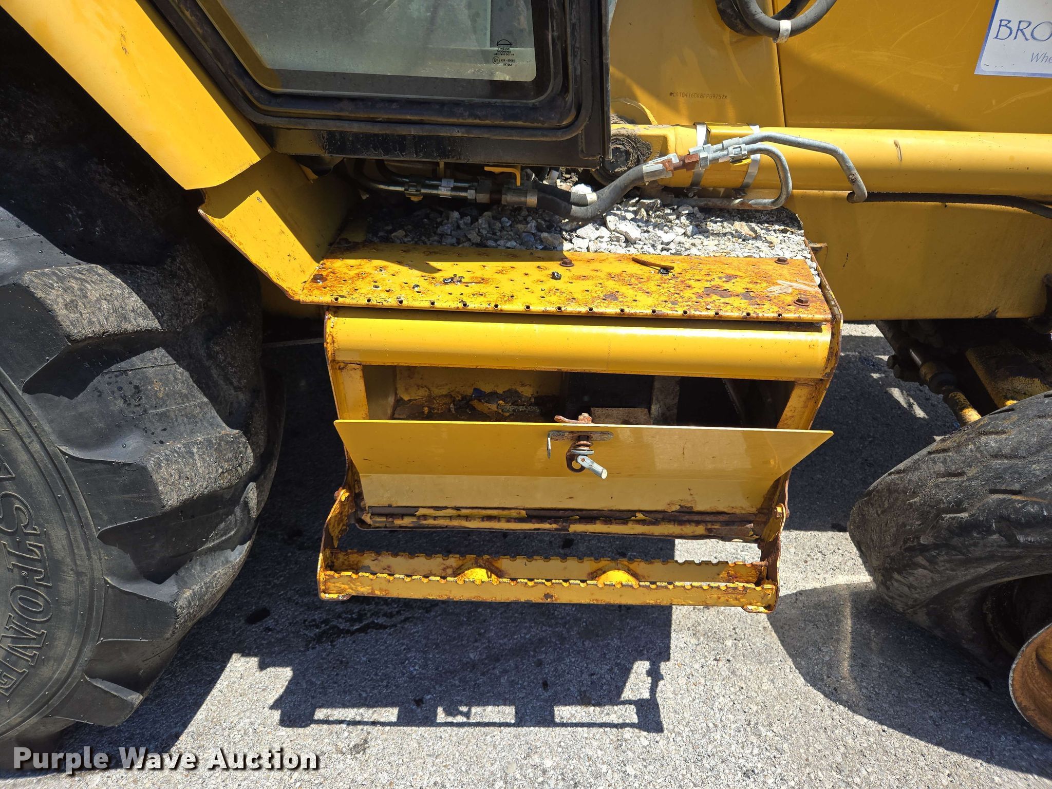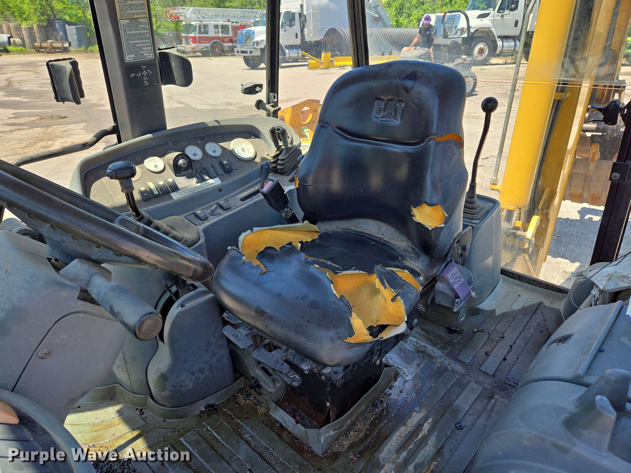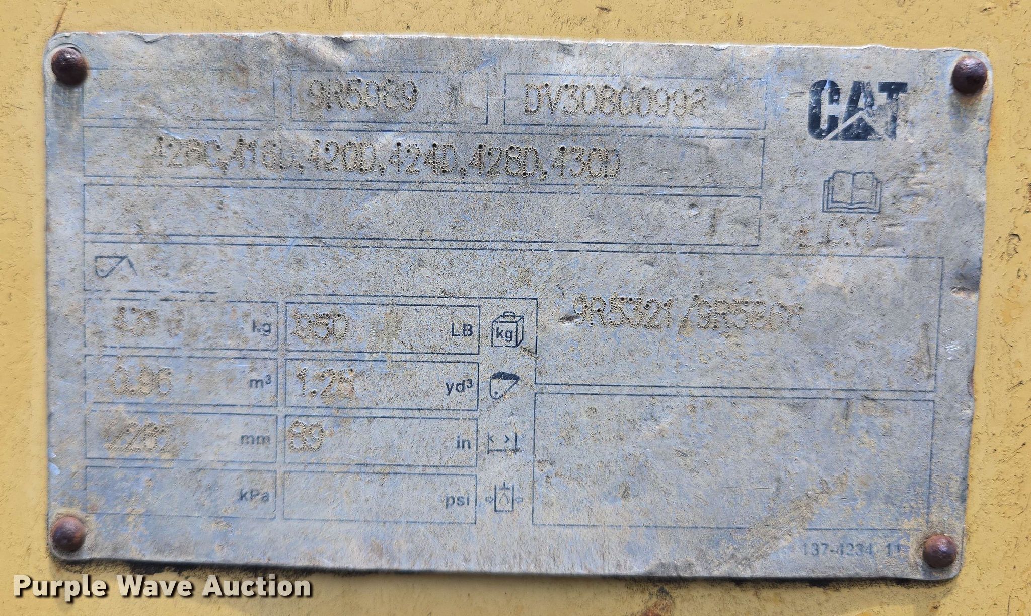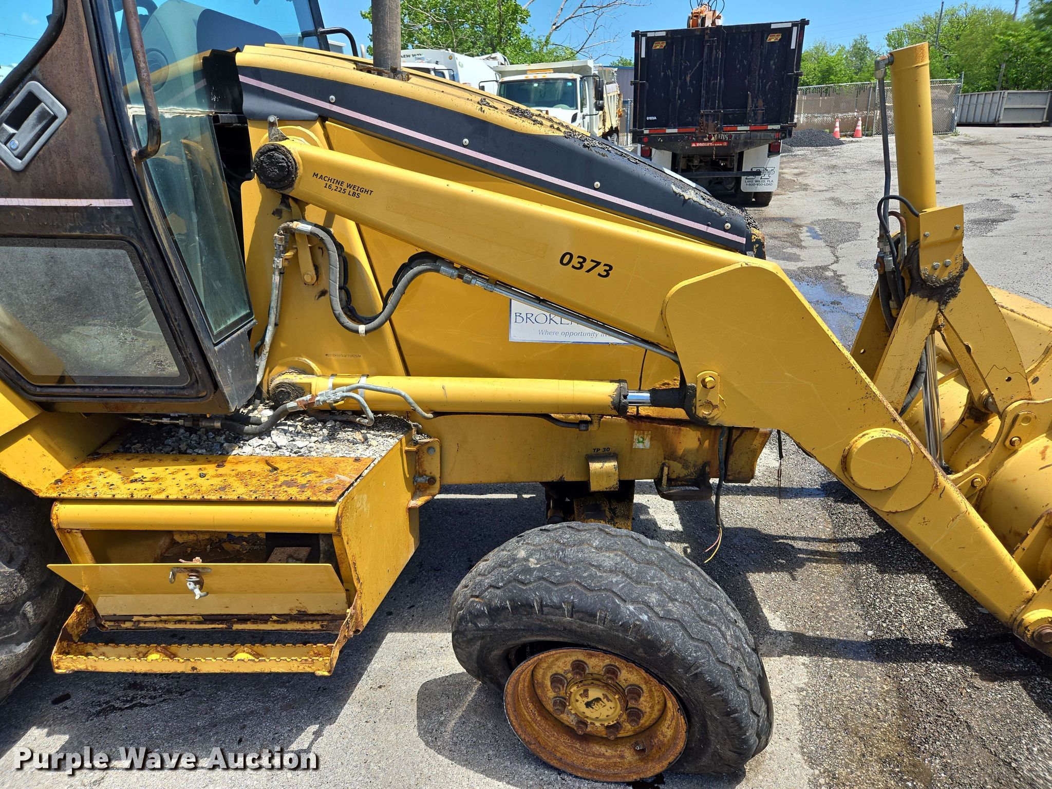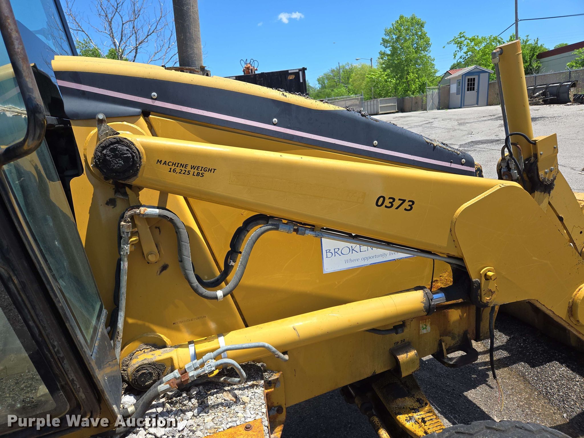 2004 Caterpillar 416D backhoe. Hours: 3,349 on meter, Serial: CAT0416DKBFP09757. Engine Caterpillar, Cylinders: 4, Fuel type: Diesel. Transmission Shuttle shift, 4F - 4R. Chassis Differential lock. Operators station Enclosed cab, AC, Heat, Backhoe controls: Wobble stick / two stick. Features Loader Bucket Caterpillar, Capacity: 1.25 cu.yd., Width: 88", Backhoe Thumb: Manual, Bucket Width: 24", Teeth: 5.. Tires Front: 11L-16, Rear: 19.5L-24. Notes Tire damaged, needs replaced, Glass cracked, Door issues, damaged, Hydraulic leak, Unknown operating condition. City of Broken Arrow. Broken Arrow, OK 74012