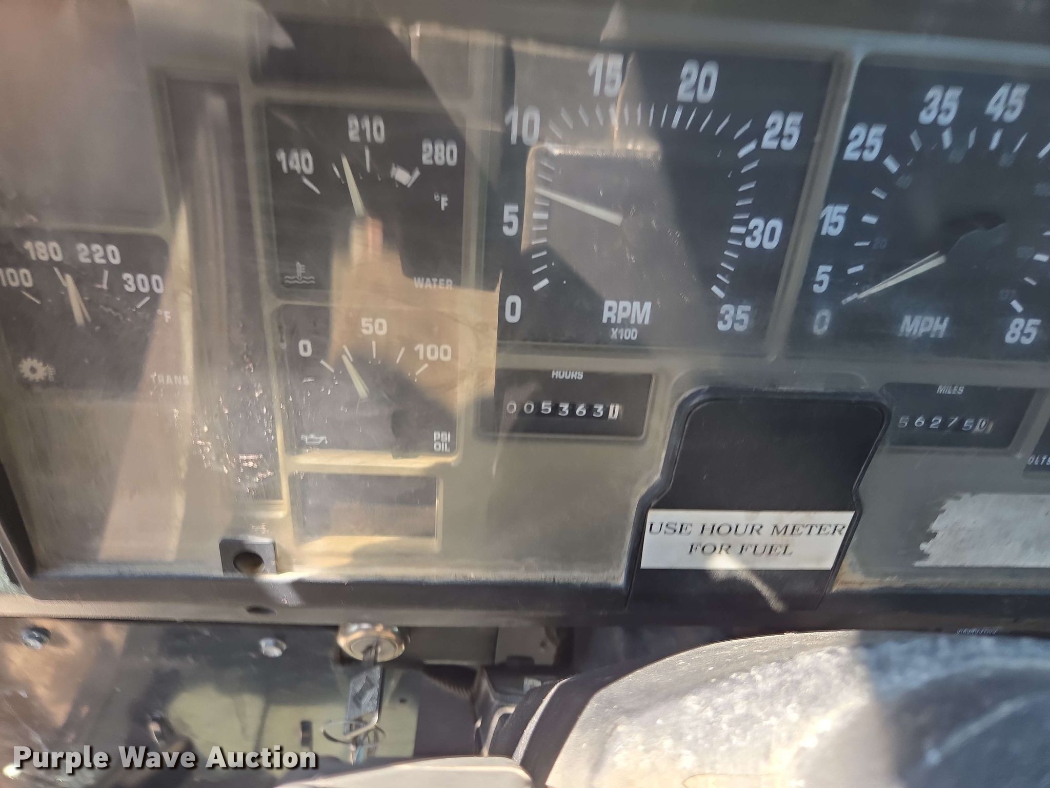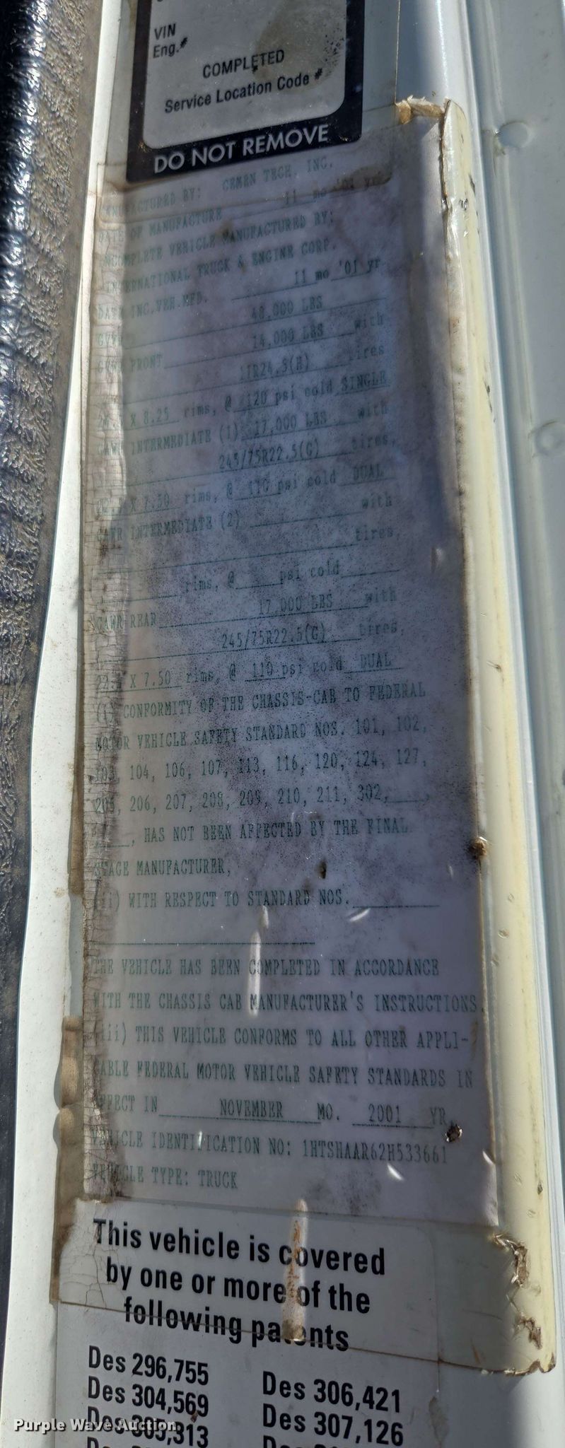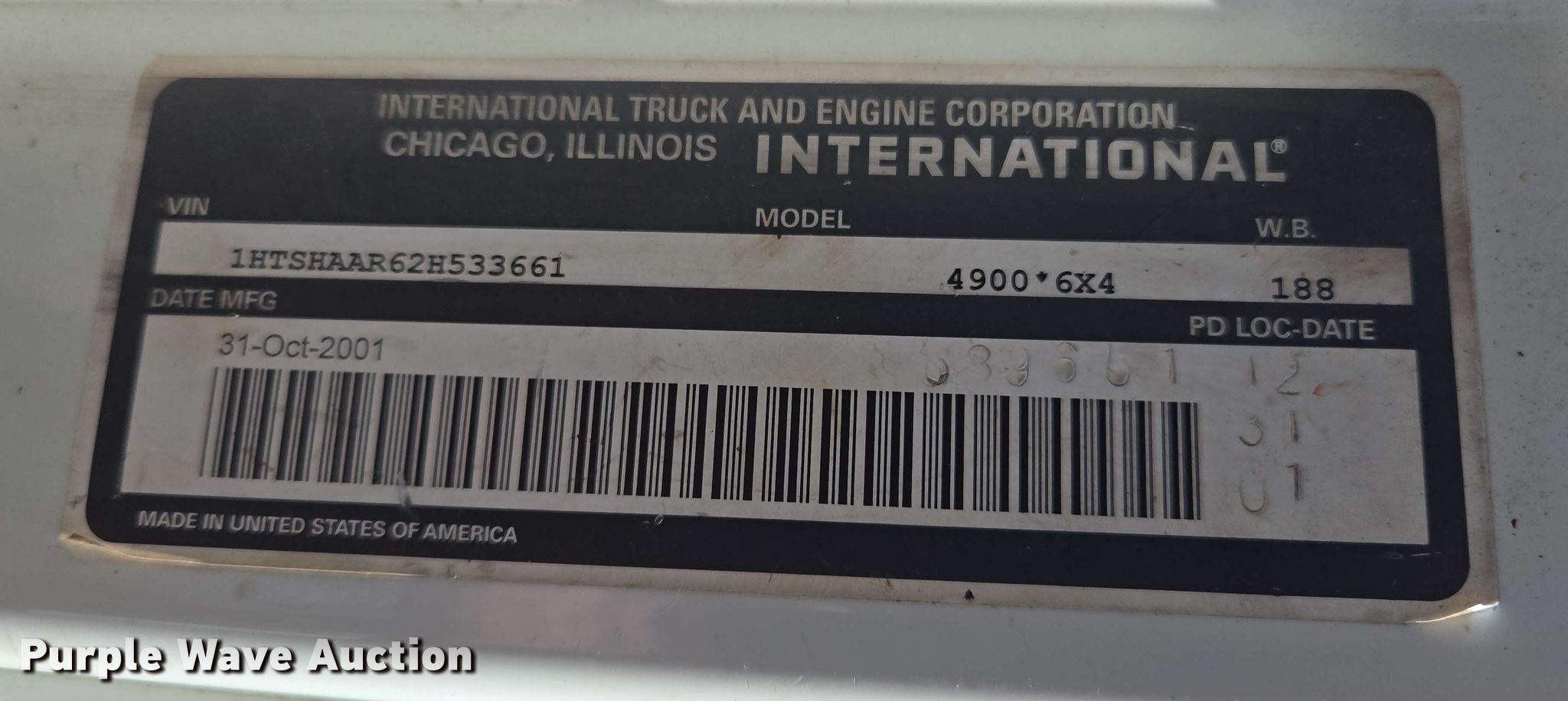 Purple Wave is selling a used Crane Truck in Oklahoma. This item is a 2002 International 4900 grapple crane truck with the following: Miles: 56,275 on odometer, Hours: 5,363 on meter, VIN: 1HTSHAAR62H533661, Unit #: 0189