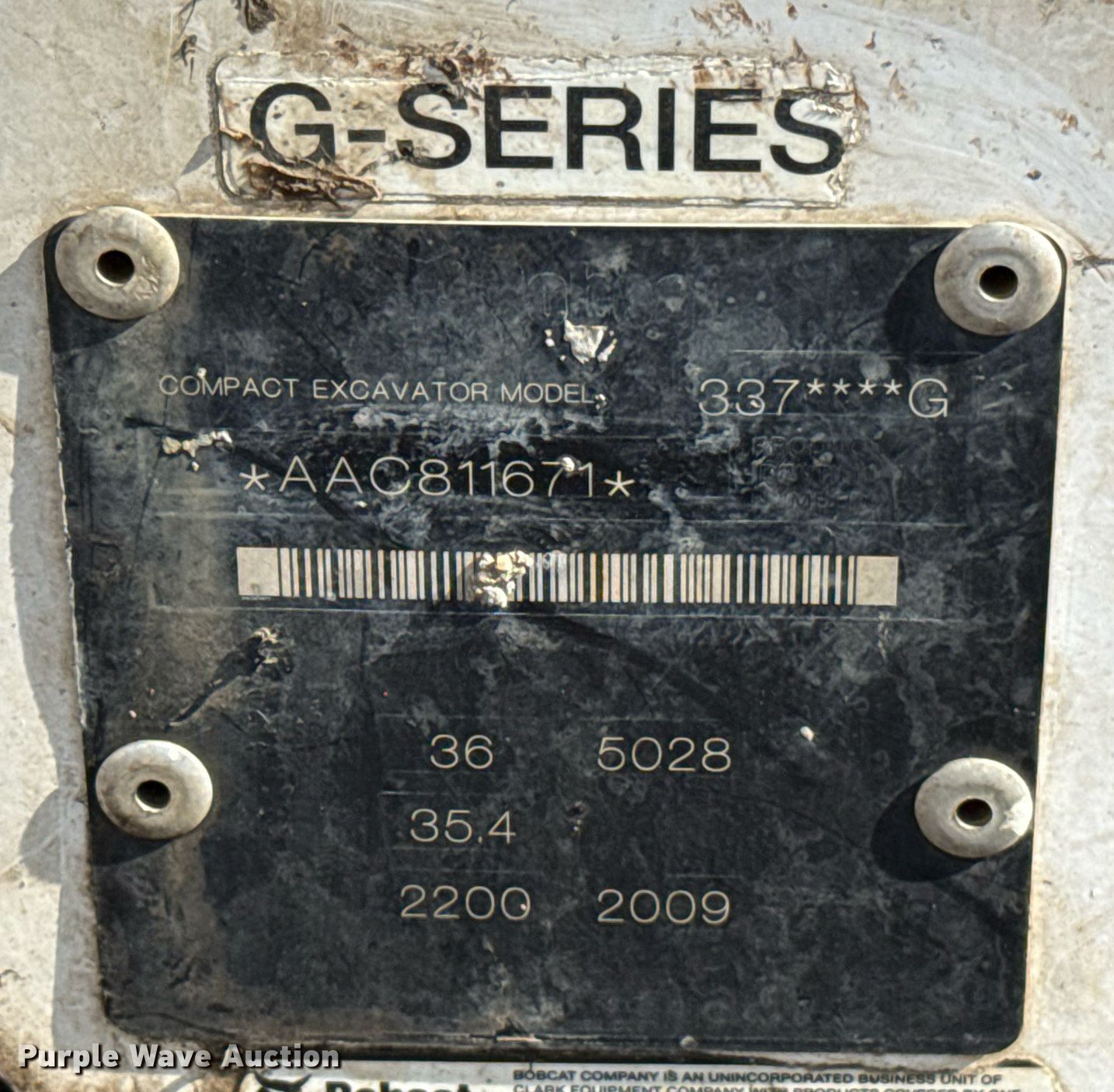 Purple Wave is selling a used Mini Excavator in Oklahoma. This item is a 2009 Bobcat 337G mini excavator with the following: Hours: 3,881 on meter, Serial: AAC811671, Unit #: 1051