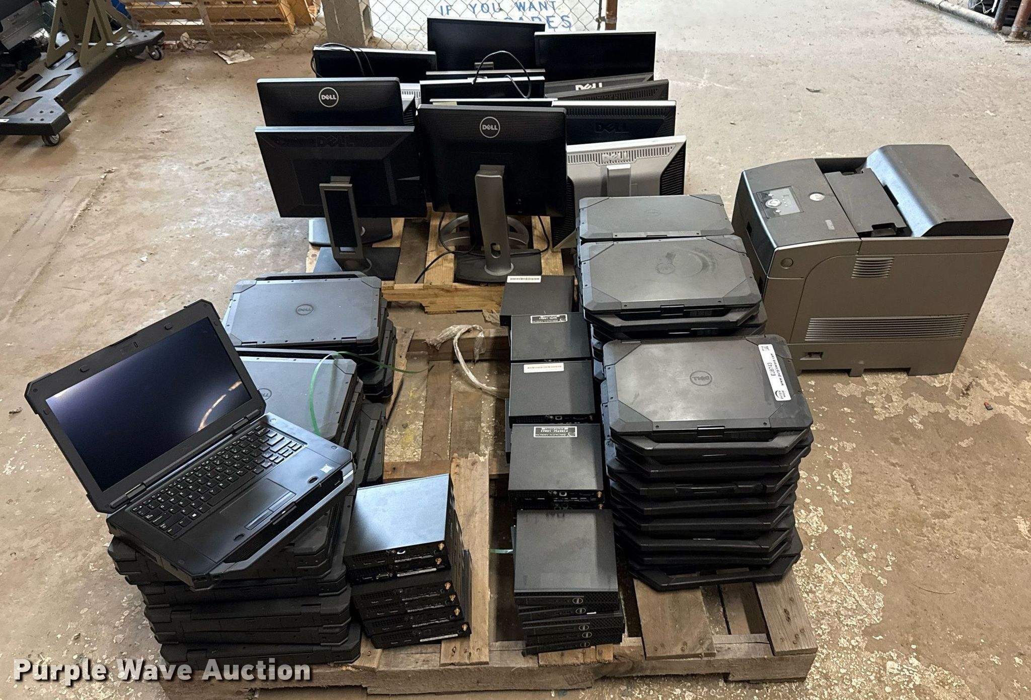 Purple Wave is selling a used Computers in Oklahoma. This item is a (76) computers with the following: (42) Dell laptops, (34) desktops, (16) Dell monitors, Dell 5110CN printer