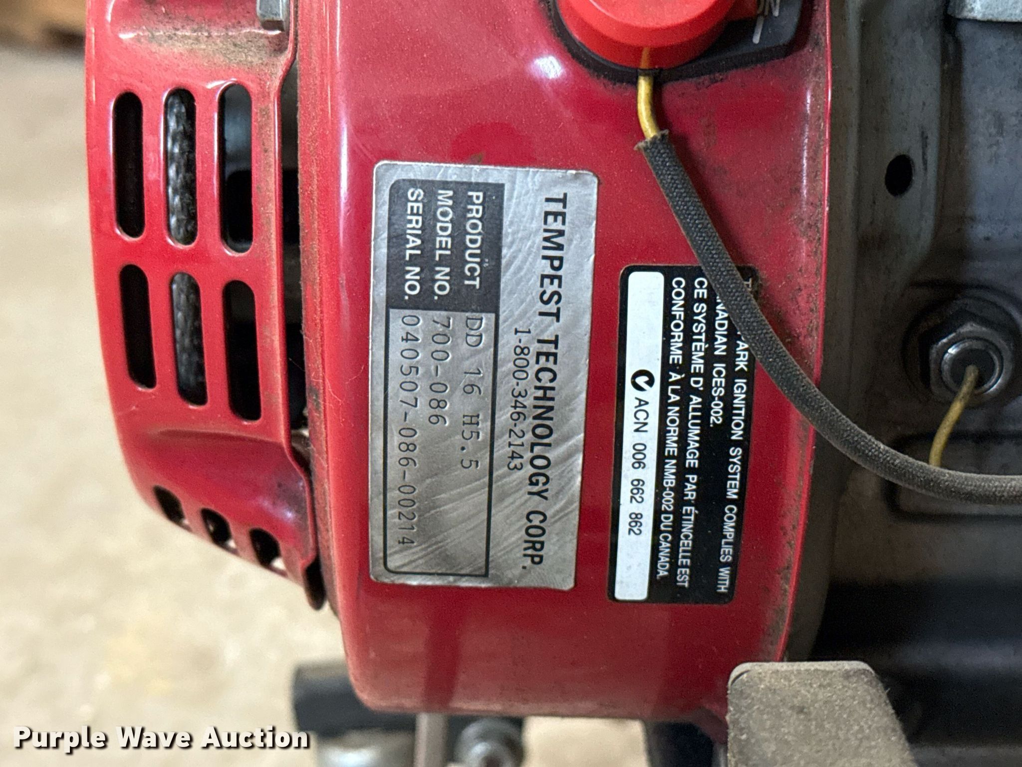 (2) Tempest DD16 fans. Serial: 040507-086-00214, Diameter: 16". Engine Honda GX160, Cylinders: 1, Fuel type: Gas. City of Broken Arrow. Broken Arrow, OK 74012