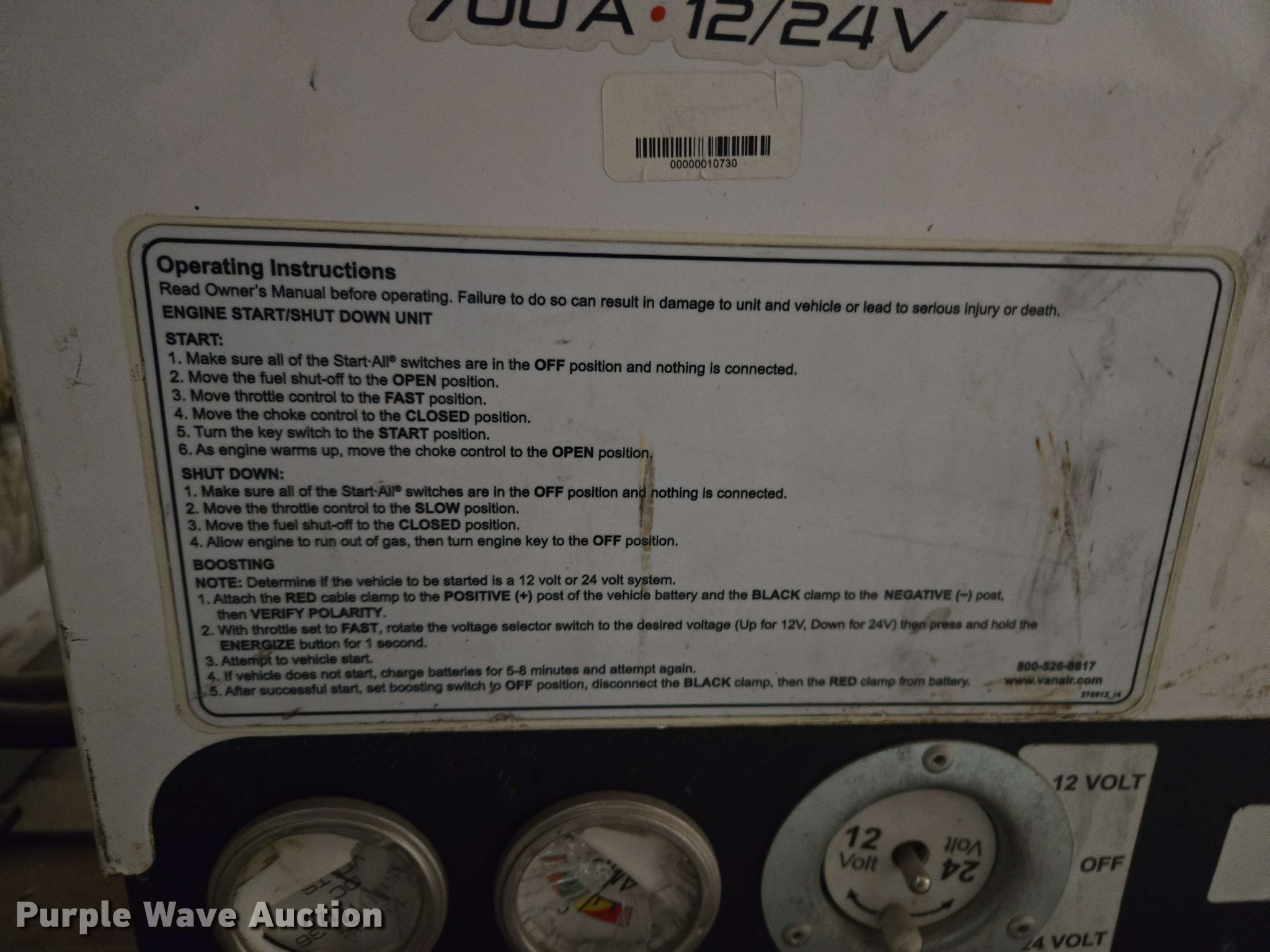 VanAir Start-All 700A jump pack. Unit #: 20150. Engine Cylinders: 2, Fuel type: Gas, HP: 18. Features Skid mounted. City of Broken Arrow. Broken Arrow, OK 74012