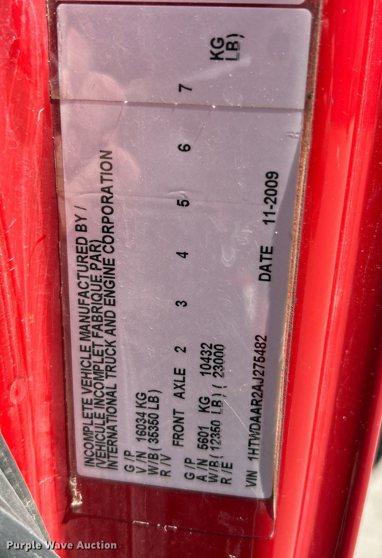 2010 International SA525 dump truck. Miles: 36,646 on odometer, Hours: 3,985 on meter, VIN: 1HTWDAAR2AJ275482. Engine International Maxxforce DT, Displacement: 7.6L, Cylinders: 6, Fuel type: Diesel. Transmission Allison, Automatic. Chassis Axles: Single, Differential lock: Inter-axle, Suspension: Spring, Brakes: Air, PTO, GVWR: 35,350 lbs FAWR: 12,350 lbs, RAWR: 23,000 lbs. Interior AC, Heat, Heated mirrors, Cruise control, Brake controller. Features Dump bed Viking-Cives, 10' L x 96" W, Side height: 24", Side board height: 17", Bed type: Steel, Roll tarp, Ram: Single, End gate: Manual, Spreader Swenson Spreader, Plow Width: 132". Tires Size: 11R22.5. Notes Tailgate included. Missouri title. Seller is a government entity who will be assigning and distributing the title. Please contact the seller for distribution questions. Title distribution may be delayed up to 14 days from verification of funds. City of Washington, MO. Washington, MO 63090