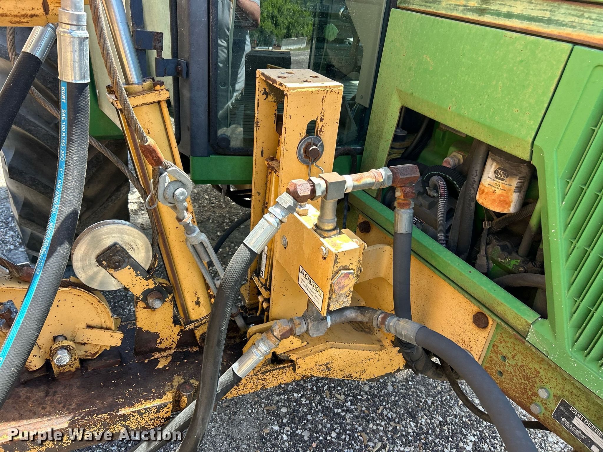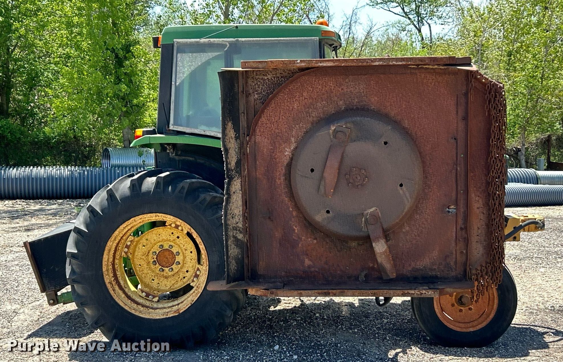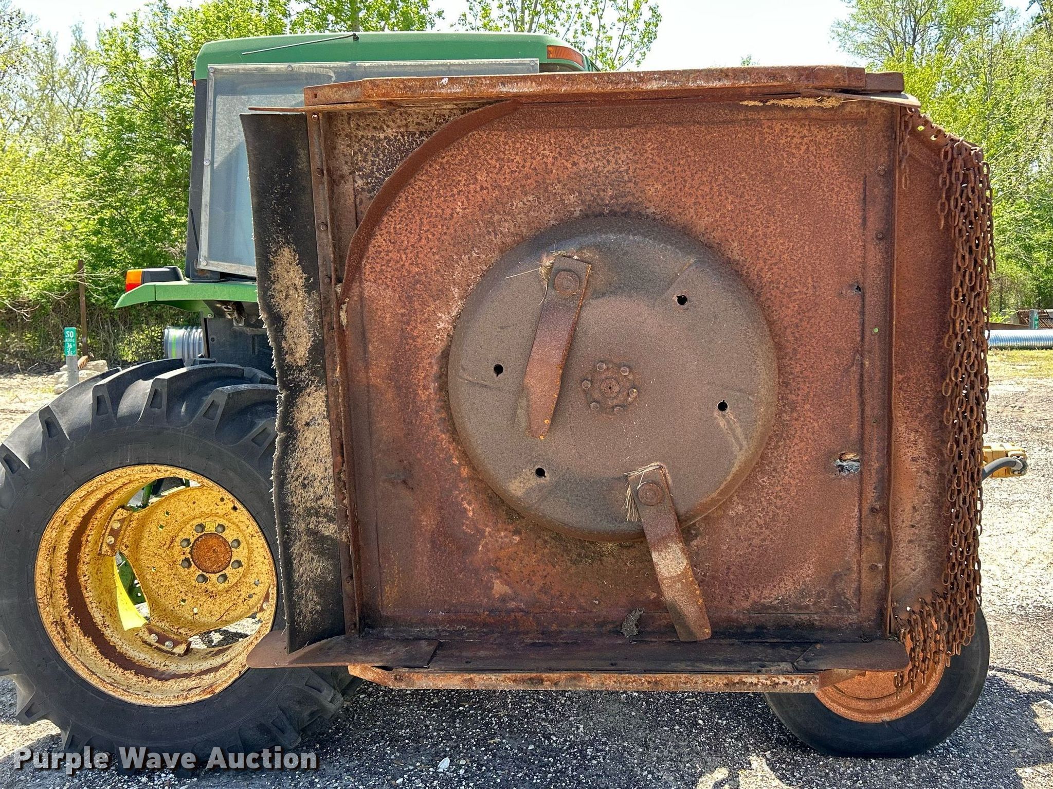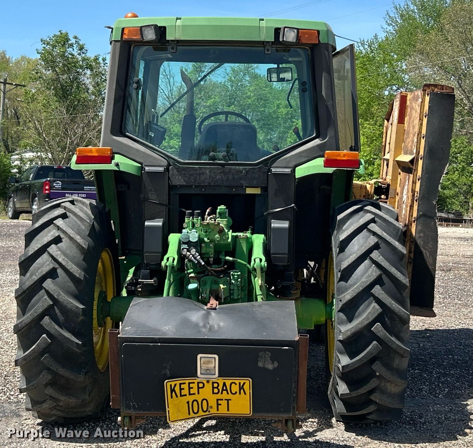 John Deere 6210 tractor. Hours: Unknown, Serial: L06210H306225. Engine John Deere, Cylinders: 4, Fuel type: Diesel. Transmission Powershift, 12F - 4R, Differential lock. Operators station AC, Heat. Features PTO: 540, Three point Top link, Hydraulic remote sets Rear: 2, Tiger side boom mower Cutting width: 62". Tires Front: 7.50-18, Rear: 16.9-30. Notes Lift cylinder for mower need replaced, Three point hydraulic lever linkage issues, need replaced, Non-operational AC. Franklin County, MO. Union, MO 63084