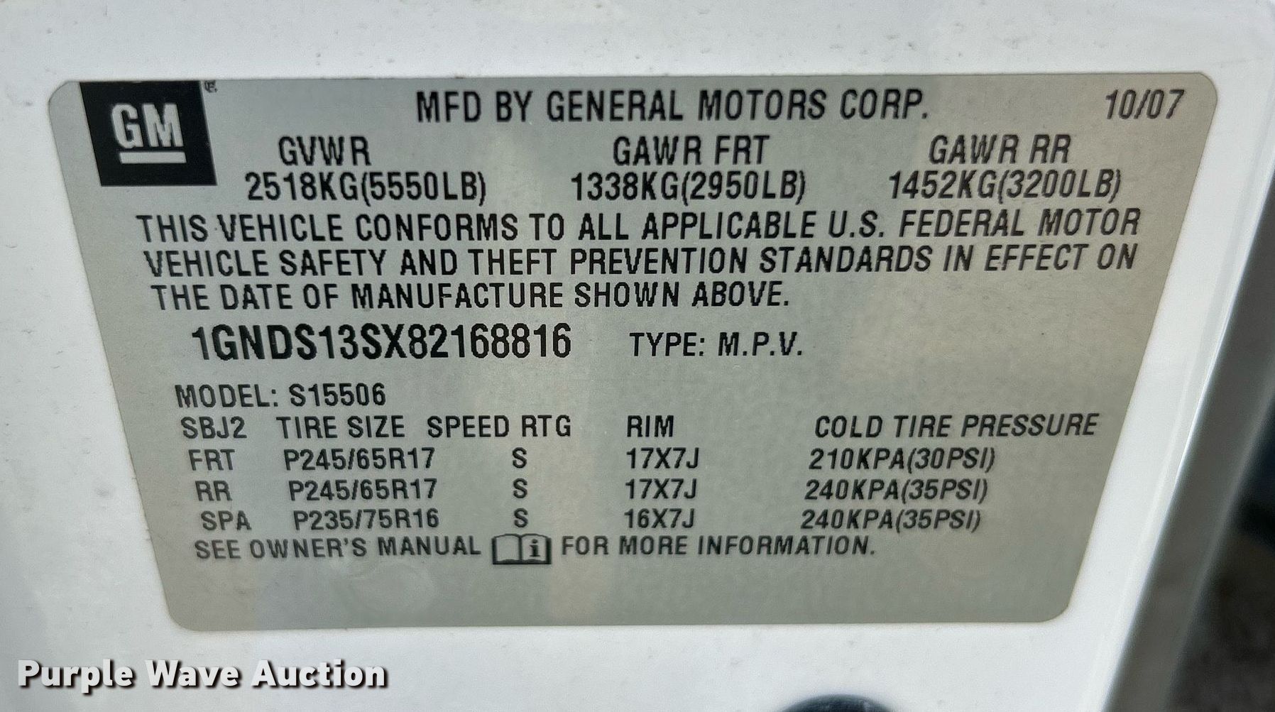 Purple Wave is selling a used Passenger Vehicle in Missouri. This item is a 2008 Chevrolet Trailblazer SUV with the following: Miles: 180,026 on odometer, VIN: 1GNDS13SX82168816, Unit #: B6434