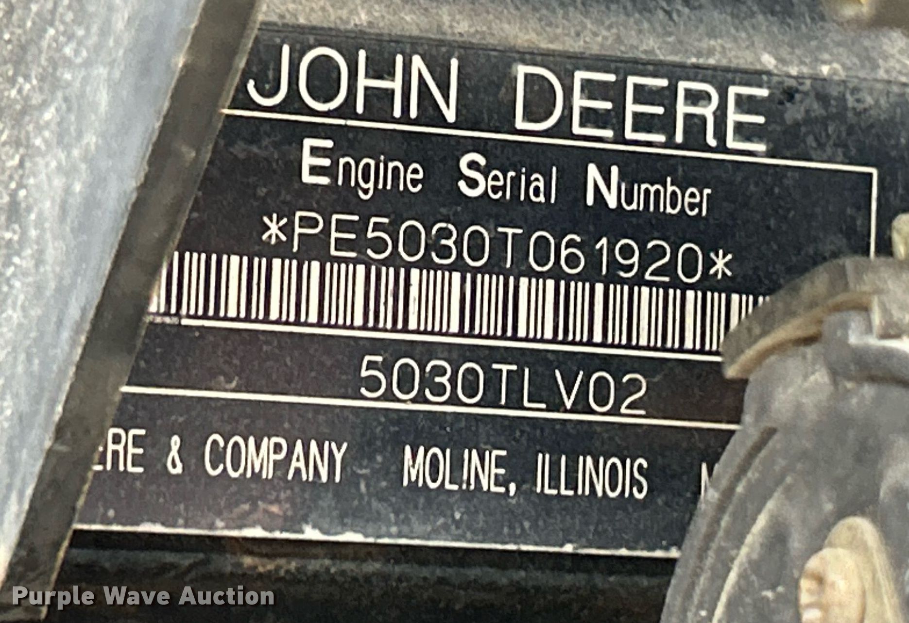 2005 John Deere 5325 tractor. Hours: 2,186 on meter, Serial: LV5325P133546, Unit #: 06009. Engine John Deere, Displacement: 3.0L, Cylinders: 4, Fuel type: Diesel. Transmission Synchro, 12F - 3R, Left-hand reverser, Differential lock. Features PTO: 540, Three point Top link, Seven pin outlet, Hydraulic remote sets Rear: 3, Sickle mower Width 6'. Tires Front: 7.50-16, Rear: 16.9-30. Missouri Dept. of Transportation - District 6. Ballwin, MO 63021