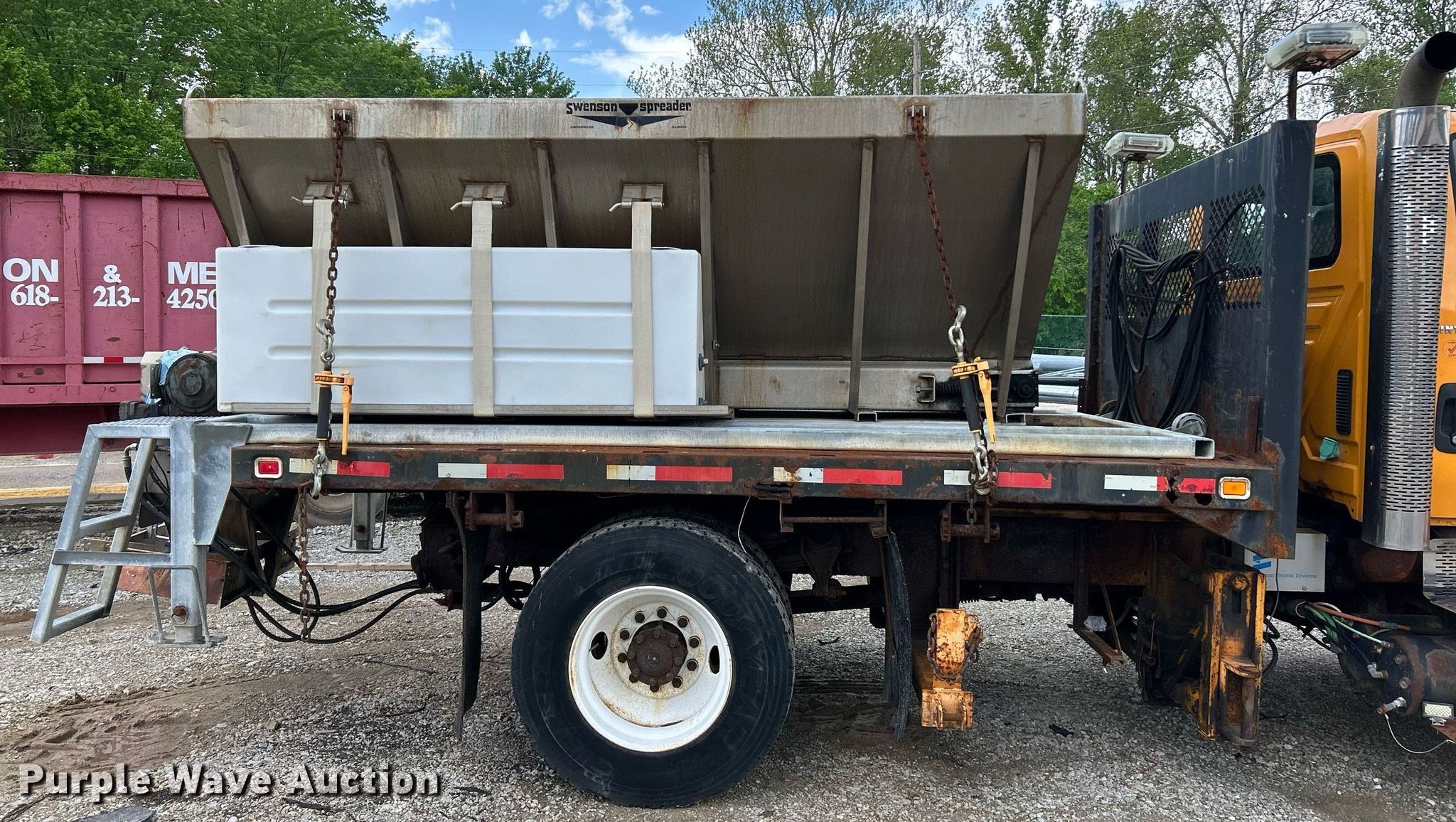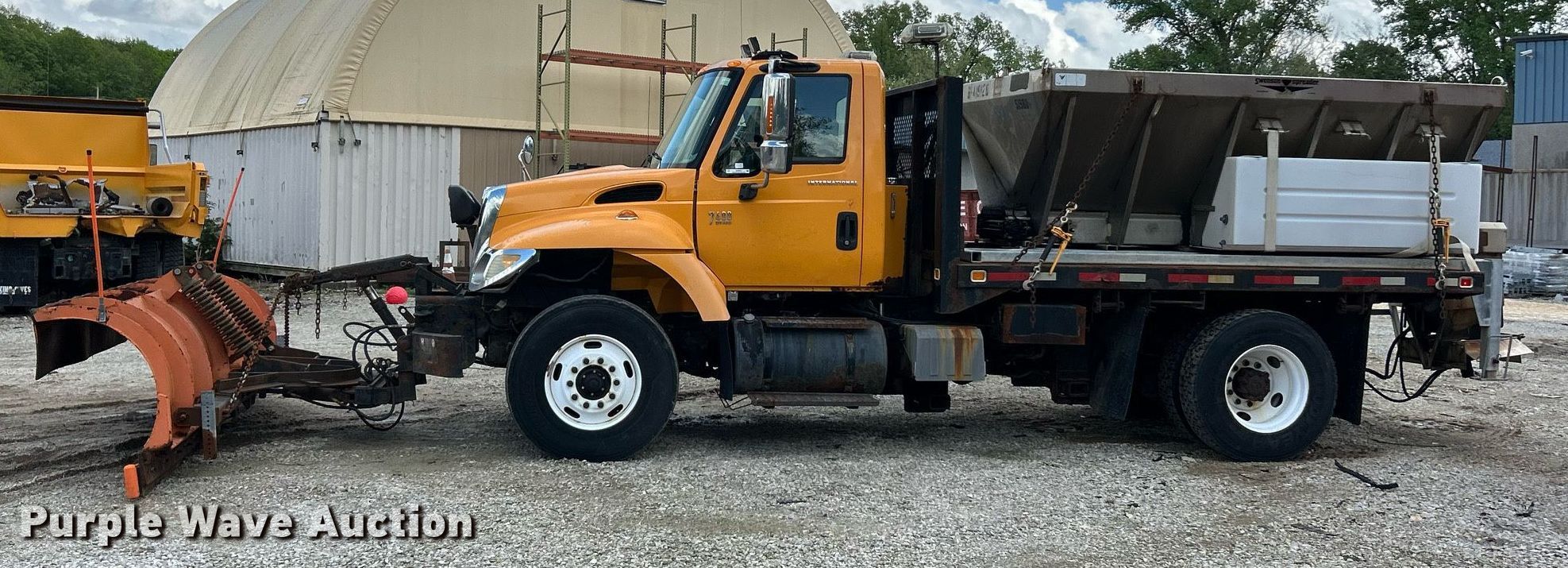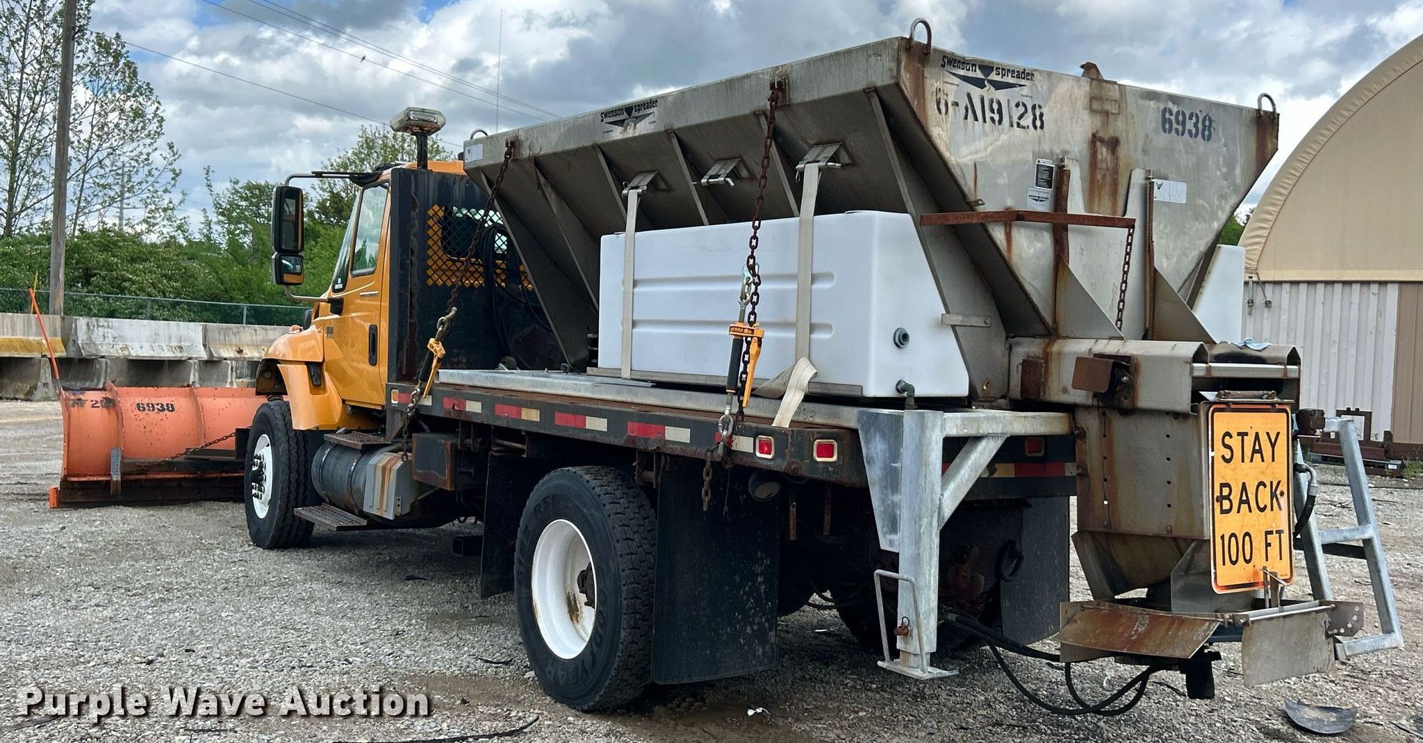 2003 International 7400 flatbed truck. Miles: 125,233 on odometer, Hours: 11,784 on meter, VIN: 1HTWDAAR93J053265, Unit #: 6938. Engine International Maxxforce DT466, Displacement: 7.6L, Cylinders: 6, Fuel type: Diesel. Transmission Automatic. Chassis Axles: Single, Suspension: Spring, Brakes: Air, PTO, GVWR: 35,000 lbs.. Interior AC, Heat, Heated mirrors, Power windows, Power locks, Cruise control. Features Dump flatbed Knapheide, 12' 3" L x 96" W, Swenson spreader, 168" snow plow. Tires Front: 315/80R22.5, Rear: 11R22.5. Notes Dash warning indicator: ABS, Dead battery. Missouri title. Title distribution may be delayed up to 14 days from verification of funds. Missouri Dept. of Transportation - District 6. Ballwin, MO 63021