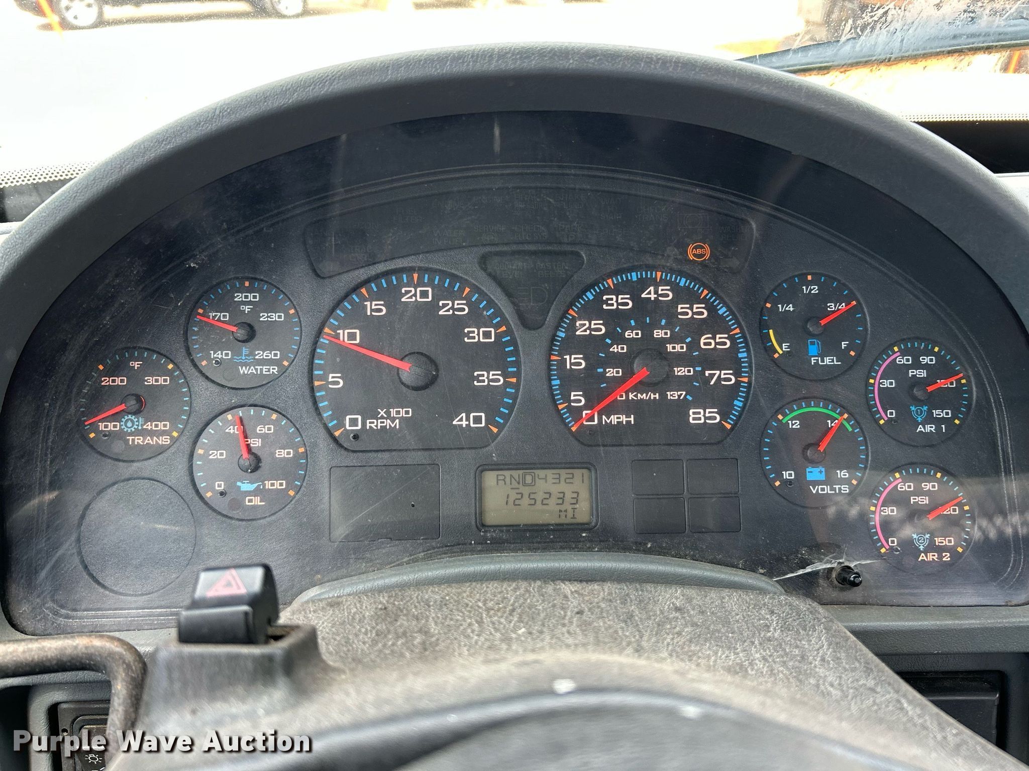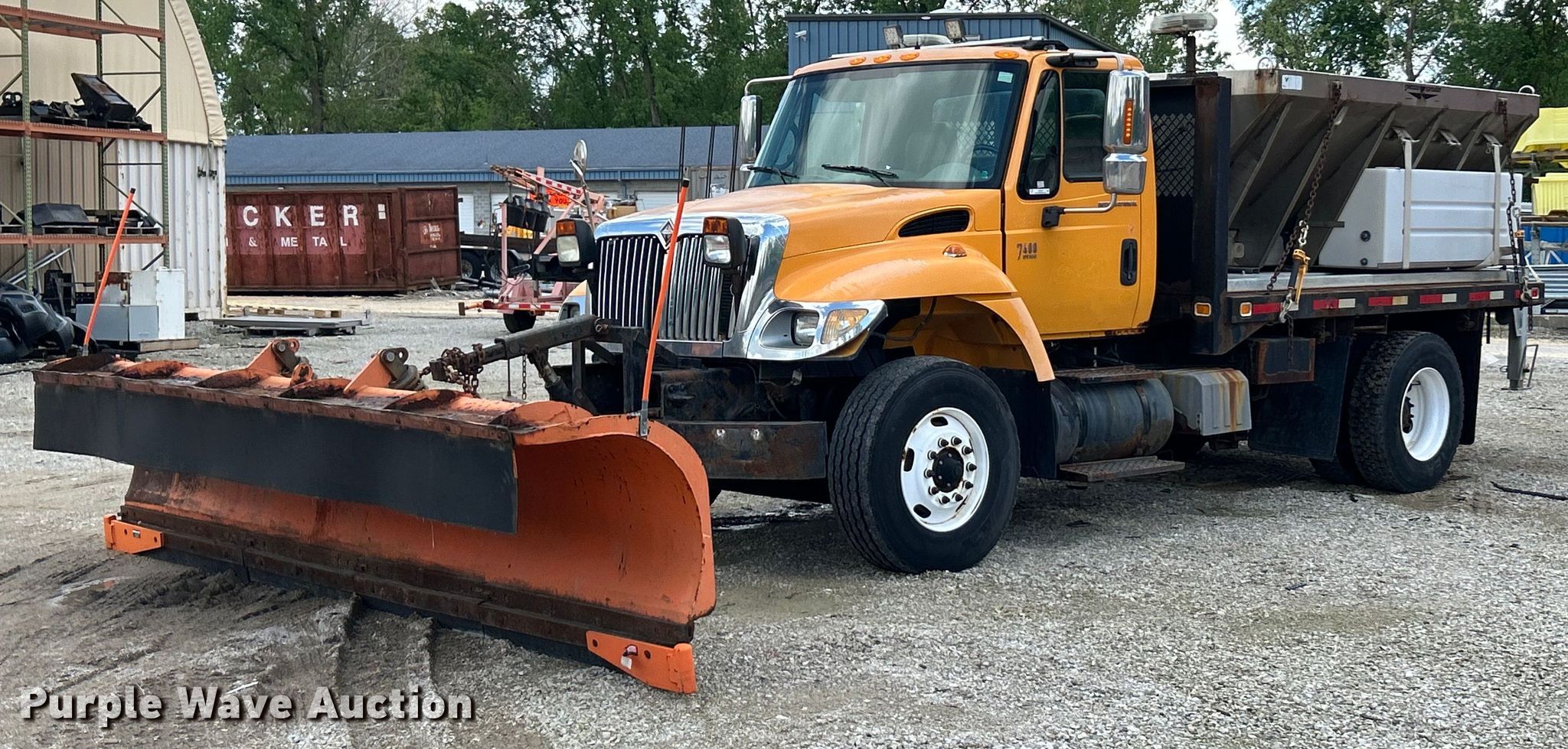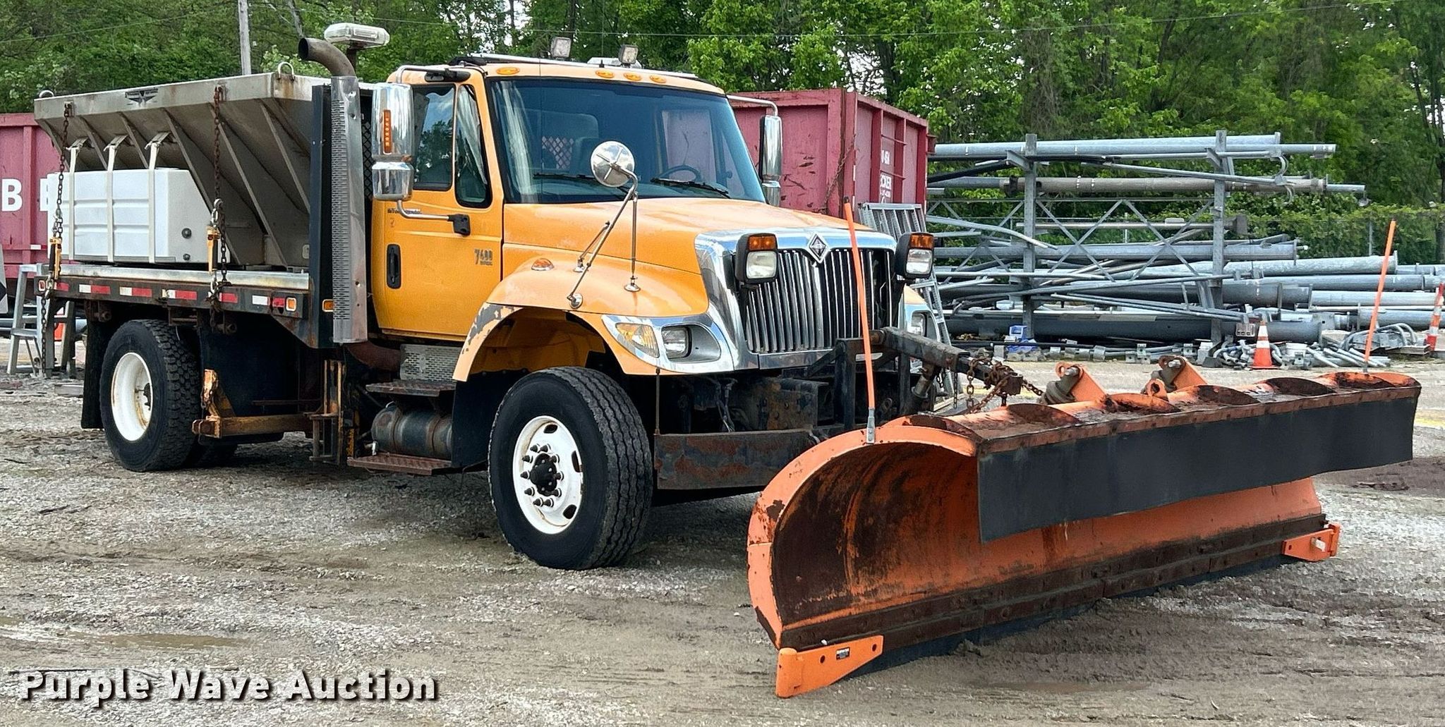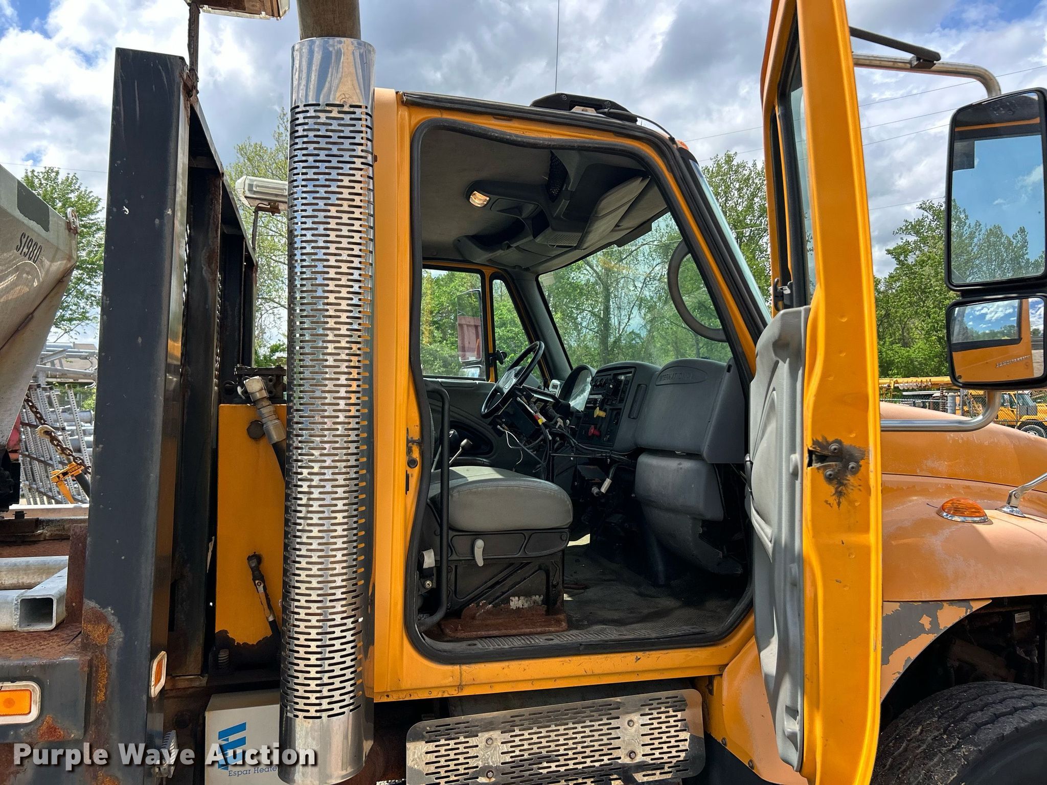 2003 International 7400 flatbed truck. Miles: 125,233 on odometer, Hours: 11,784 on meter, VIN: 1HTWDAAR93J053265, Unit #: 6938. Engine International Maxxforce DT466, Displacement: 7.6L, Cylinders: 6, Fuel type: Diesel. Transmission Automatic. Chassis Axles: Single, Suspension: Spring, Brakes: Air, PTO, GVWR: 35,000 lbs.. Interior AC, Heat, Heated mirrors, Power windows, Power locks, Cruise control. Features Dump flatbed Knapheide, 12' 3" L x 96" W, Swenson spreader, 168" snow plow. Tires Front: 315/80R22.5, Rear: 11R22.5. Notes Dash warning indicator: ABS, Dead battery. Missouri title. Title distribution may be delayed up to 14 days from verification of funds. Missouri Dept. of Transportation - District 6. Ballwin, MO 63021