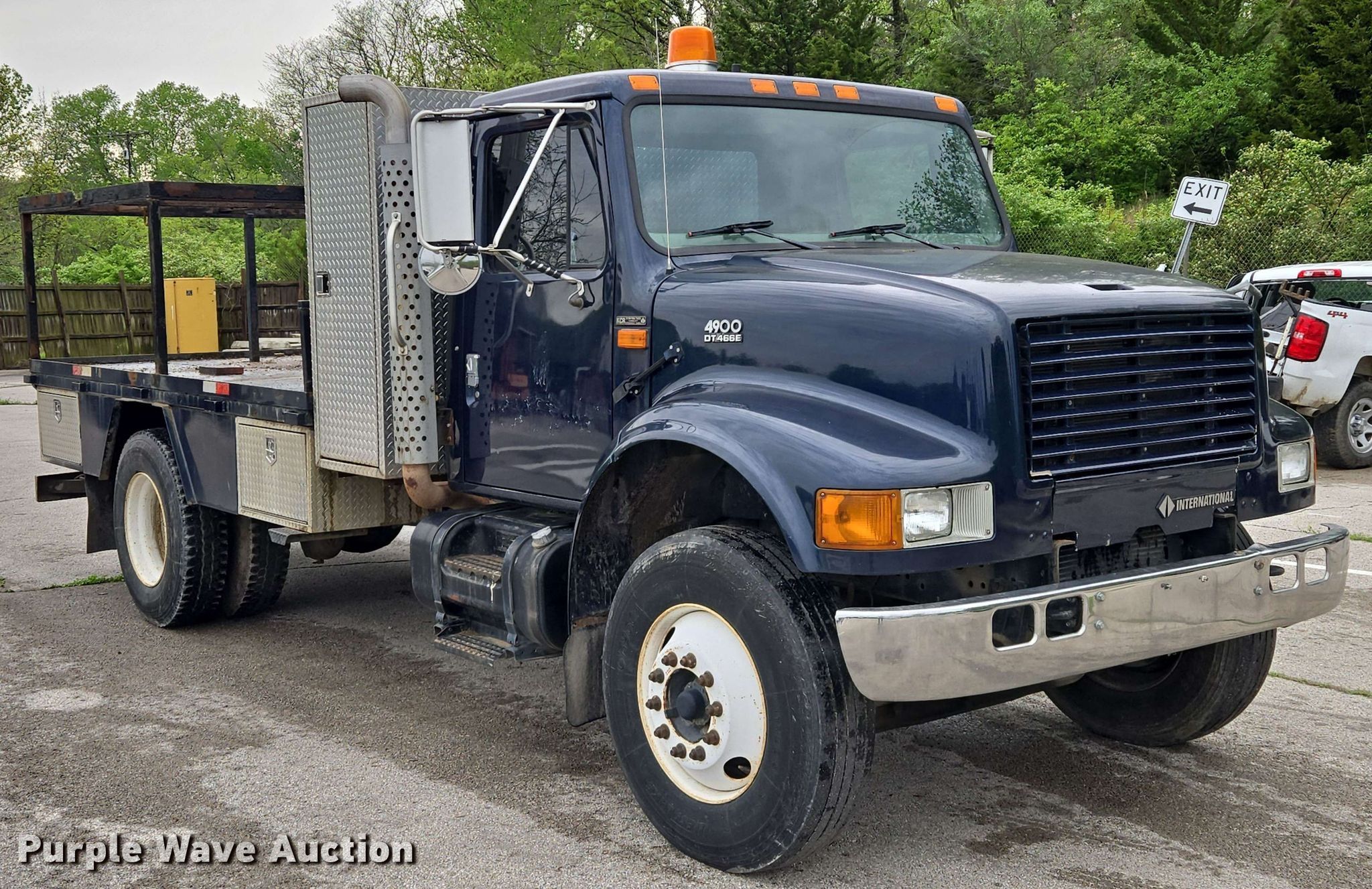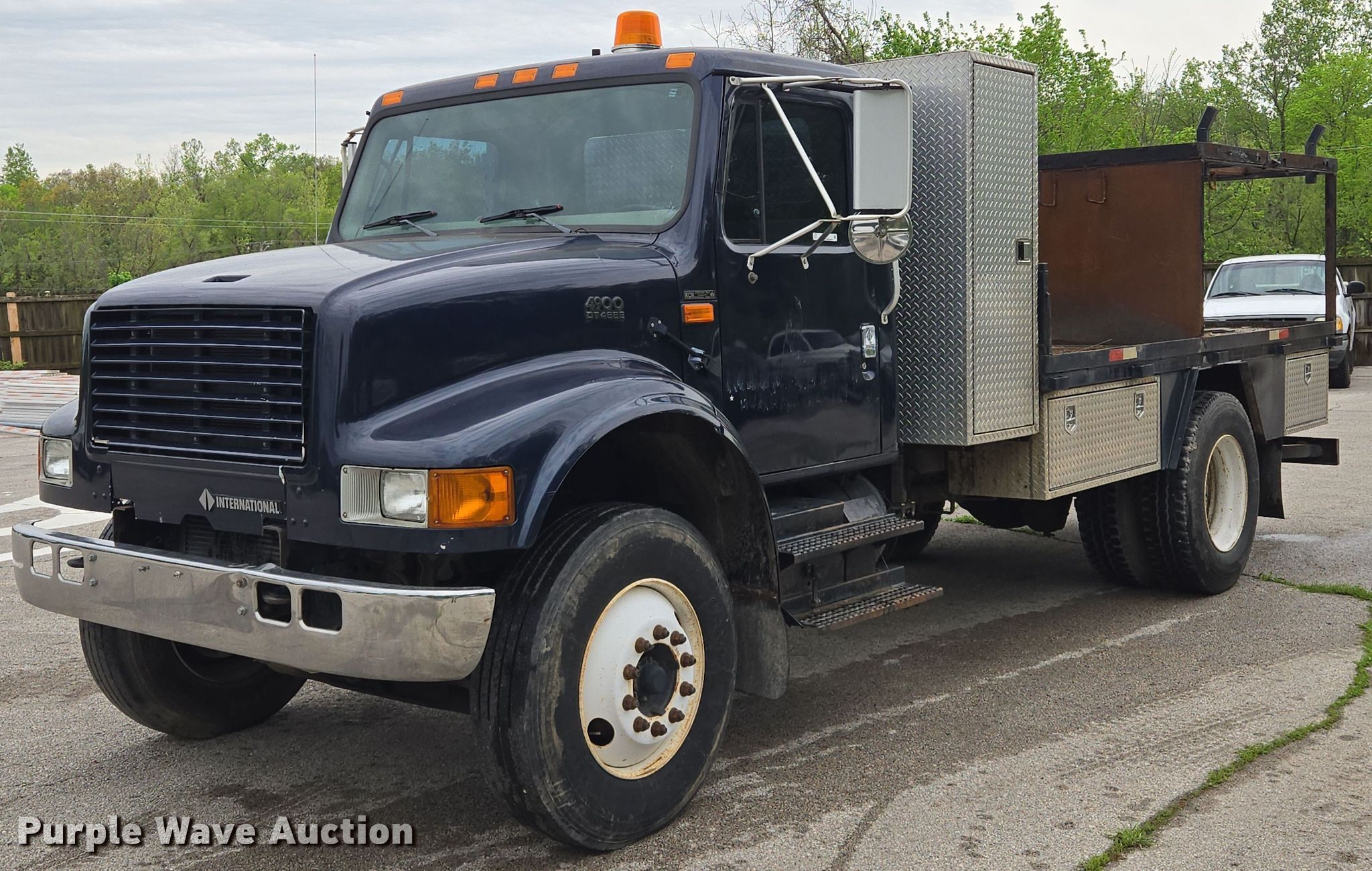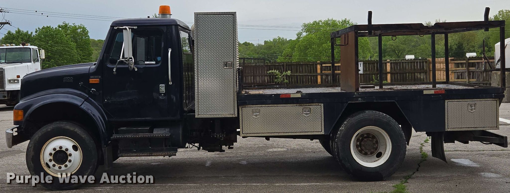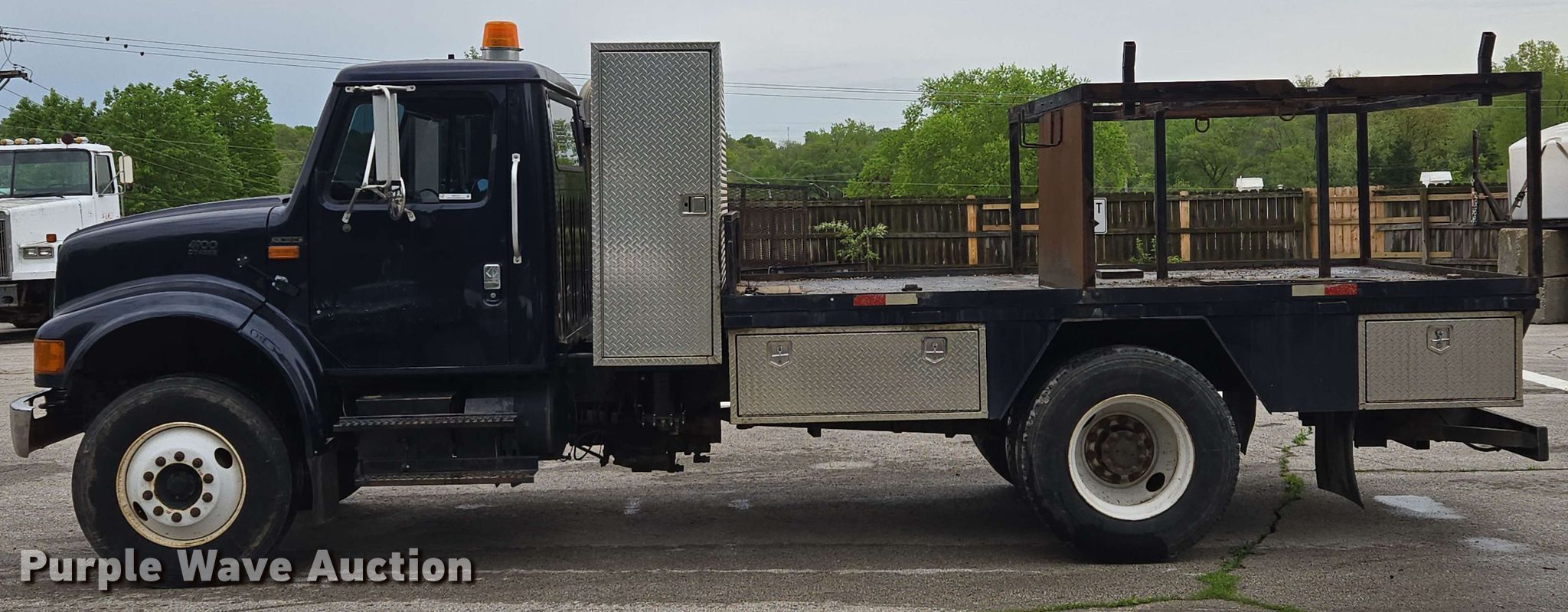 This 2001 International 4900 flatbed truck will sell to the highest bidder regardless of price.