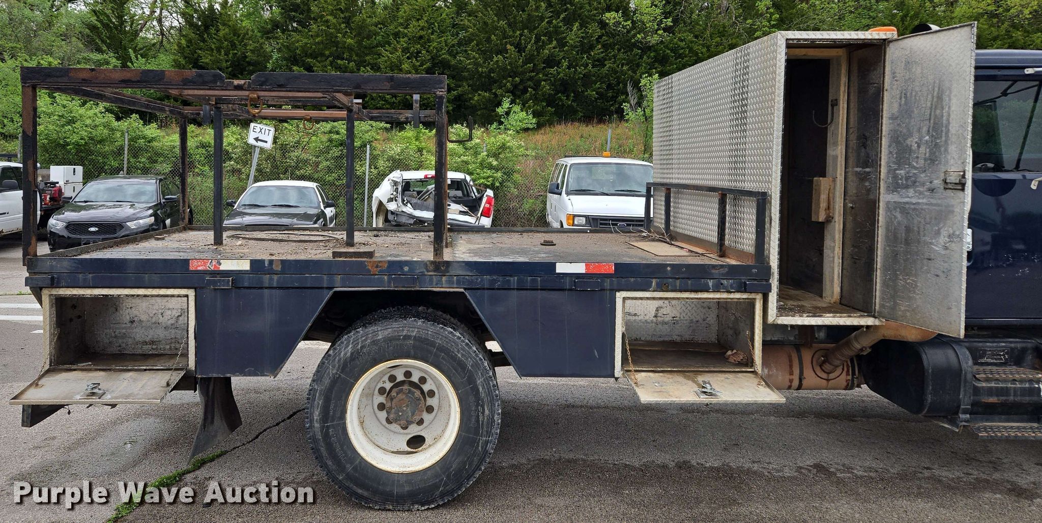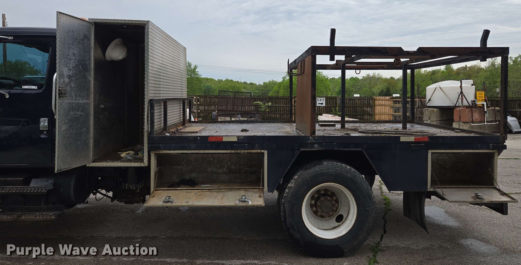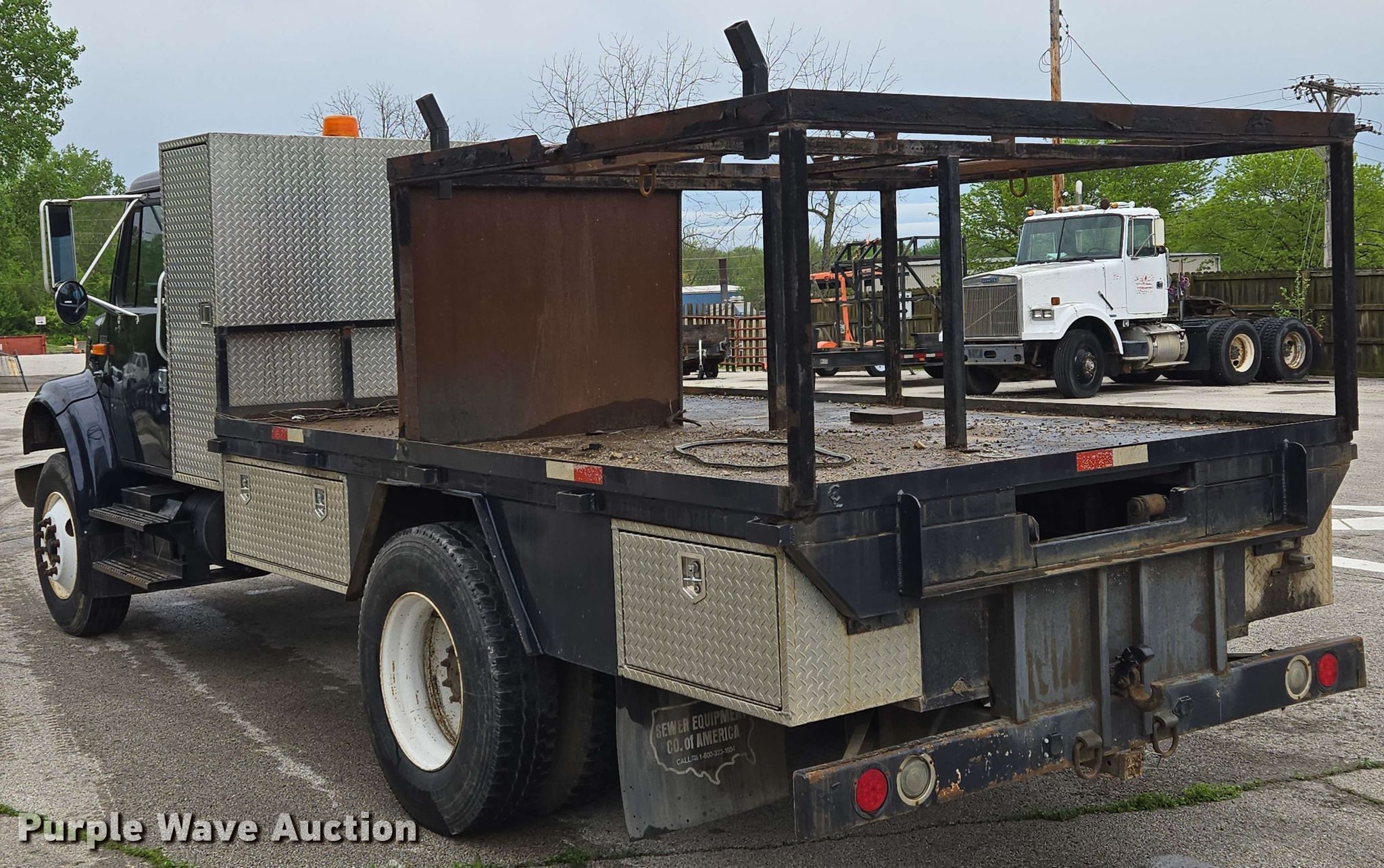 Purple Wave is selling a used Flat Bed Truck in Missouri. This item is a 2001 International 4900 flatbed truck with the following: Miles: 69,354 on odometer, Hours: 11,323 on meter, VIN: 1HTSDAAR81H362180
