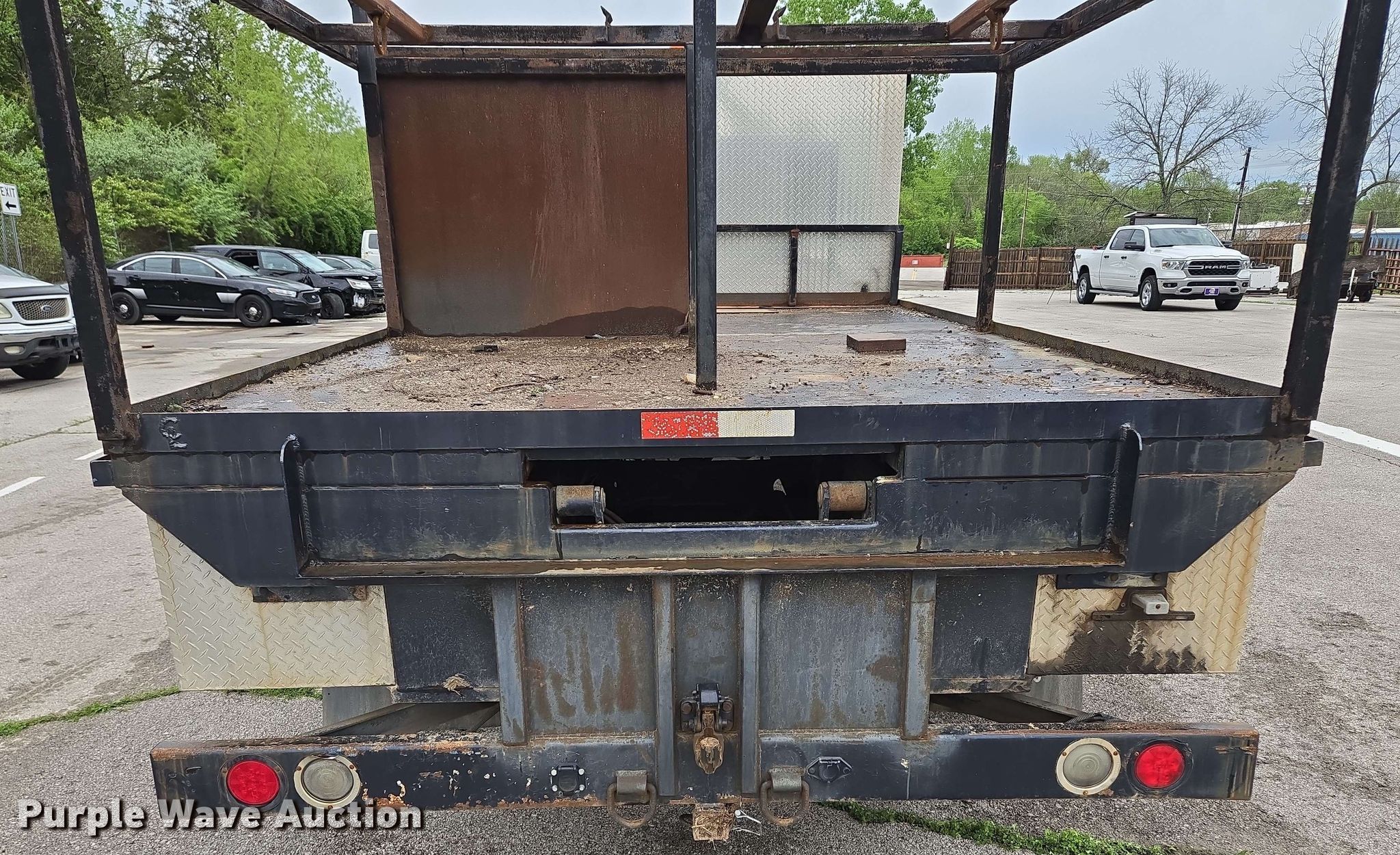 2001 International 4900 flatbed truck. Miles: 69,354 on odometer, Hours: 11,323 on meter, VIN: 1HTSDAAR81H362180. Engine International CH230, Displacement: 7.6L, Cylinders: 6, Fuel type: Diesel. Transmission Allison, Automatic. Chassis Axles: Single, Suspension: Spring, Brakes: Air, PTO, GVWR: 20,320 lbs. Interior Heat, Cruise control, Auxiliary controls. Features Flatbed 12' 6" L x 92" W, Rack 84" L x 92" W. Tires Size: 11R22.5. Notes Engine issues, coolant in oil. Missouri title. Title distribution may be delayed up to 14 days from verification of funds. City of Independence, MO. Independence, MO 64056