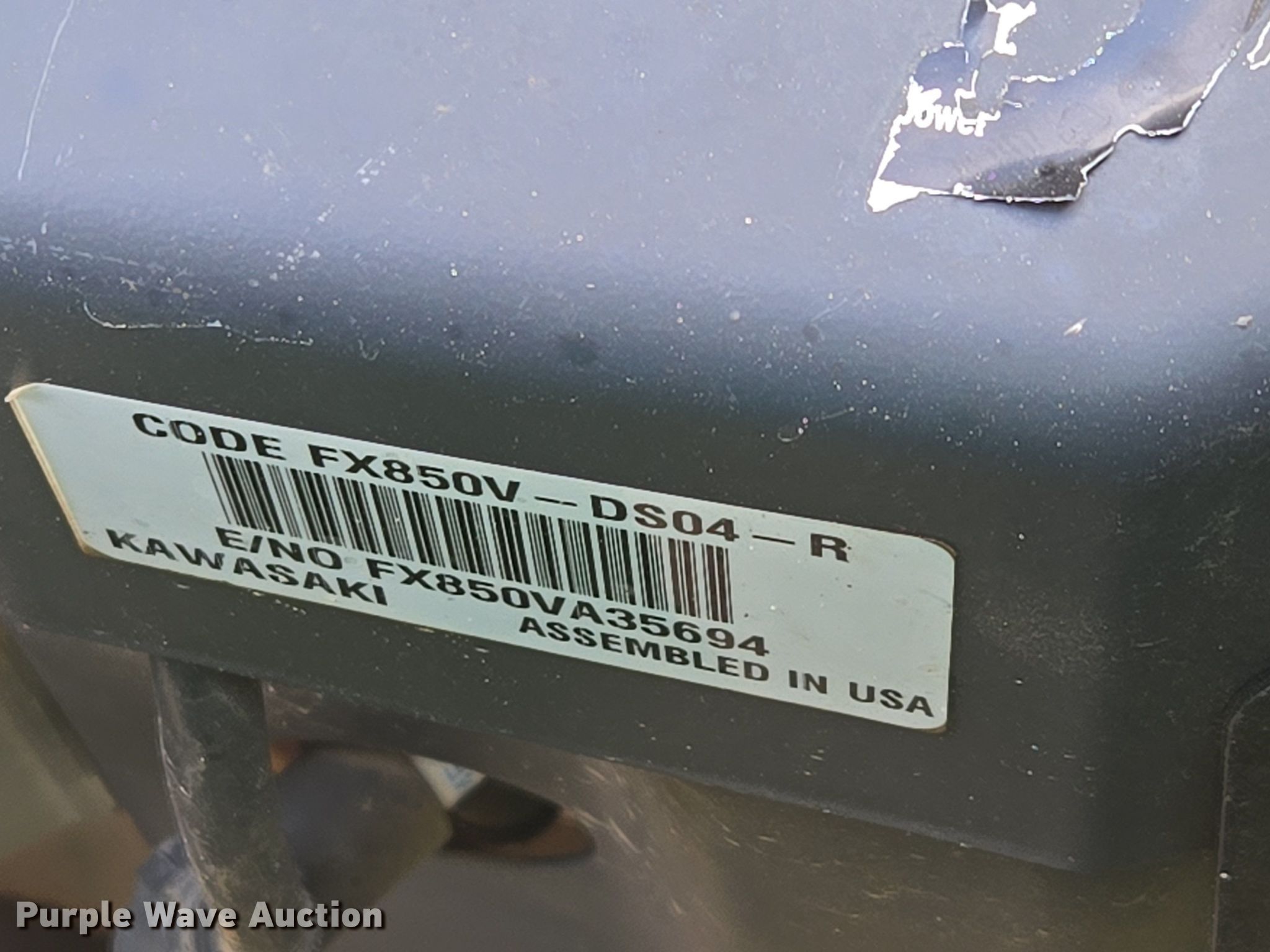 2012 John Deere Z950A ZTR lawn mower. Hours: 1,692 on meter, Cutting width: 60", Serial: 1TC950ACACT030062, Unit #: 33. Engine Kawasaki FX850V, Serial: FX850VA35694, Cylinders: 2, Fuel type: Gas. Transmission Hydrostatic. Tires Front: 13x6.50-6/4.50, Rear: 24x12.00-12. Notes ROPS frame damaged. City of Frontenac. Frontenac, KS 66763