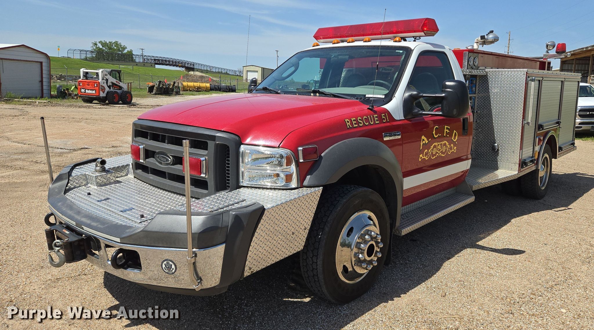 This 2005 Ford F550 Super Duty XL rescue pumper fire truck will sell to the highest bidder regardless of price.