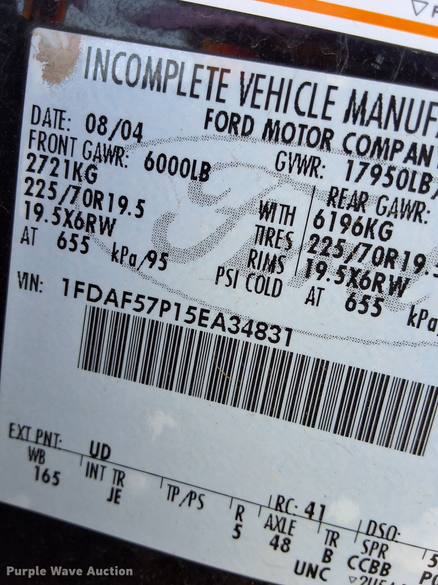 2005 Ford F550 Super Duty XL rescue pumper fire truck. Miles: 26,886 on odometer, VIN: 1FDAF57P15EA34831. Engine Displacement: 6.0L, Cylinders: 8, Fuel type: Diesel. Transmission Automatic. Chassis Four wheel drive, Axles: Single, Suspension: Spring, Brakes: Hydraulic, GVWR: 17,950 lbs, Wheelbase: 165". Interior AC, Heat, Cruise control, Auxiliary controls. Features Fire truck body Tank Capacity: 300 gallons, Pump 500 gpm, PA/ siren controls, Winch Warn Series 12, Capacity: 12,000 lbs, Hercules compressed air foam system, Foam tank Capacity: 25 gallons. Tires Size: 255/70R19.5. Notes Climate control blend door issues. Kansas title. Title distribution may be delayed up to 14 days from verification of funds. City of Arkansas City. Arkansas City, KS 67005