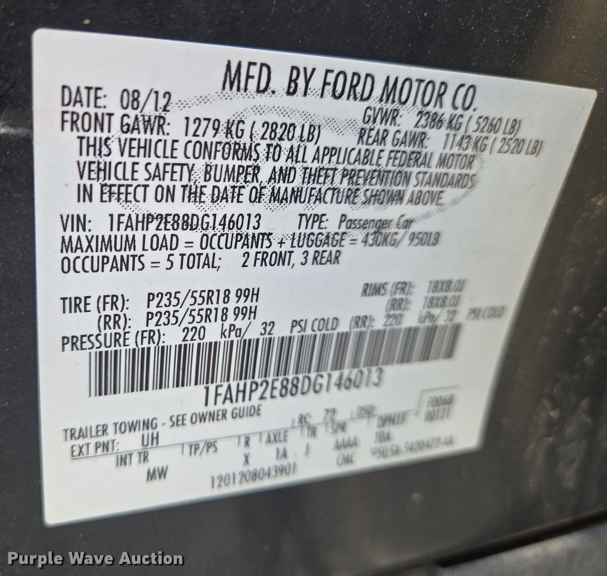 Purple Wave is selling a used Passenger Vehicle in Kansas. This item is a 2013 Ford Taurus SEL with the following: Miles: 90,348 on odometer, VIN: 1FAHP2E88DG146013