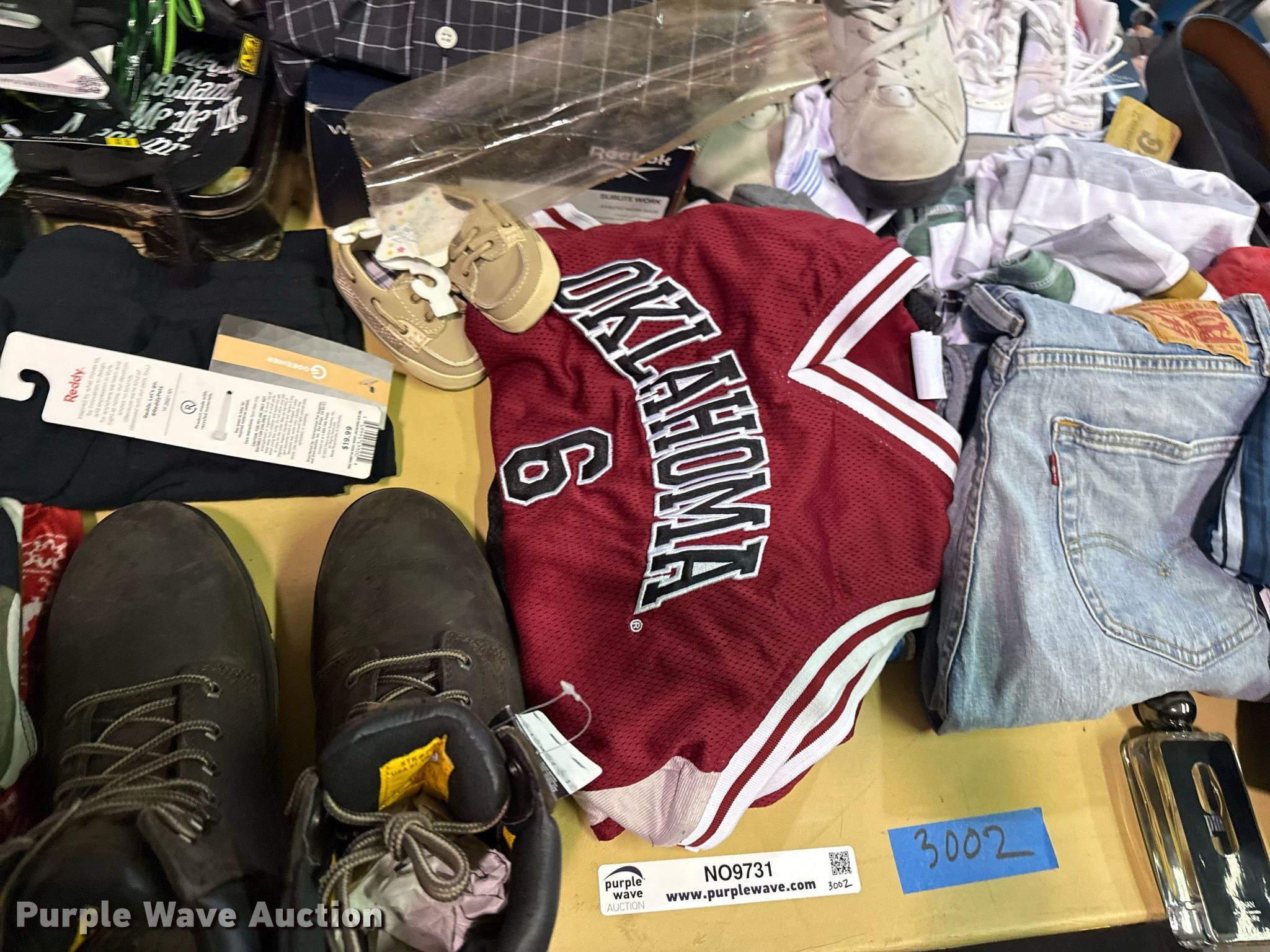 Purple Wave is selling a used All Other Household Items in Oklahoma. This item is a Clothing with the following: Boots, Nike, Nike Air, Levi, Polo, Calvin Klein, Kobi and more, Unit #: 3002