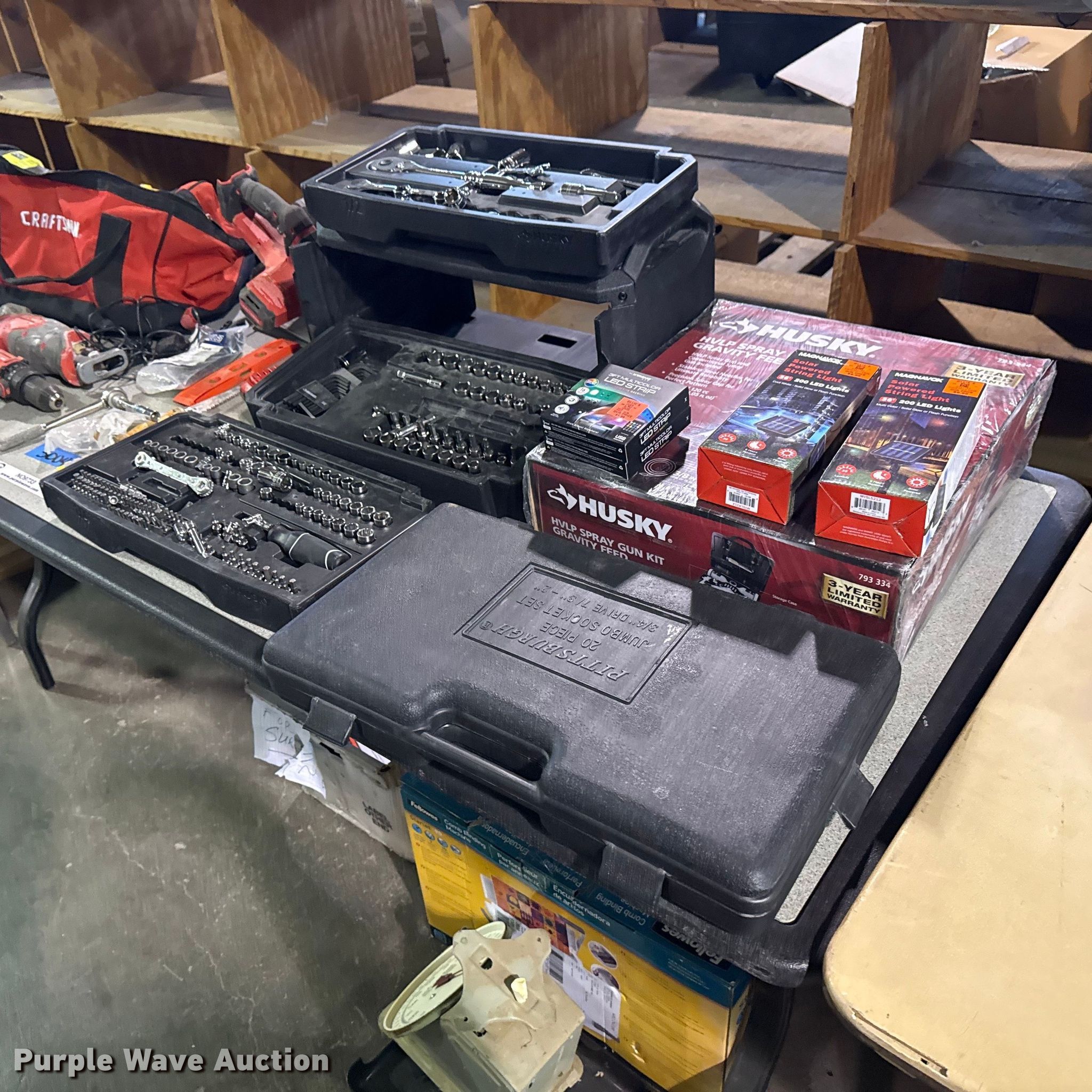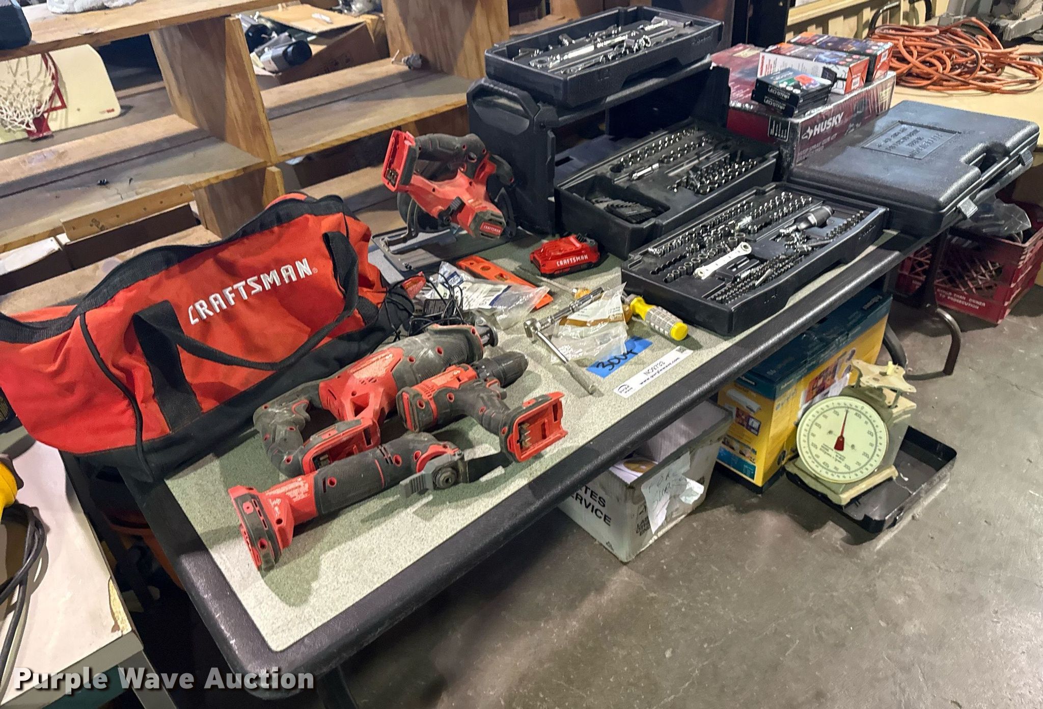 Purple Wave is selling a used Tools in Oklahoma. This item is a Tools with the following: Pittsburgh jumbo socket set, Husky HVLP spray gun, Craftsman CMCS300 reciprocating saw, Craftsman Oscillating multi-tool CMCE500, Craftsman CMCS505 circular saw, Craftsman Cordless drill driver, Unit #: 3004