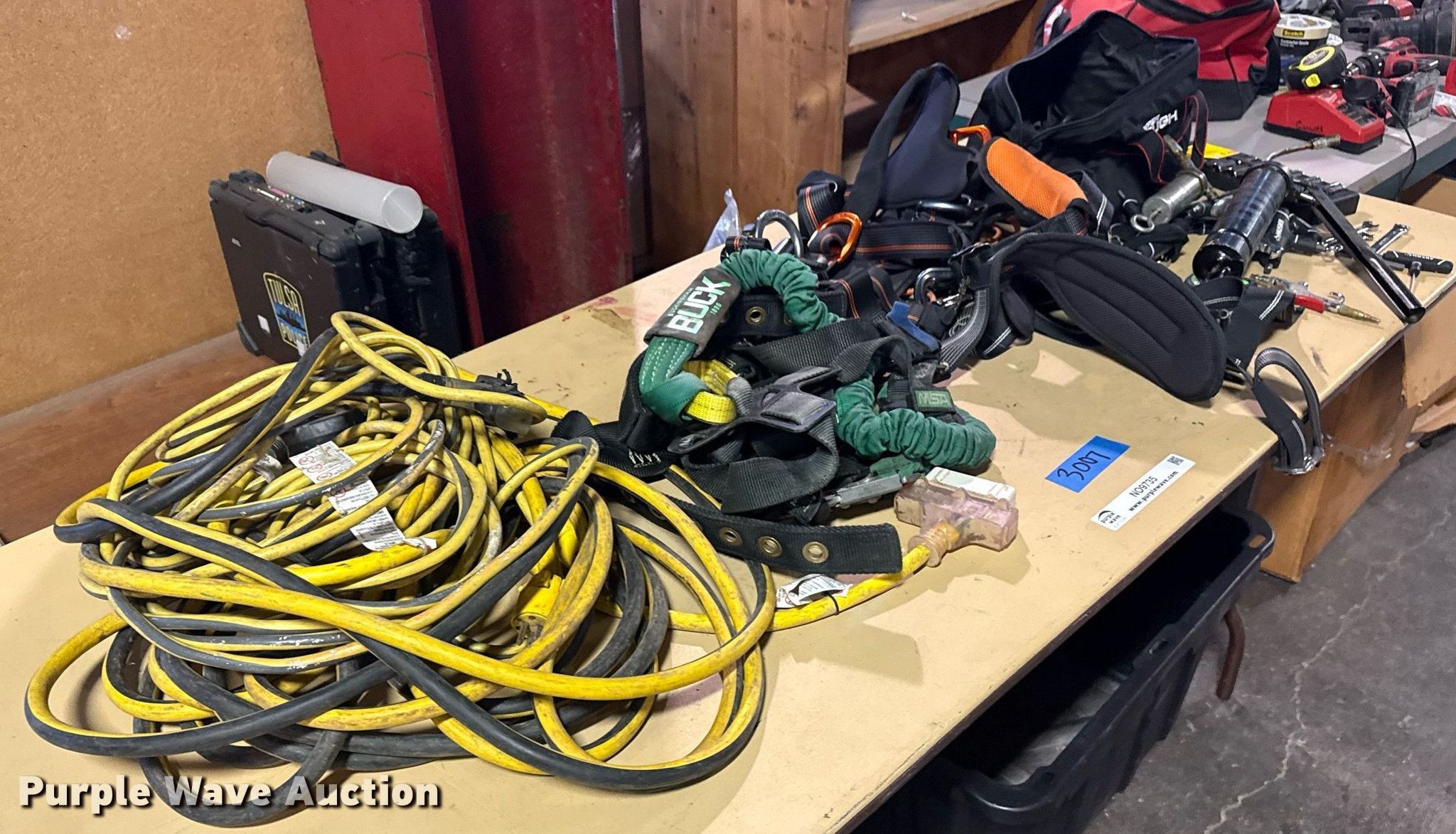 Purple Wave is selling a used Tools in Oklahoma. This item is a Tools with the following: Skylotec harness, Buck MSA harness, Tools, Unit #: 3007
