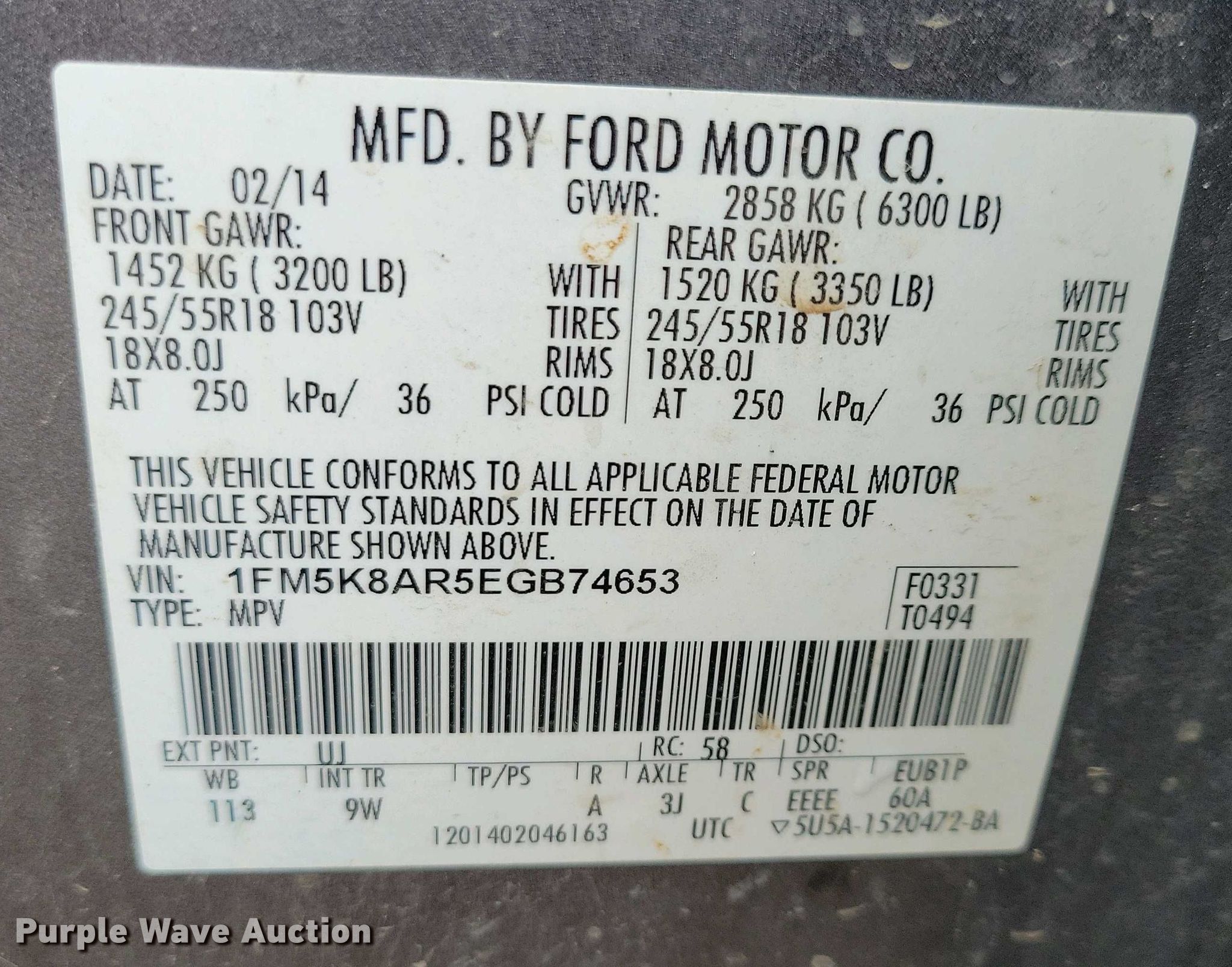 - VIN: 1FM5K8AR5EGB74653