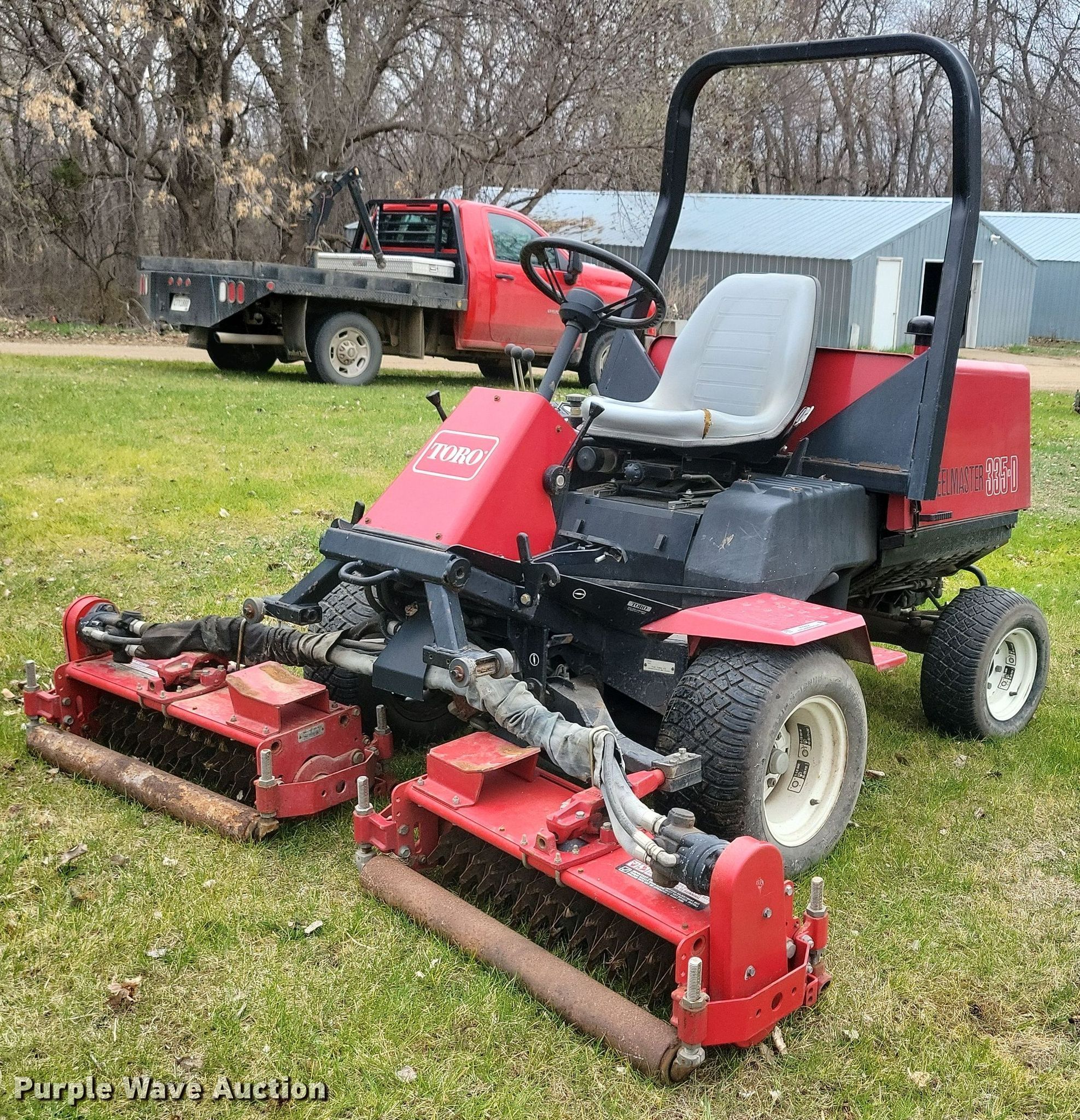 Purple Wave is selling a used Commercial Turf Mower in South Dakota. This item is a Toro Reelmaster 335D reel mower with the following: Hours: 1,376 on meter, Cutting width: 80"