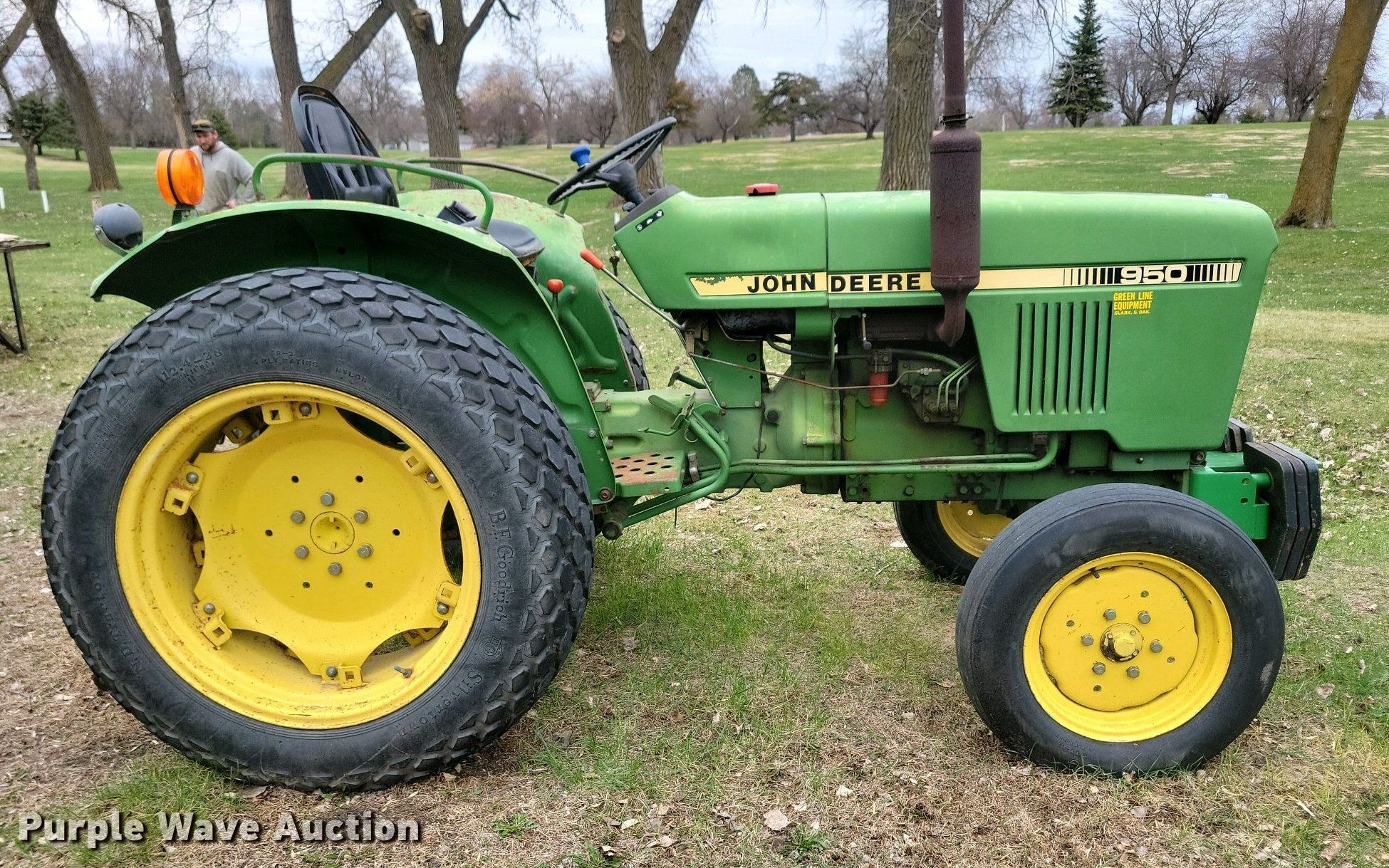 John Deere 950 tractor. Hours: 6,167 on meter. Engine Yanmar 3T90J, Displacement: 104.81 C.I.D., Cylinders: 3, Fuel type: Diesel. Transmission Manual, 8F - 2R, Differential lock. Features PTO: 540, Three point, Suitcase weights: 3. Tires Front: 6.00-16, Rear: 12.4-28. Notes Dead battery, Clutch issues, Non-operational three point. City of Clark, SD. Clark, SD 57225