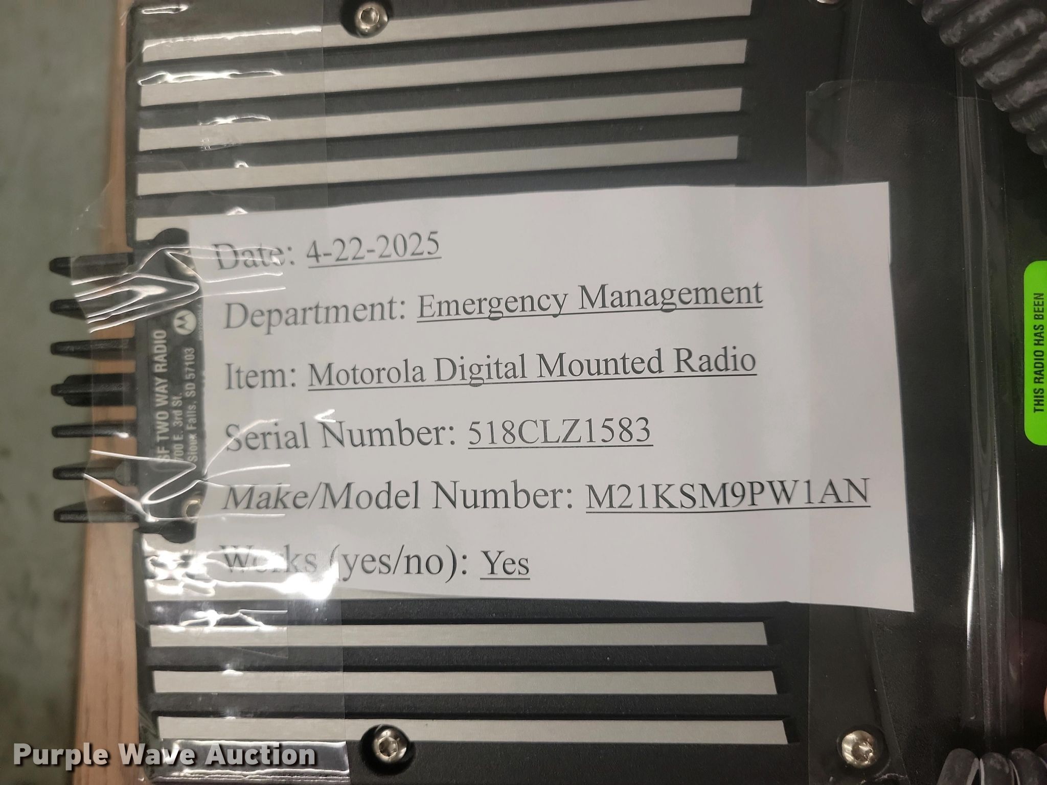 Purple Wave is selling a used Electronics in South Dakota. This item is a (10) Motorola radios with the following: (3) XTS 2500 portable digital radios, (5) XTL 2500 mounted radios, (2) XTL 1500 mounted radios, iPad