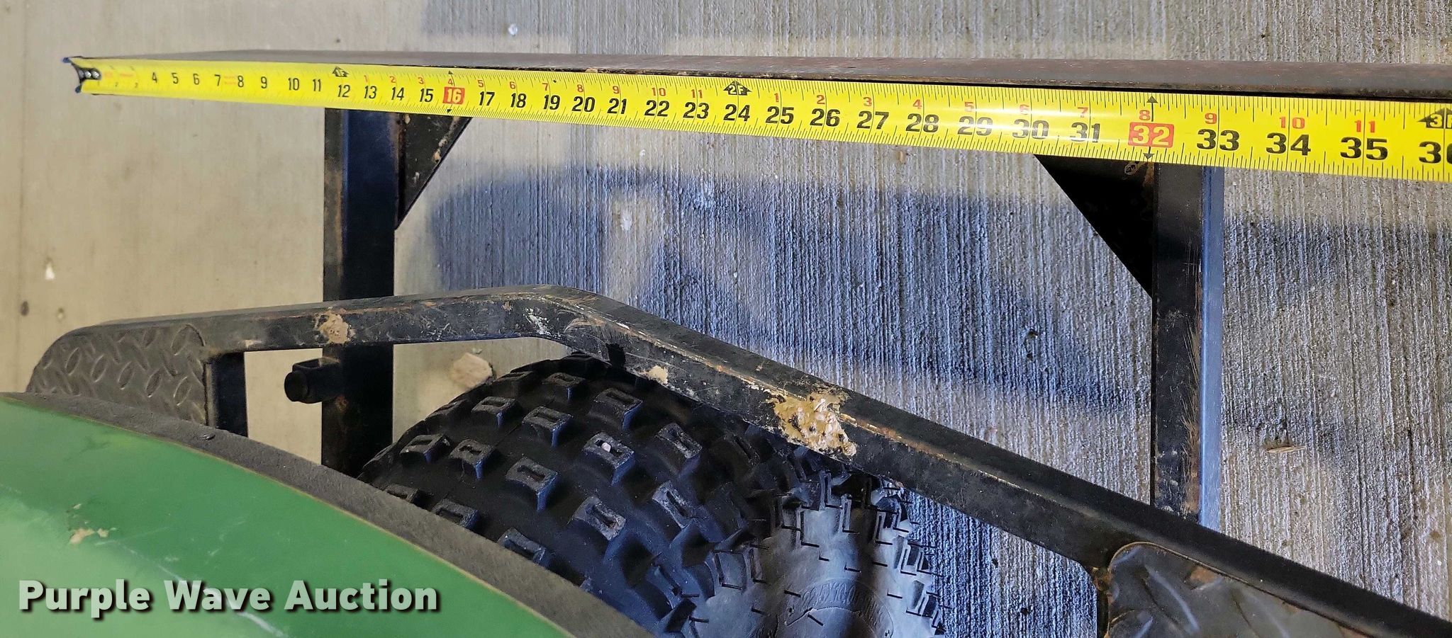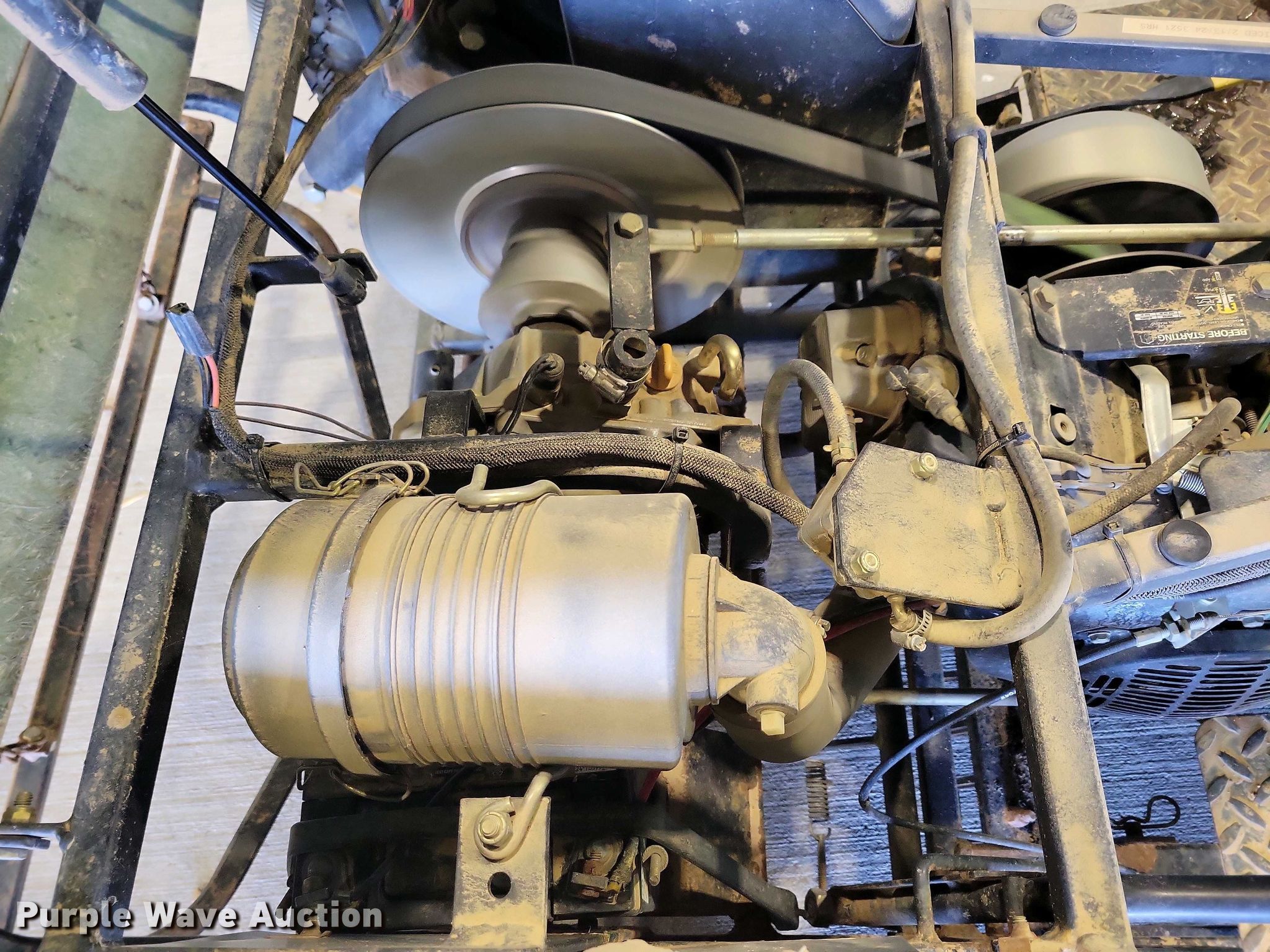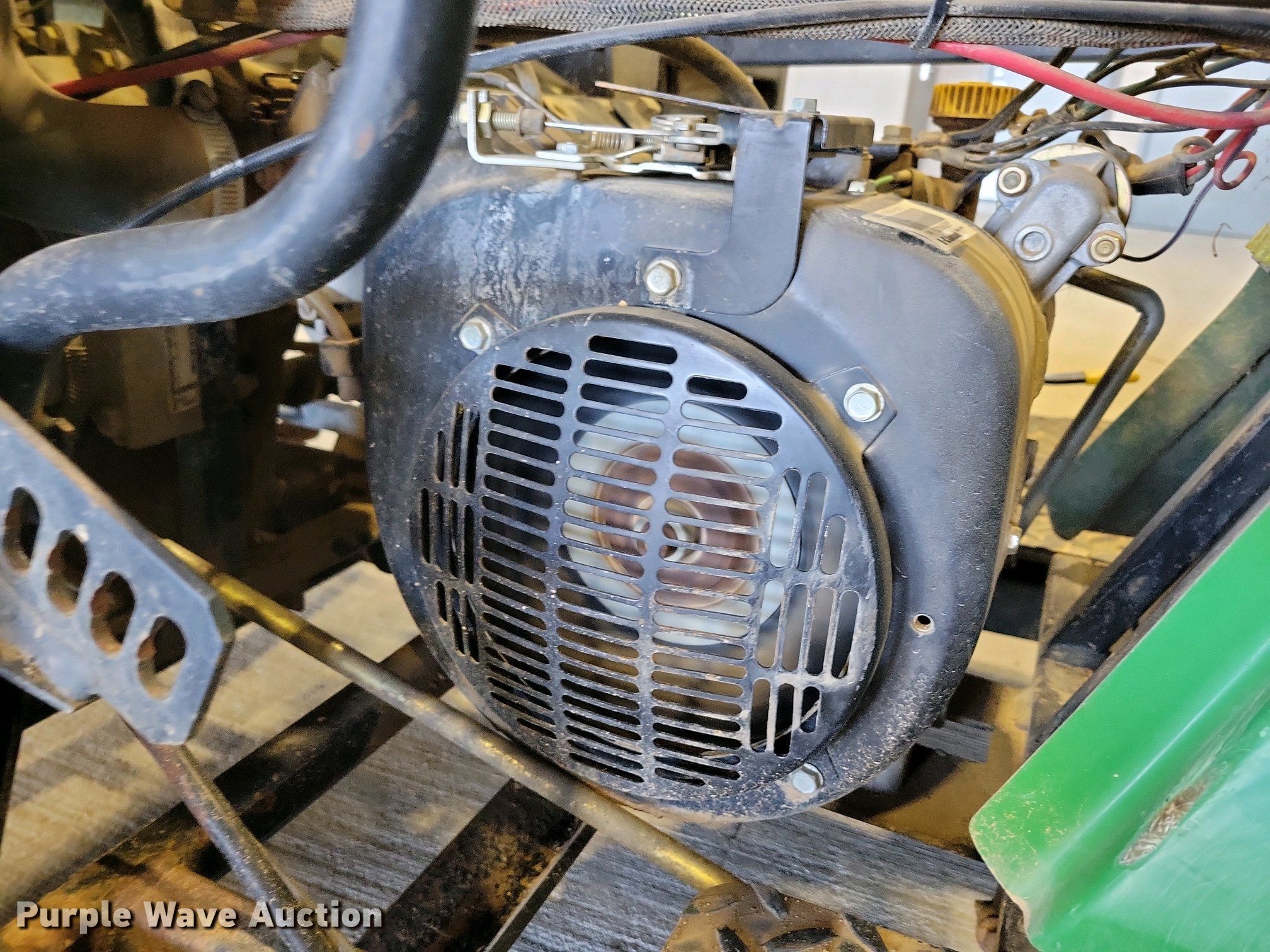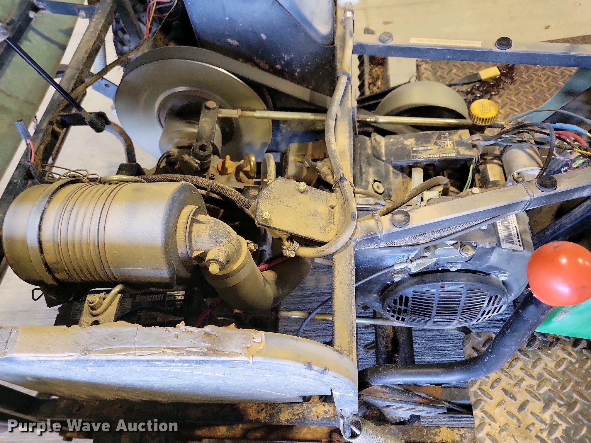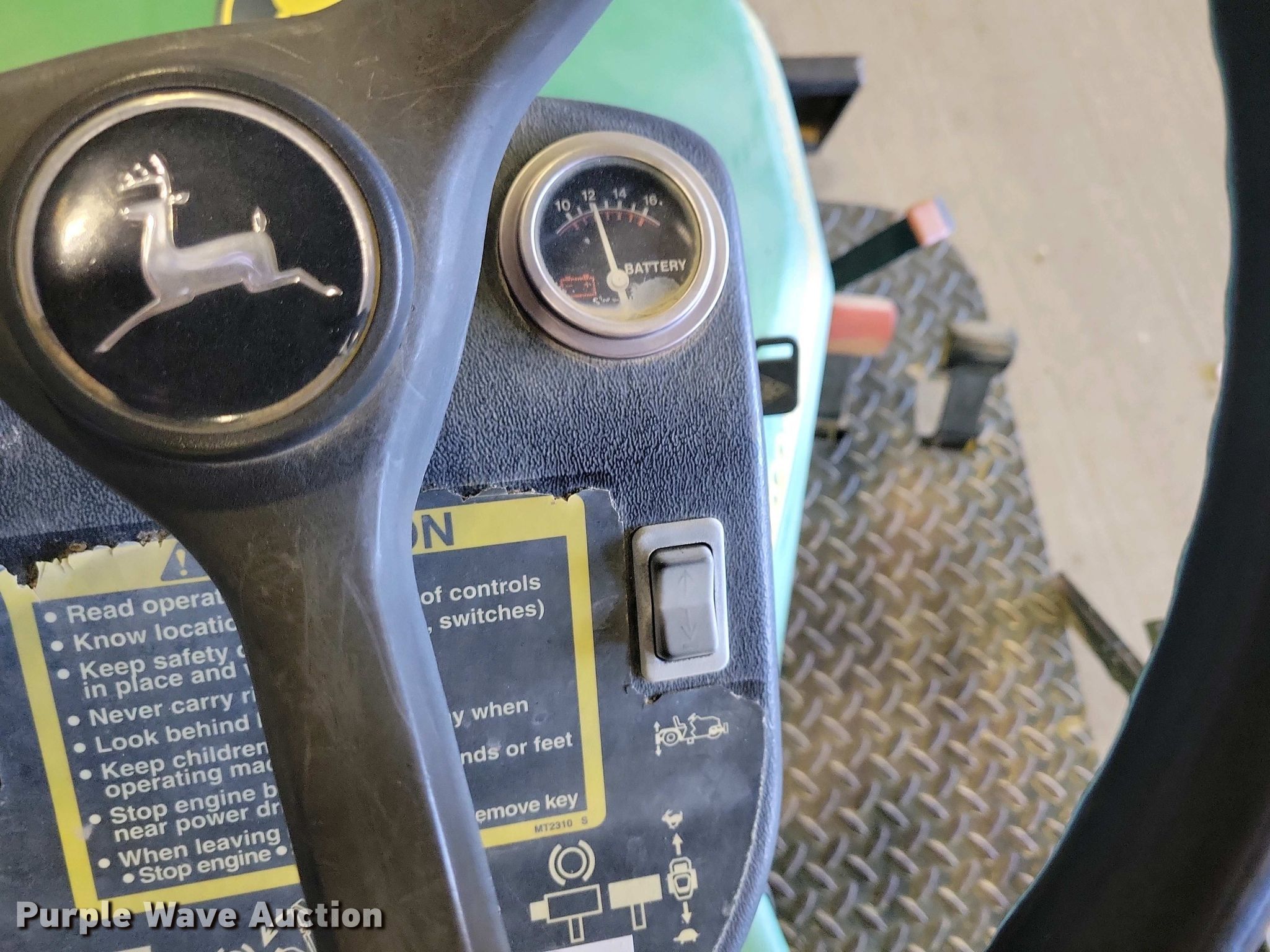 John Deere 1200A bunker rake. Hours: Unknown, Serial: 1C1200A135633. Engine Kawasaki, Cylinders: 1, Fuel type: Gas. Transmission Hydrostatic. Features Rake width: 64", Blade width: 40". Tires Front: 22.5x10.00-8NHS, Rear: AT25x12-9. Notes Hour meter damaged. State of South Dakota Bureau of Administration. Brookings, SD 57006