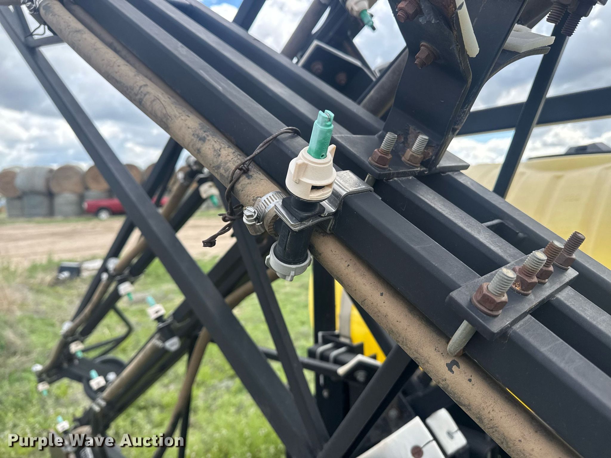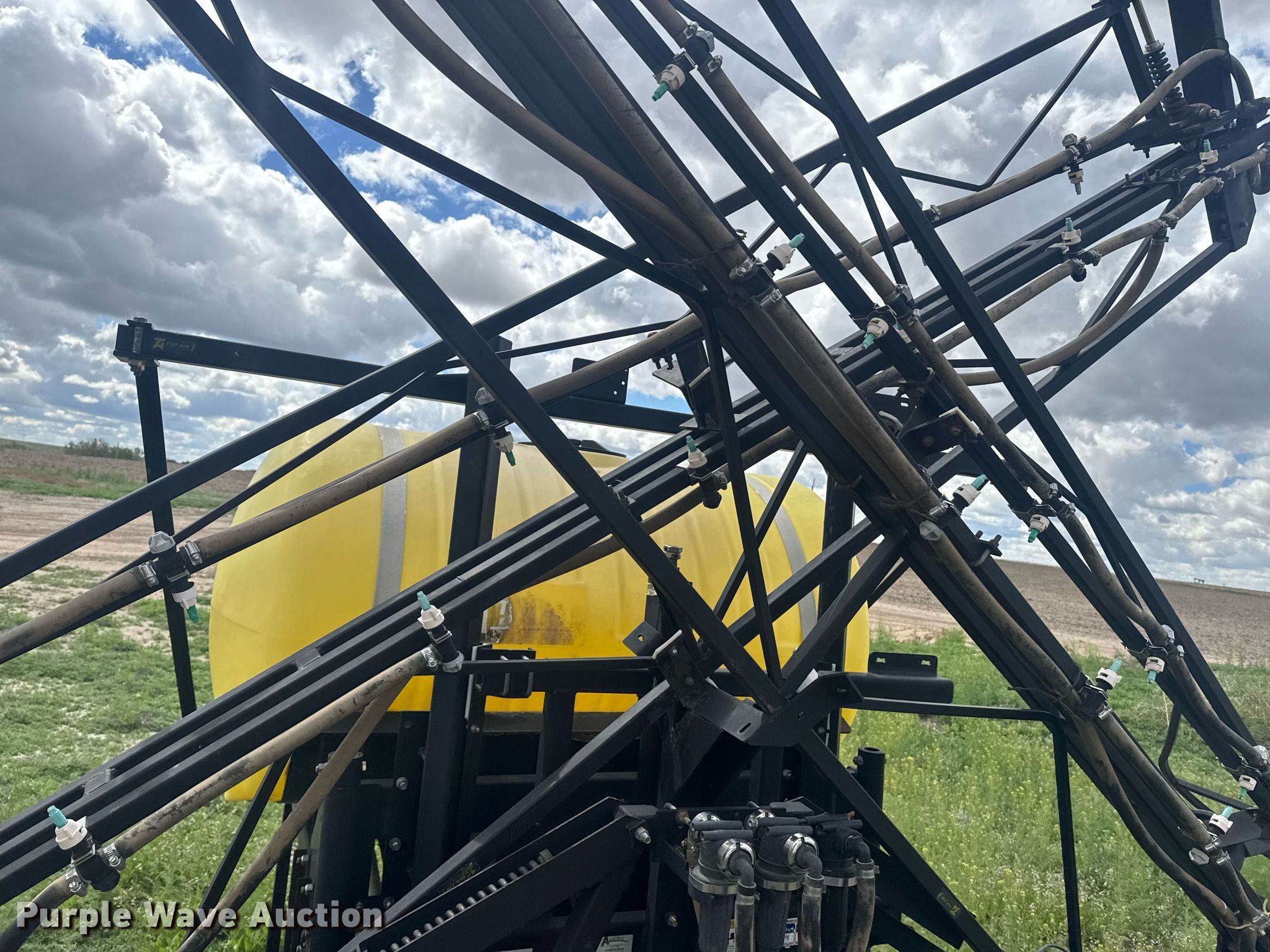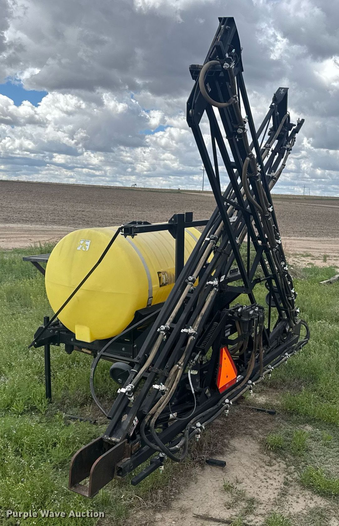 Top Air sprayer. Serial: B24230130. Features Hitch: Three point, Solution tank Capacity: 280 gallons, Type: Poly, Boom Width: 60', Sections: 3, Hydraulic fold, Nozzle bodies: Single. Flipse Hay Service. Oakley, KS 67748