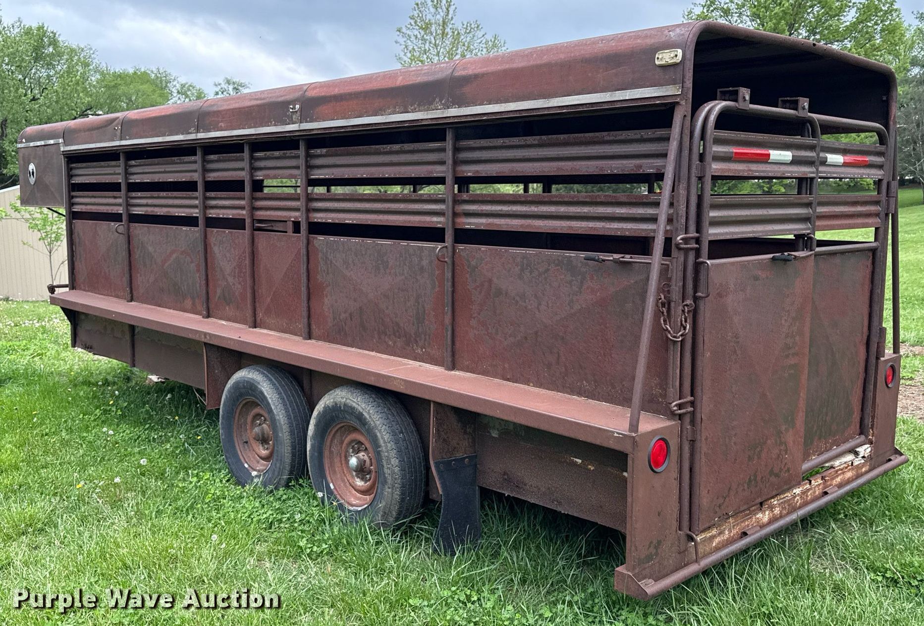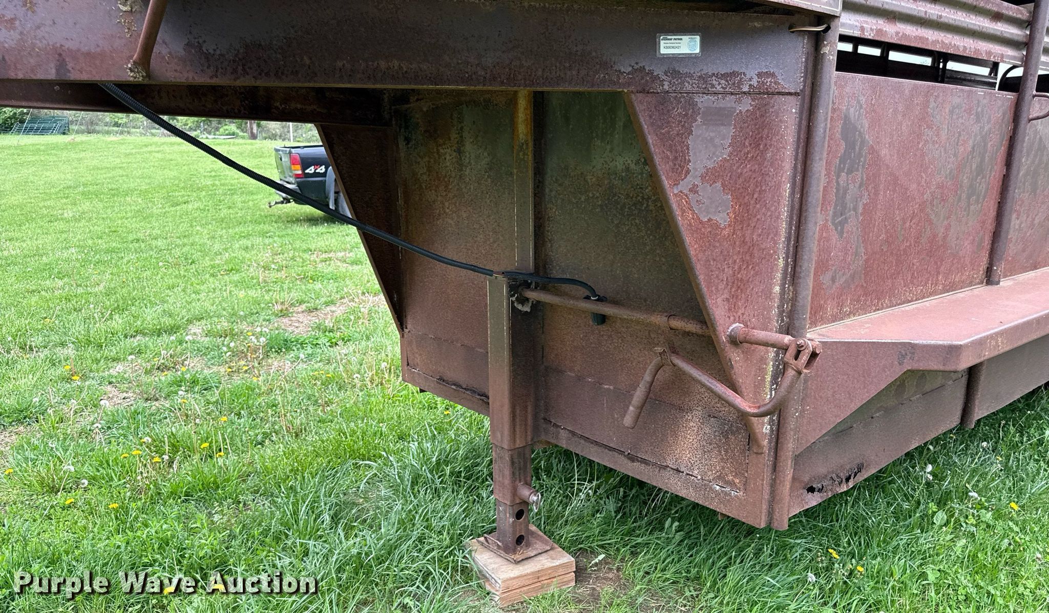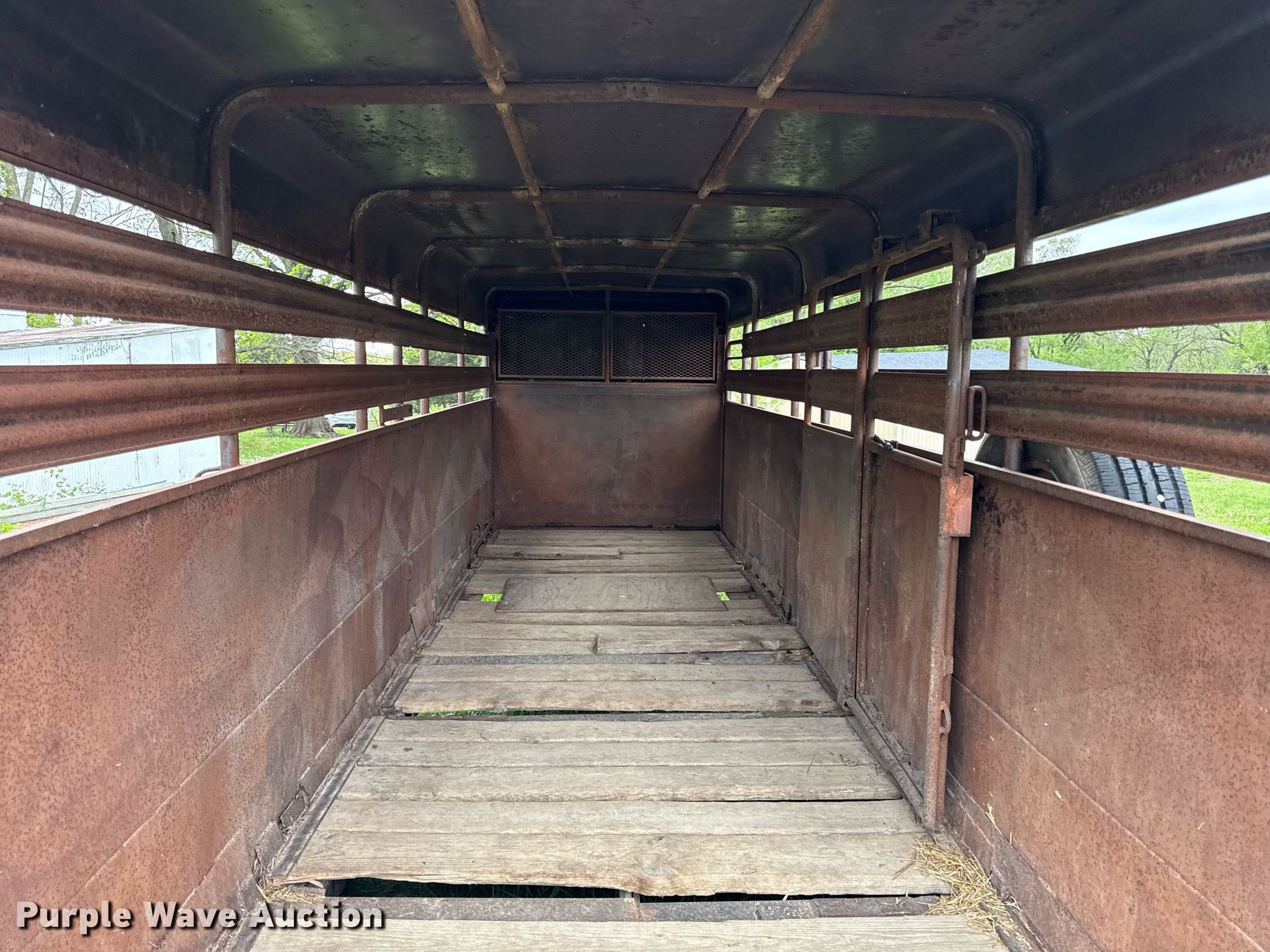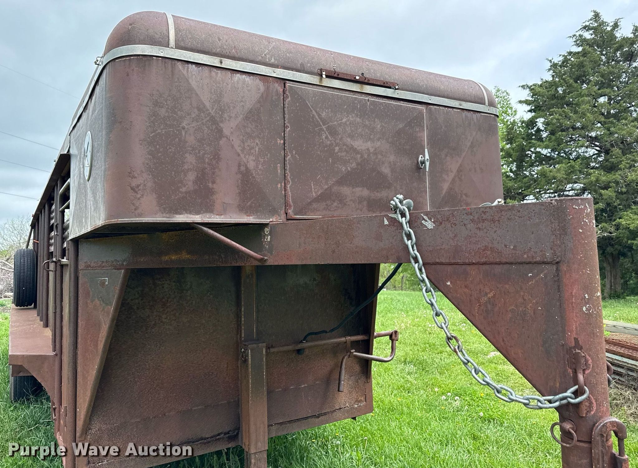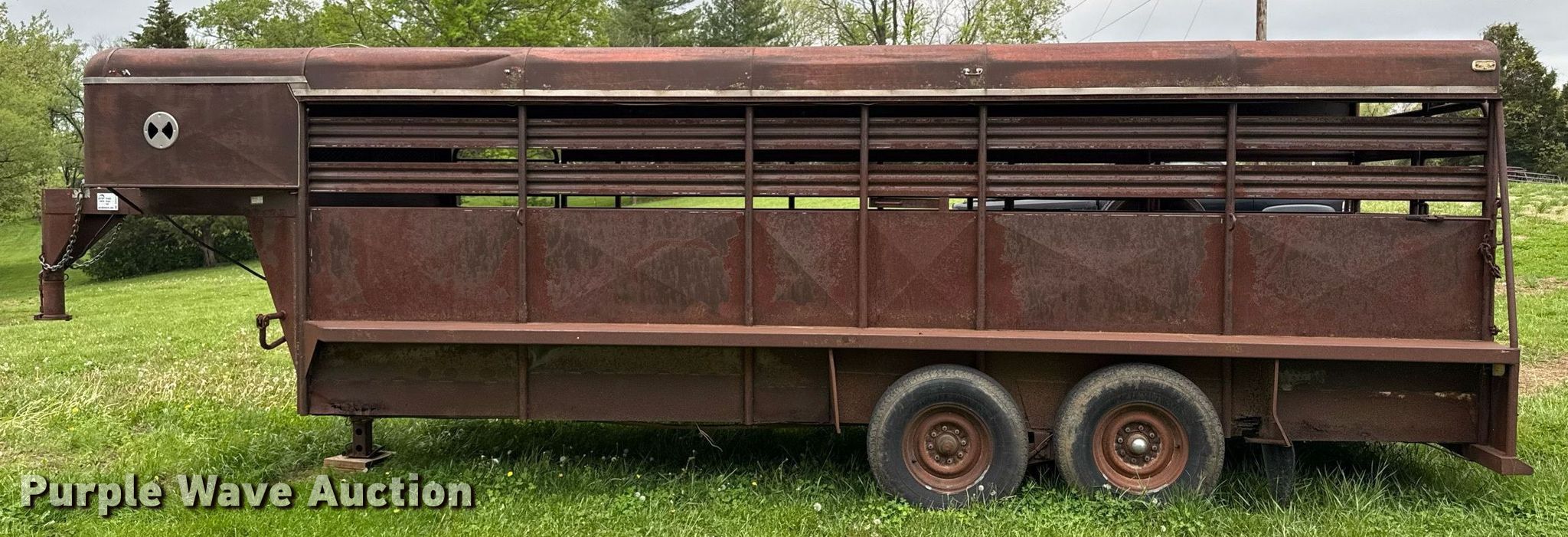 1979 Coose livestock trailer. VIN: KS00362421. Dimensions Overall: 24' L x 102" W, Body: 20' L x 74" W, Side height: 76". Features Center gates: 1. Chassis Hitch: Gooseneck, Ball hitch: 2 5/16", Landing gear: Single, Suspension: Spring, Brakes: Electric, Axles: Tandem. Tires Steel wheels, Size: 245/75R16. Kansas title. Title distribution may be delayed up to 14 days from verification of funds. Chuck Stites Farms. Edwardsville, KS 66111