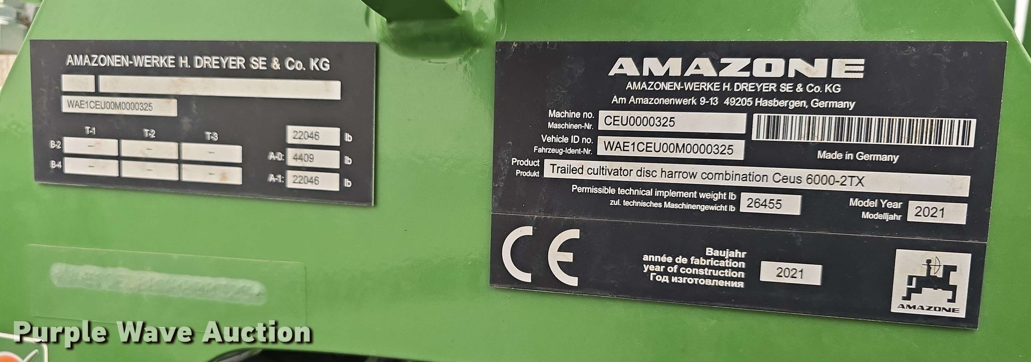 Purple Wave is selling a used Mulcher Finisher in Nebraska. This item is a 2021 Amazone Ceus 6000-2TX mulch finisher with the following: Overall width: 20', Serial: WAE1CEU00M000P325