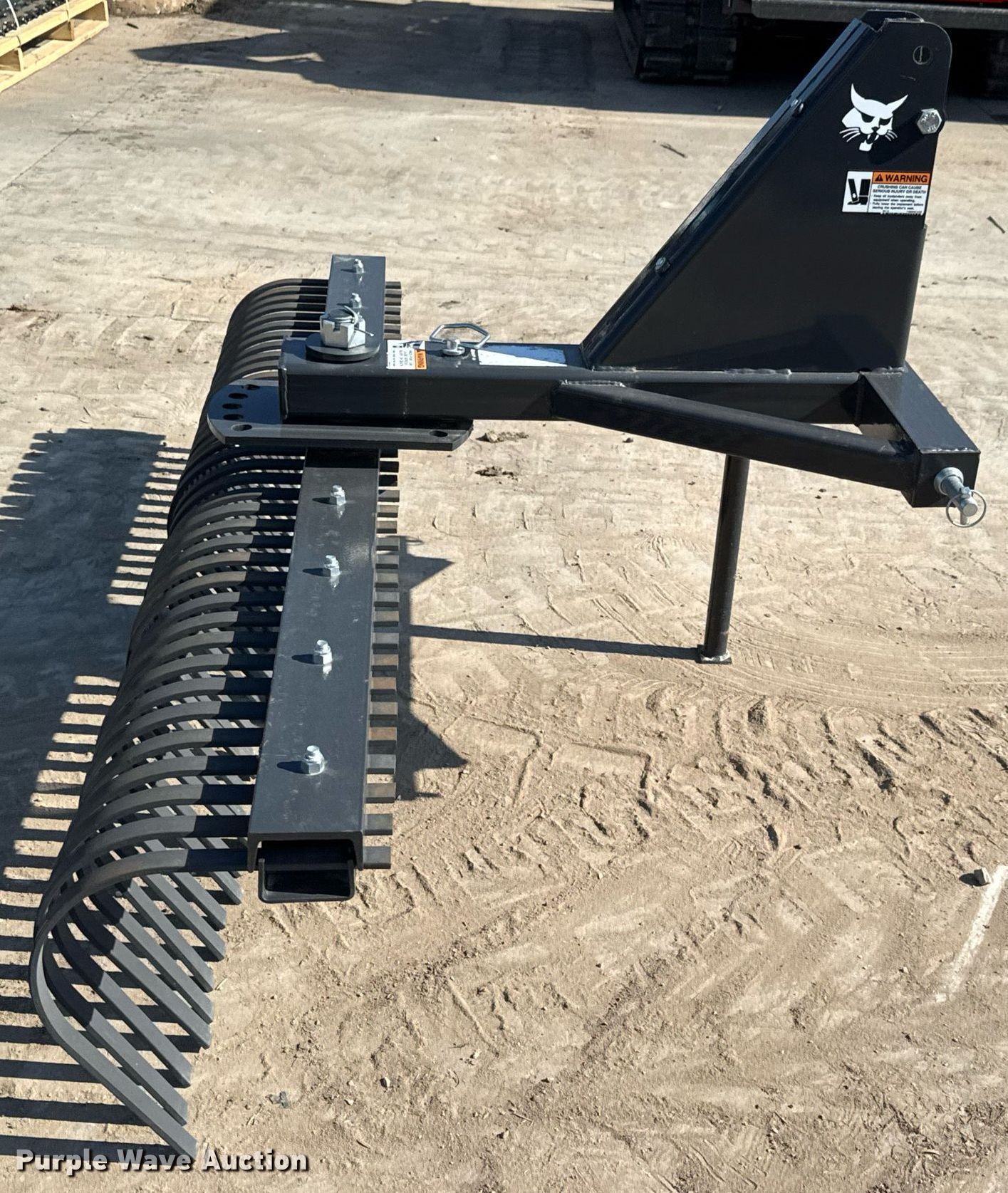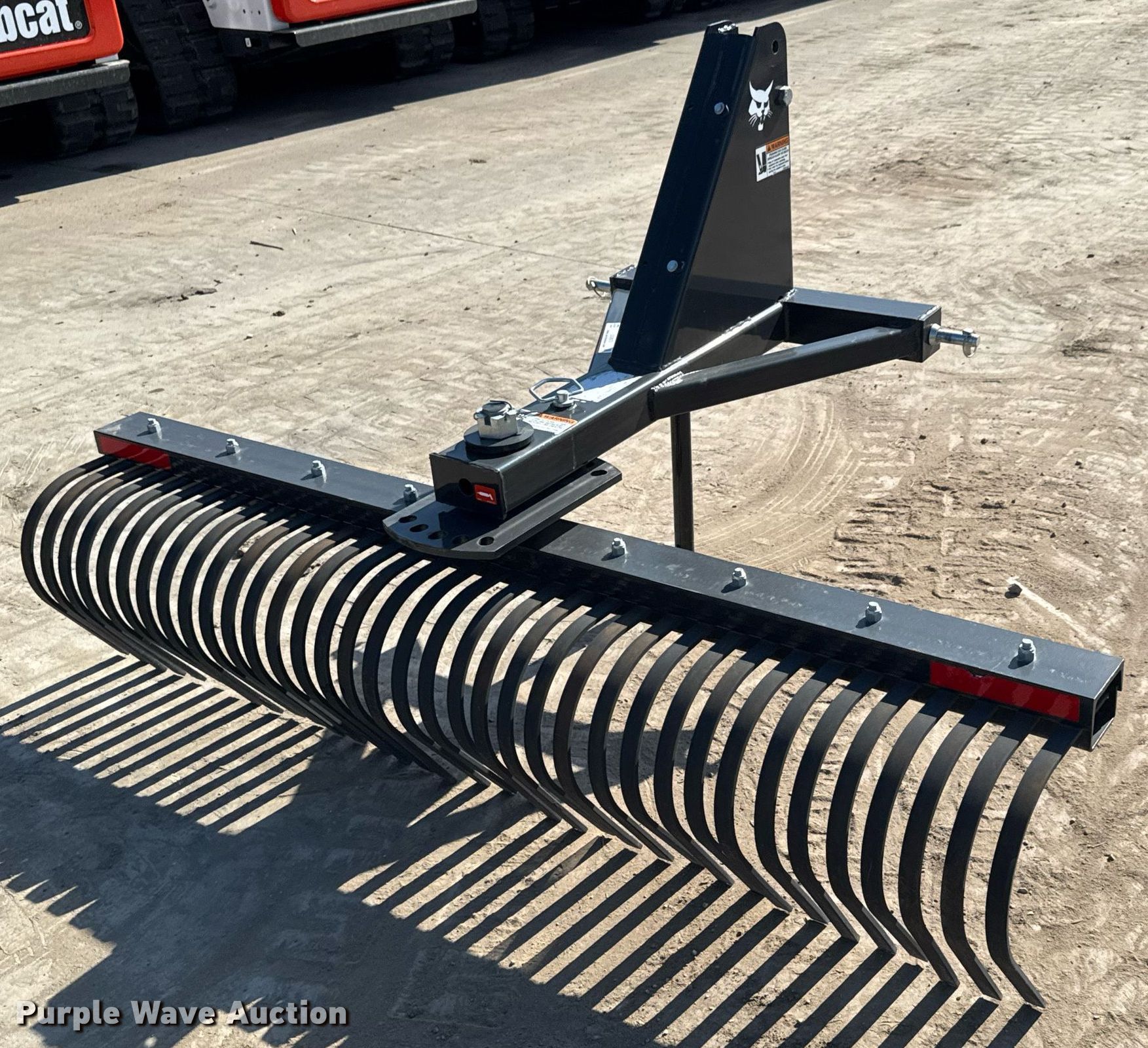 Bobcat Rake 72 landscape rake. Serial: B4UL00430. Features Hitch: Three point, Width: 72". White Star Machinery. Wichita, KS 67219