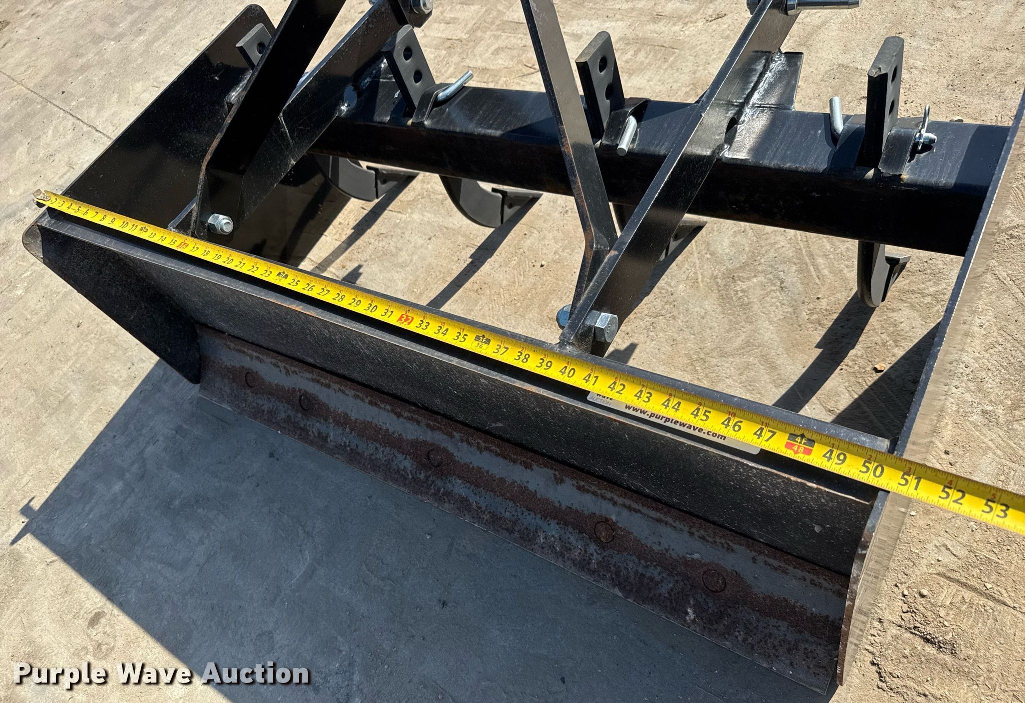 Tri-L box blade. Width: 47", Shanks: 4, Hitch: Three point. White Star Machinery. Wichita, KS 67219