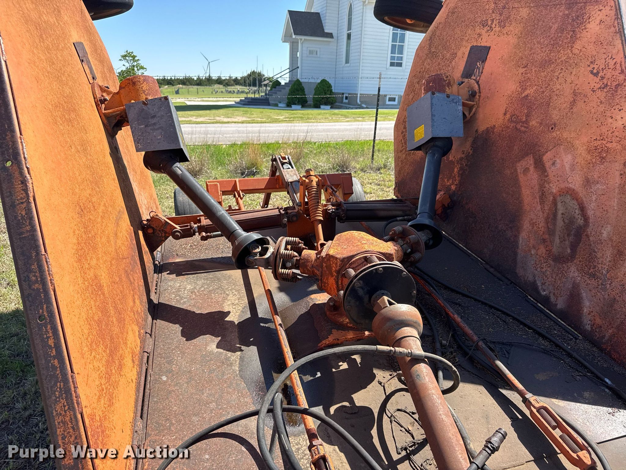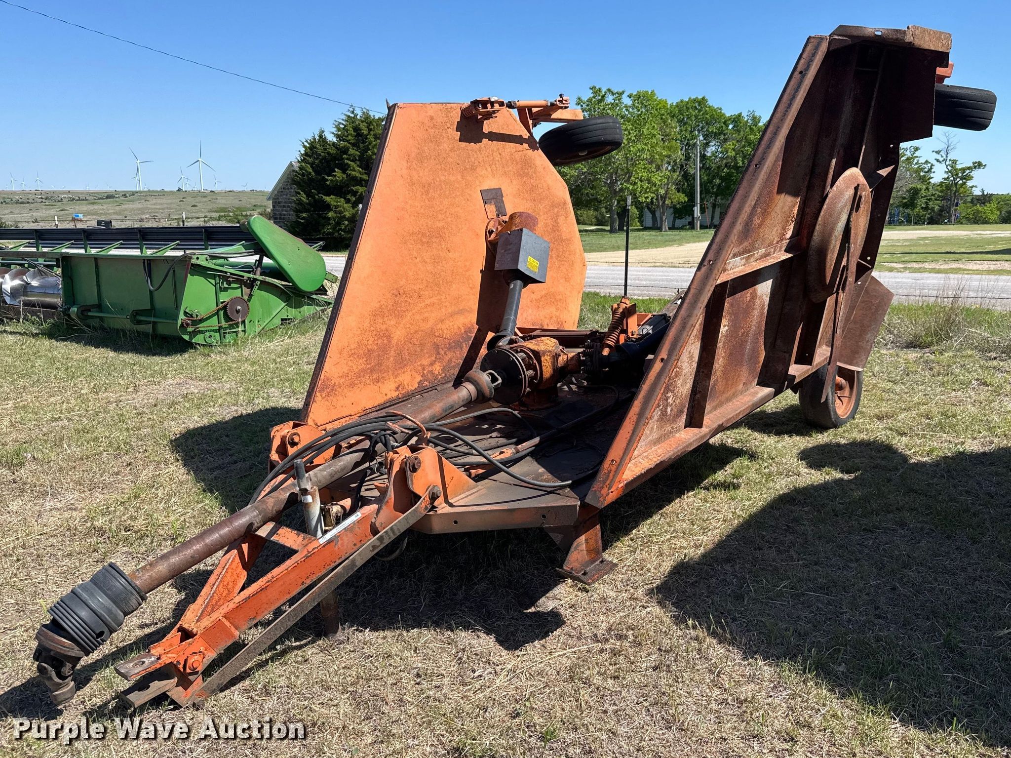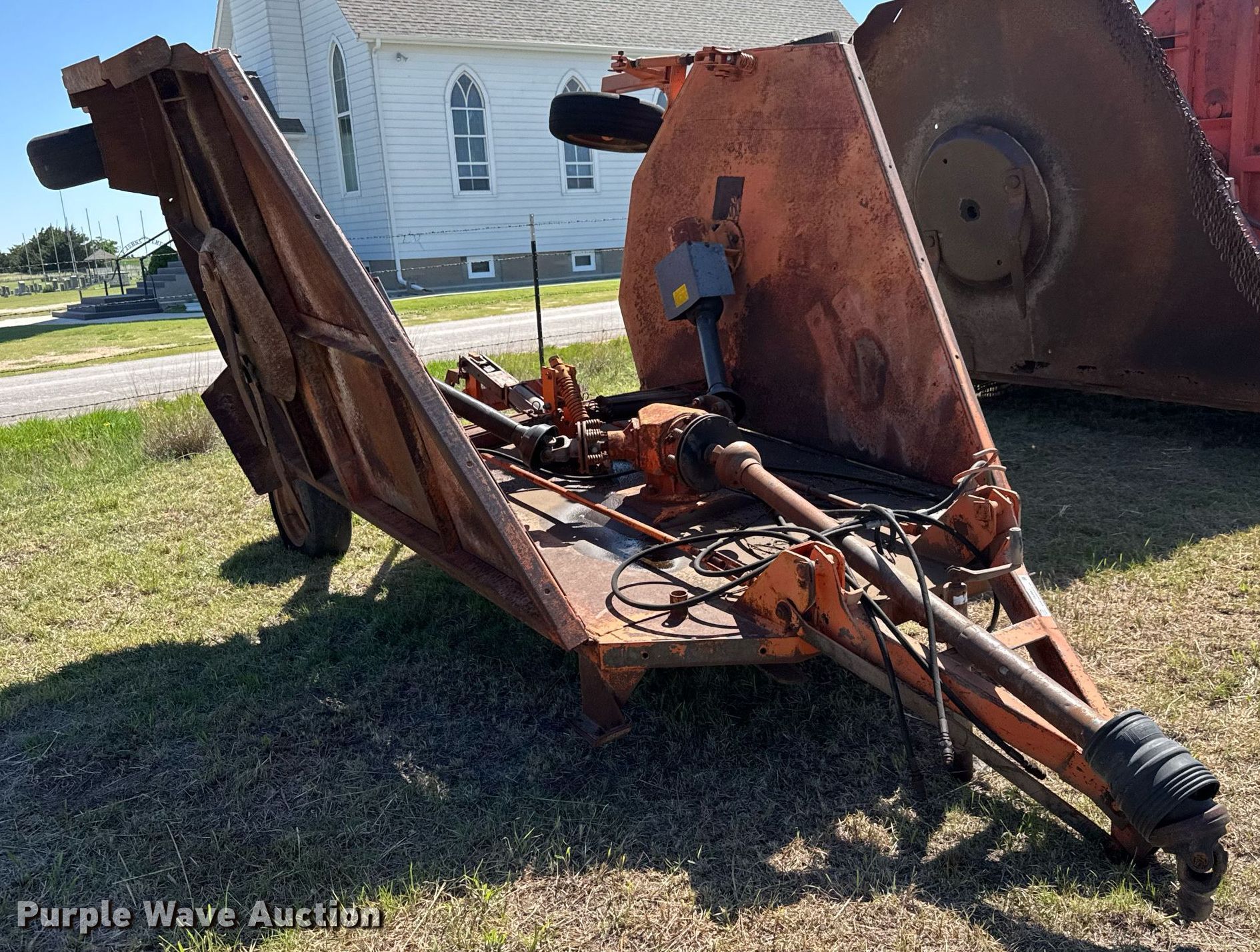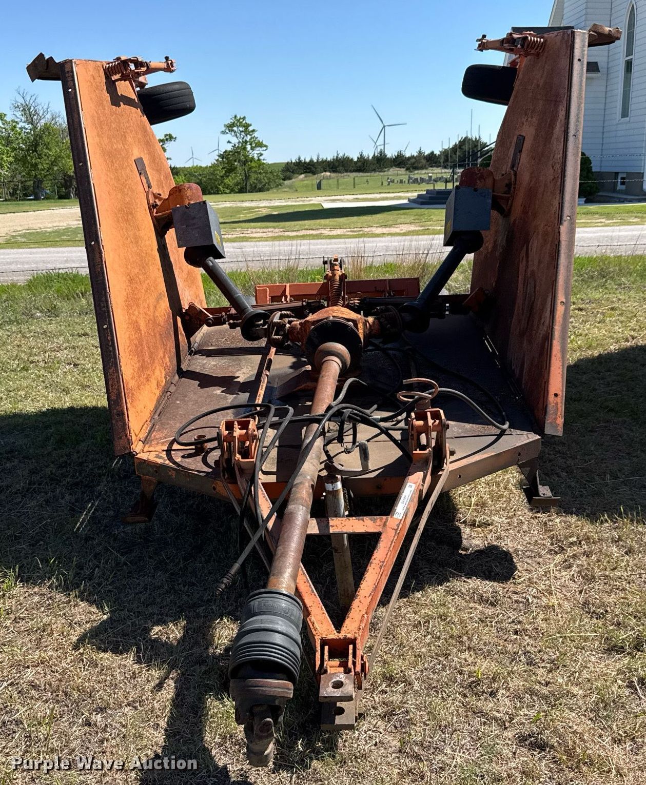 Purple Wave is selling a used Mower, Cutter, Shredder in Kansas. This item is a Batwing rotary mower with the following: Width: 15', Hydraulic lift, Hydraulic fold, PTO: 540