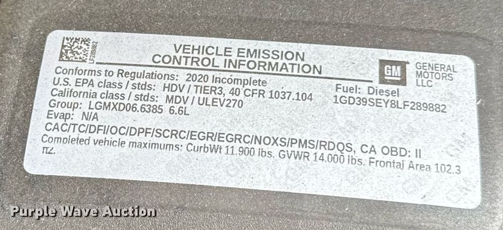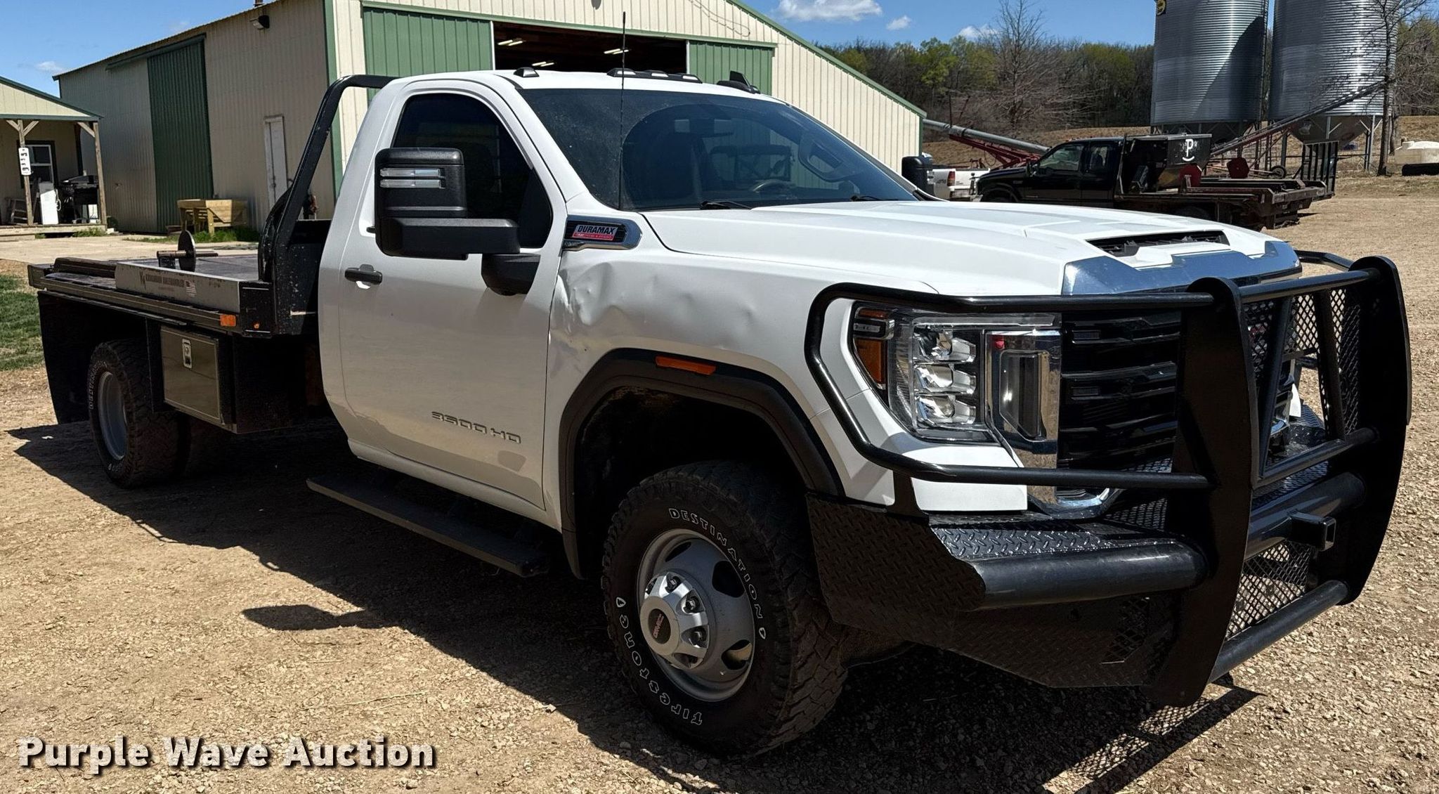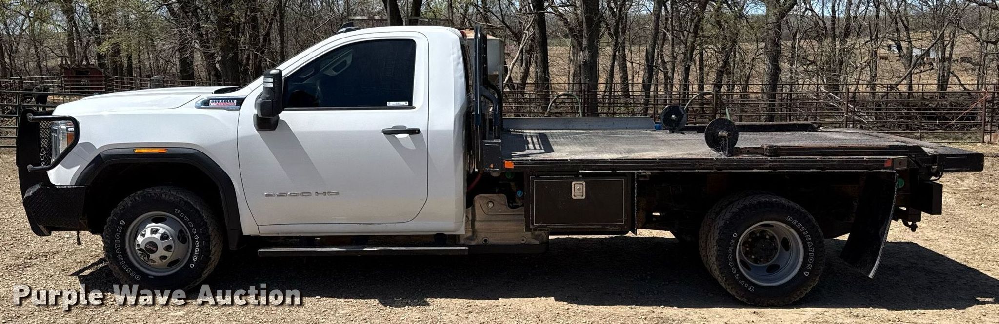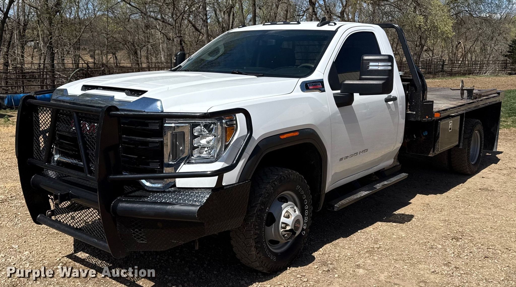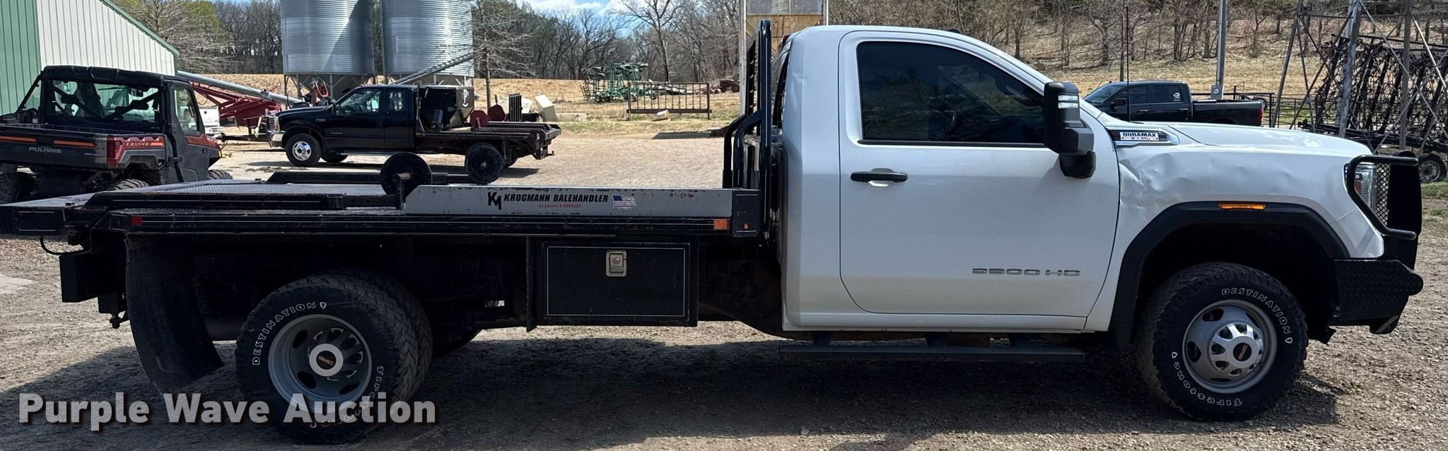 Purple Wave is selling a used 3/4 or 1 Ton Pickup or Van in Kansas. This item is a 2020 GMC Sierra 3500HD bale bed pickup truck with the following: Miles: 65,940 on odometer, Hours: 2,961 on meter, VIN: 1GD39SEY8LF289882