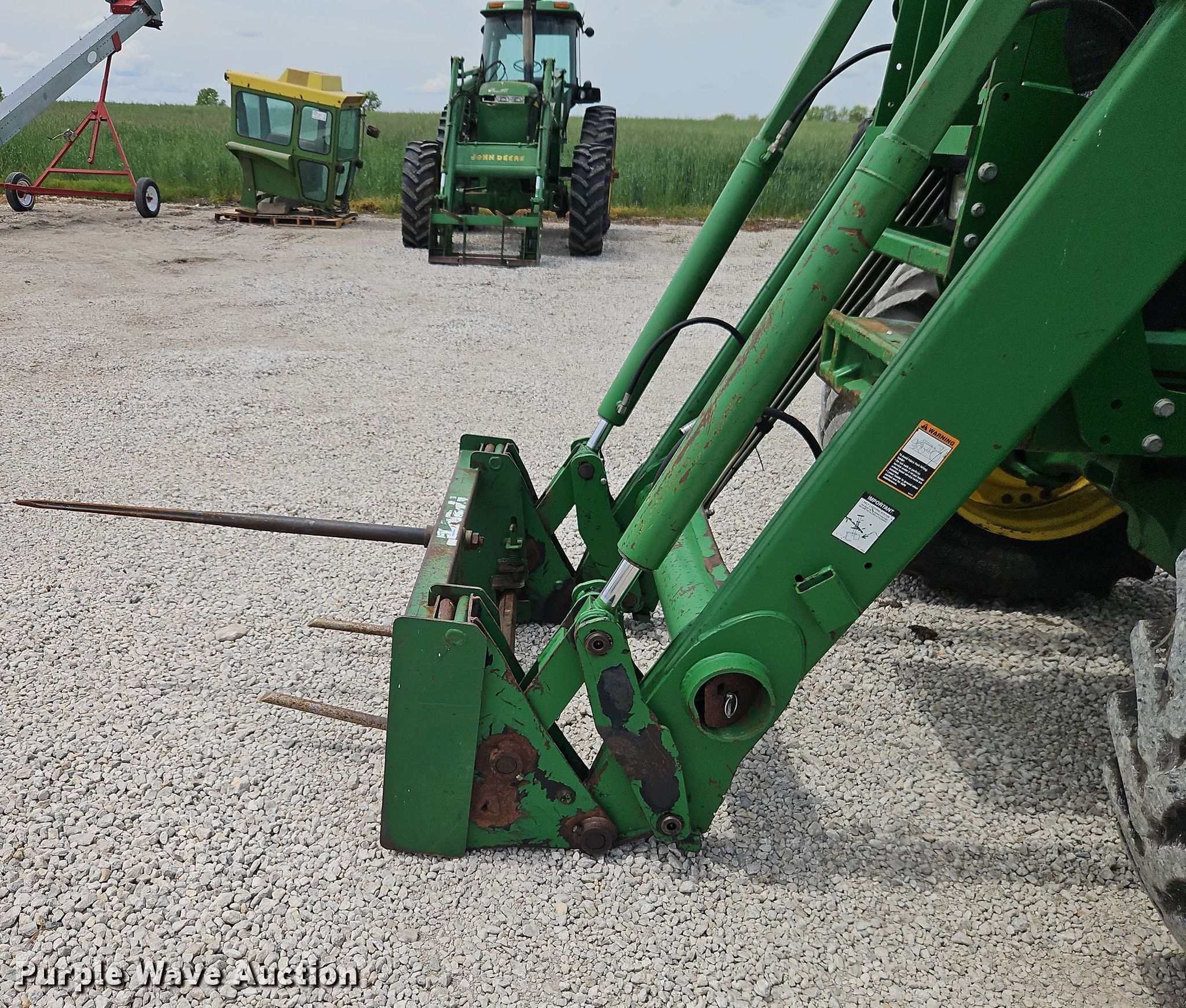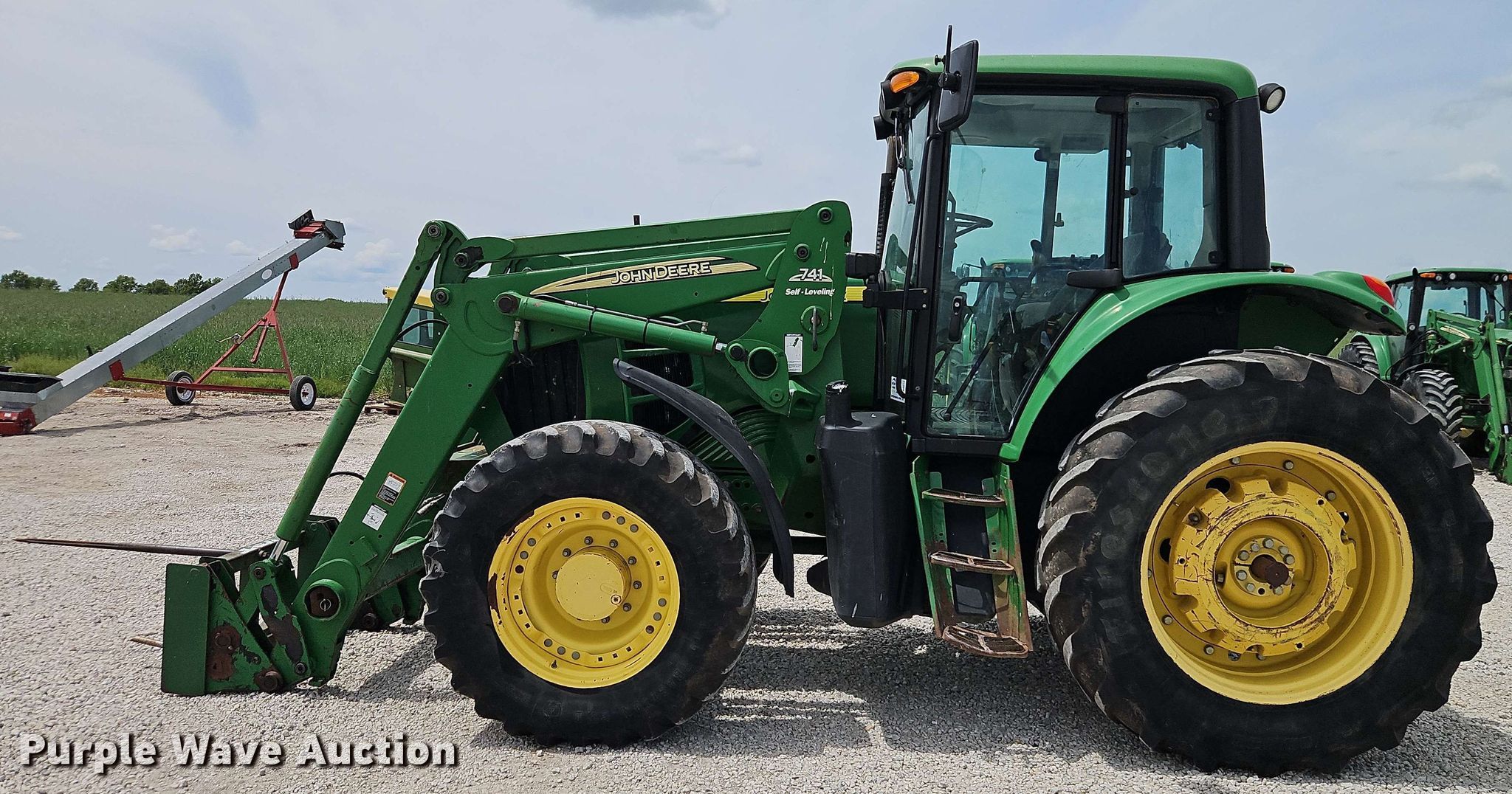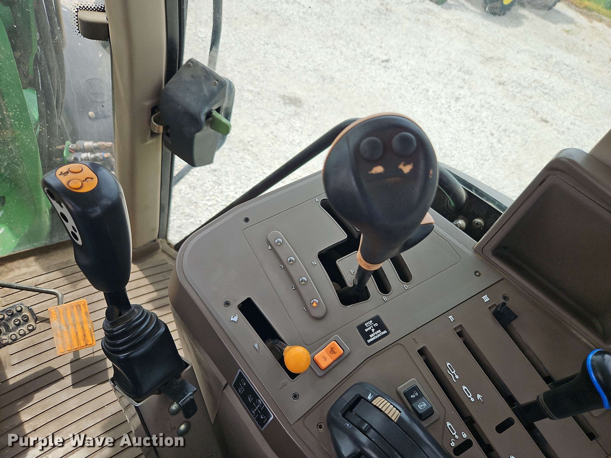 2011 John Deere 7330 MFWD tractor. Hours: 6,018 on meter, Serial: 1L07330XEBH701042. Engine John Deere 6068, Cylinders: 6, Fuel type: Diesel. Transmission Powershift, 16F - 16R, Left-hand reverser, Differential lock. Operators station AC, Heat. Features PTO: 540, 1000, Three point, Seven pin outlet, Hydraulic remote sets Front: 2, Rear: 2, Loader John Deere 741, Quick attach, Bale spear, Self-leveling, Controls: Joystick. Tires Front: 380/85R28, Rear: 460/85R38, Wheel weights: 2. Foote Cattle Company. Bucyrus, KS 66013