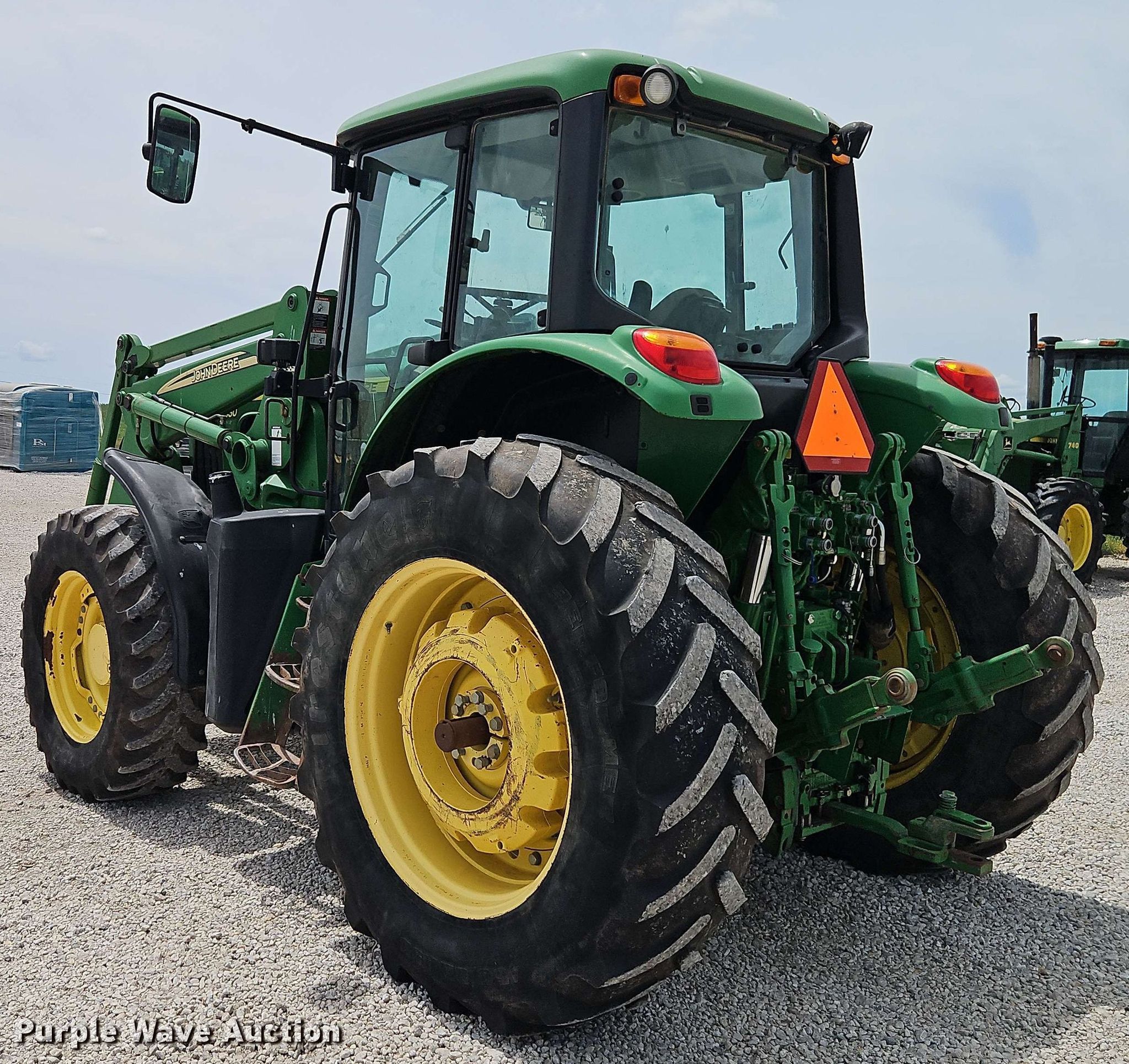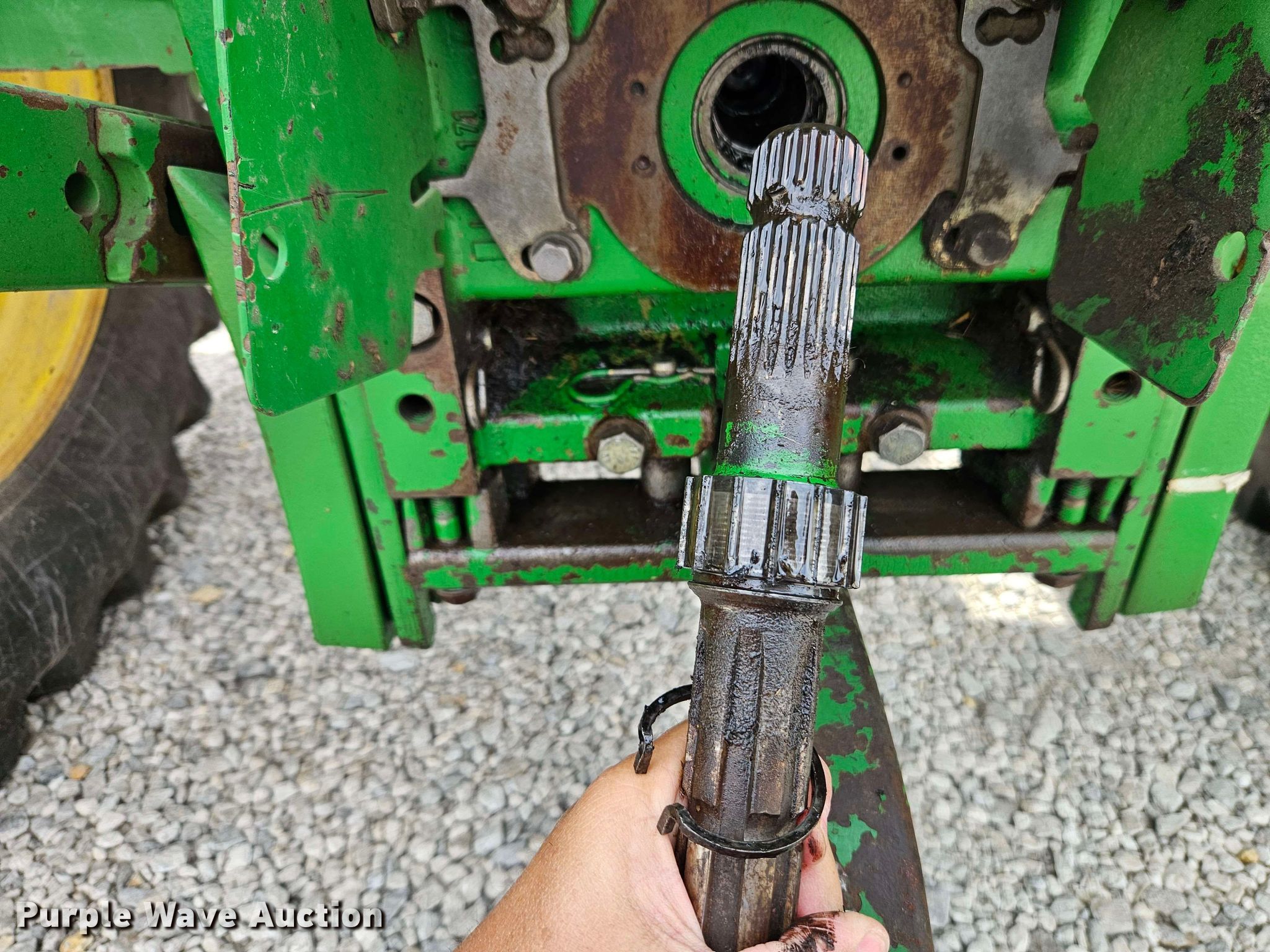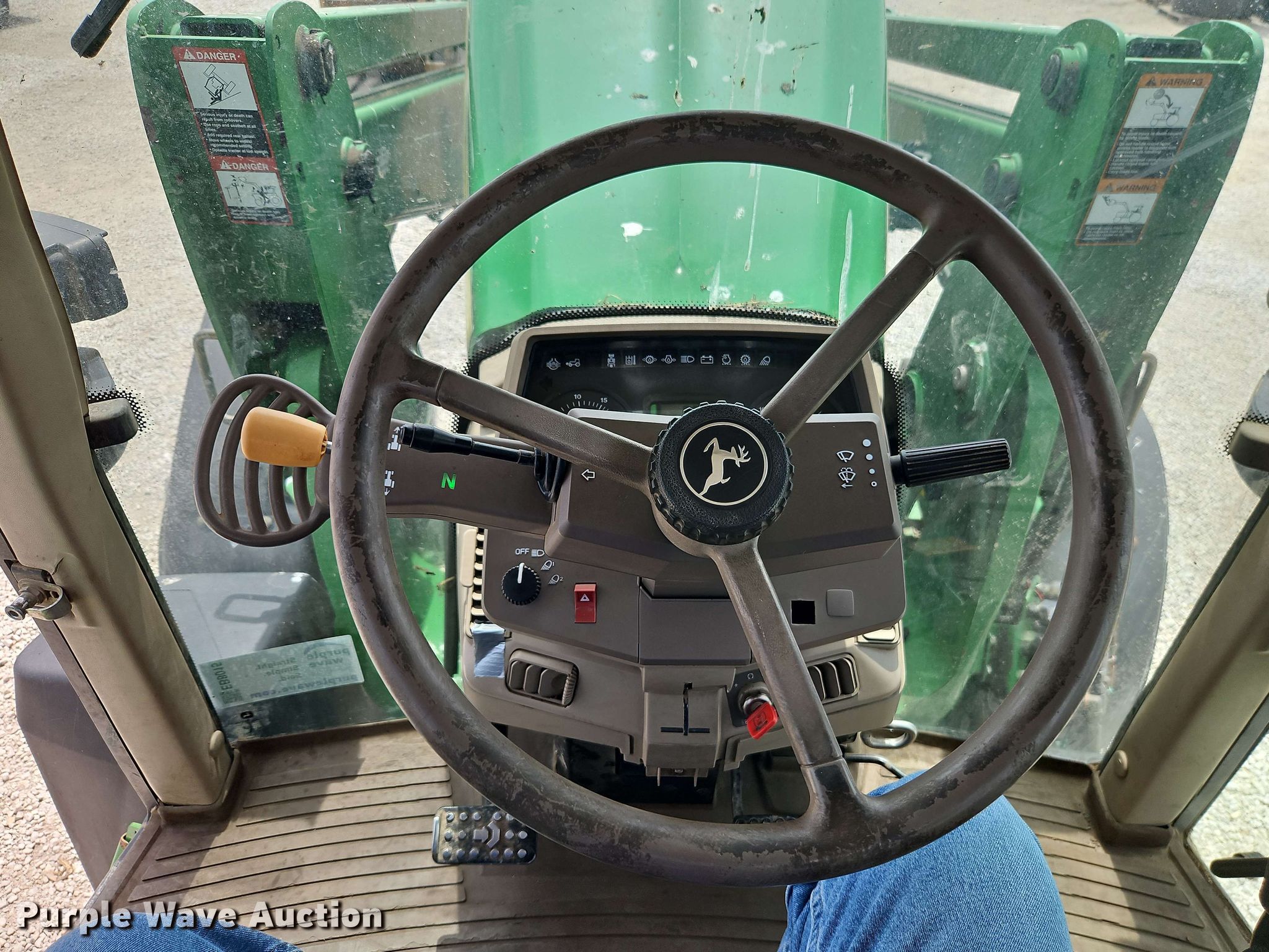 2011 John Deere 7330 MFWD tractor. Hours: 6,018 on meter, Serial: 1L07330XEBH701042. Engine John Deere 6068, Cylinders: 6, Fuel type: Diesel. Transmission Powershift, 16F - 16R, Left-hand reverser, Differential lock. Operators station AC, Heat. Features PTO: 540, 1000, Three point, Seven pin outlet, Hydraulic remote sets Front: 2, Rear: 2, Loader John Deere 741, Quick attach, Bale spear, Self-leveling, Controls: Joystick. Tires Front: 380/85R28, Rear: 460/85R38, Wheel weights: 2. Foote Cattle Company. Bucyrus, KS 66013