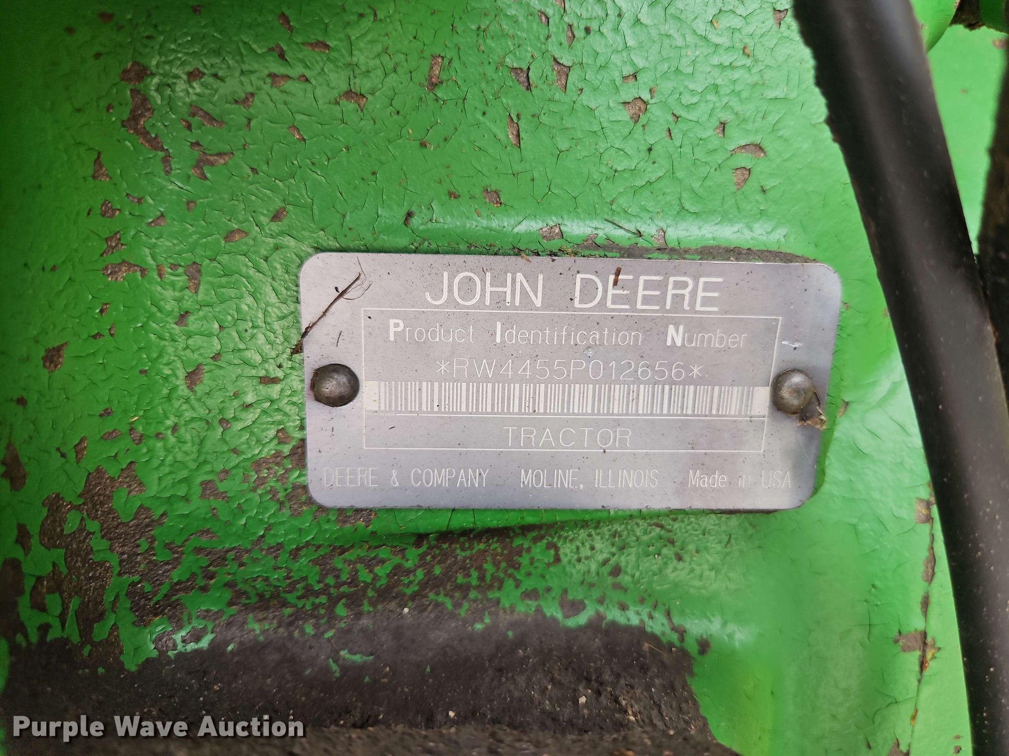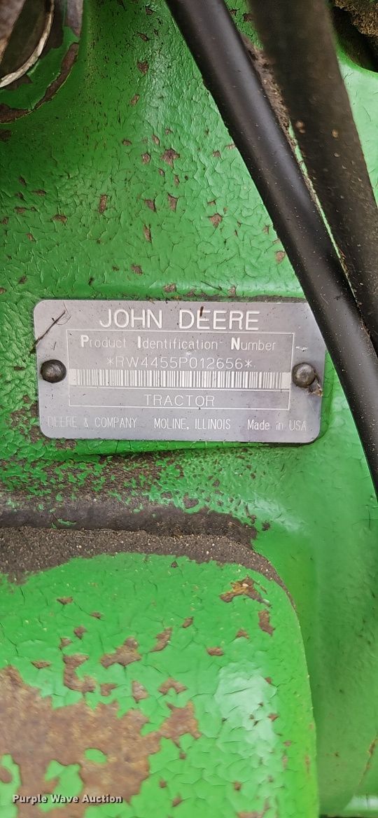 Purple Wave is selling a used Tractor in Kansas. This item is a 1992 John Deere 4455 MFWD tractor with the following: Hours: 8,564 on meter, Serial: RW4455P012656