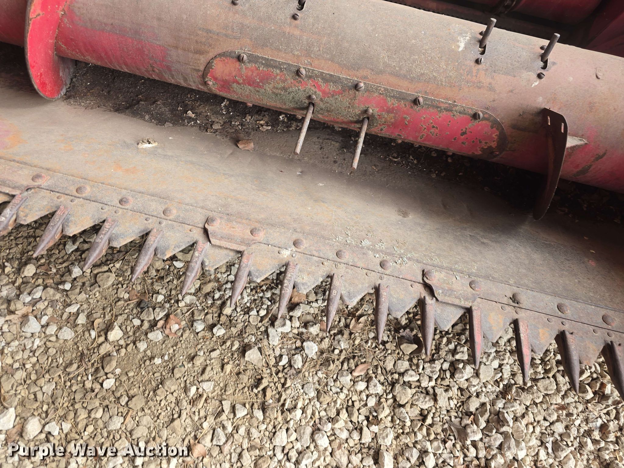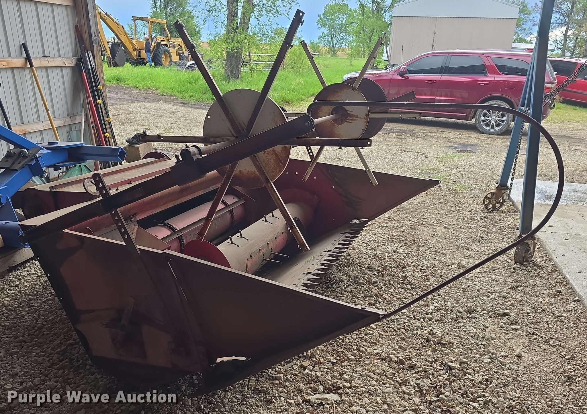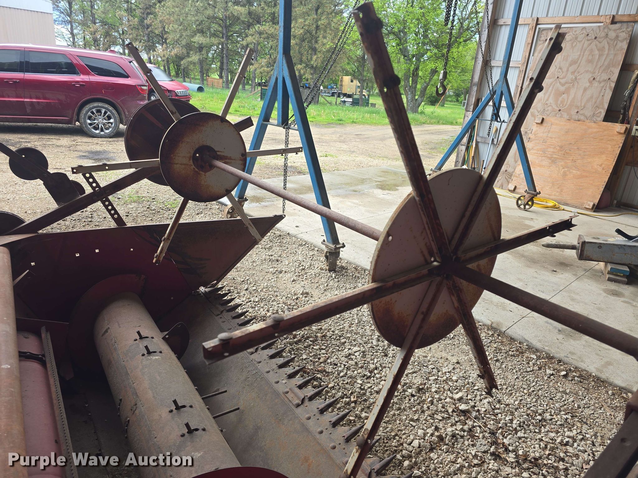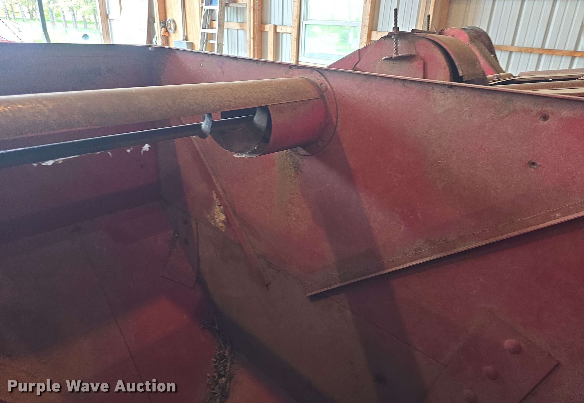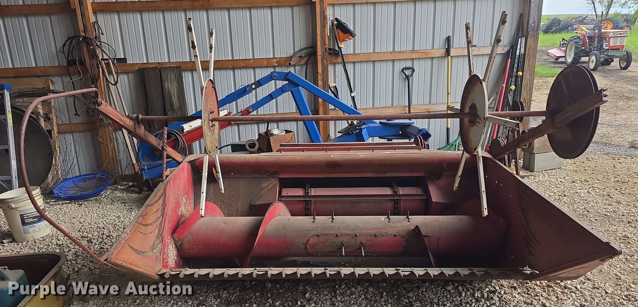 Purple Wave is selling a used Combine in Kansas. This item is a International Harvester McCormick No. 80 combine with the following: Cutting width: Approx. 6' to 7', Grain tank capacity: 26 bushels, Chaff spreader, Unloading auger length: 7', PTO: 540, Header, International Harvester McCormick, Platform head, Width: 80", Rigid, Reel: Bat, Hydraulic fore/aft, Skid plates: Steel