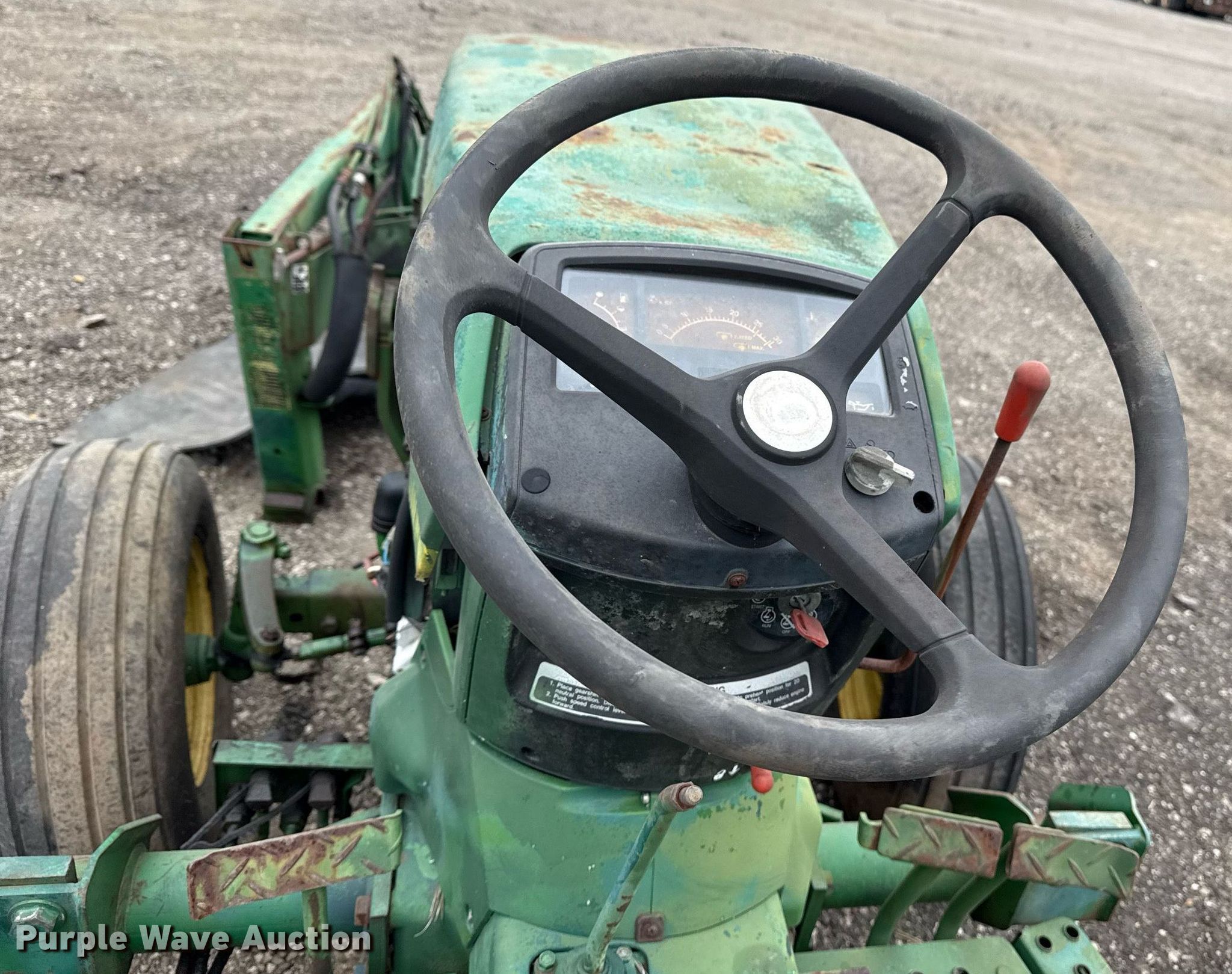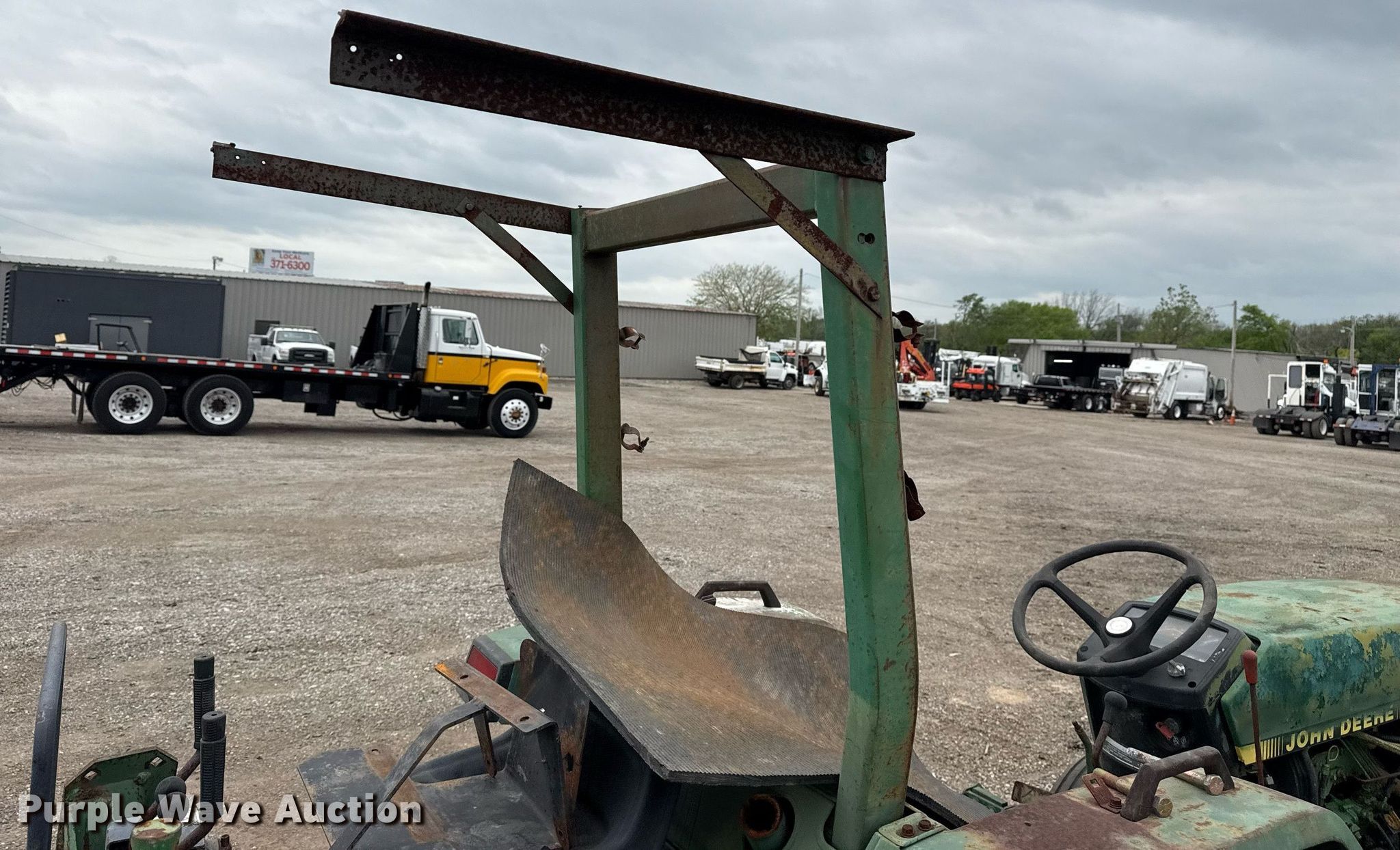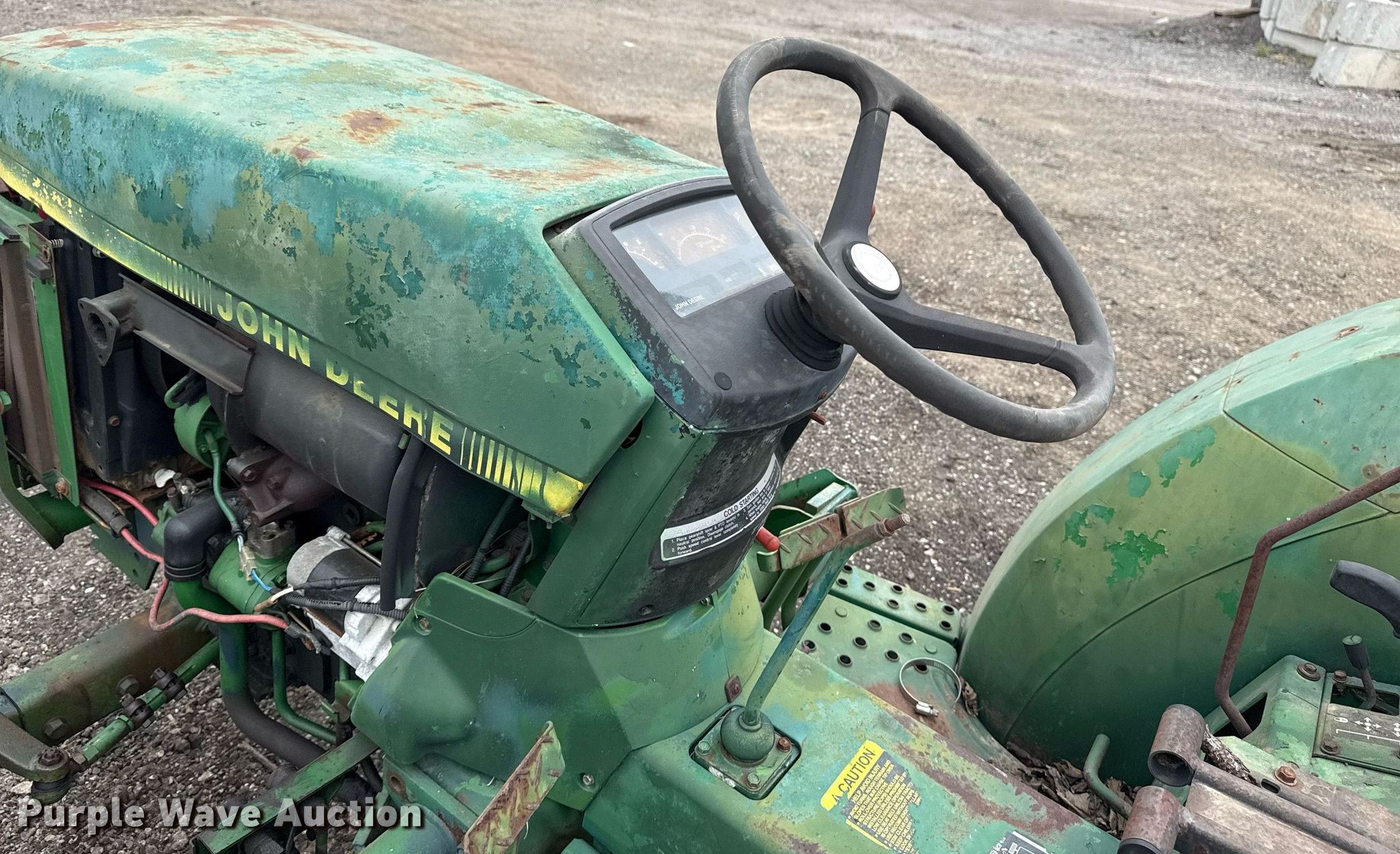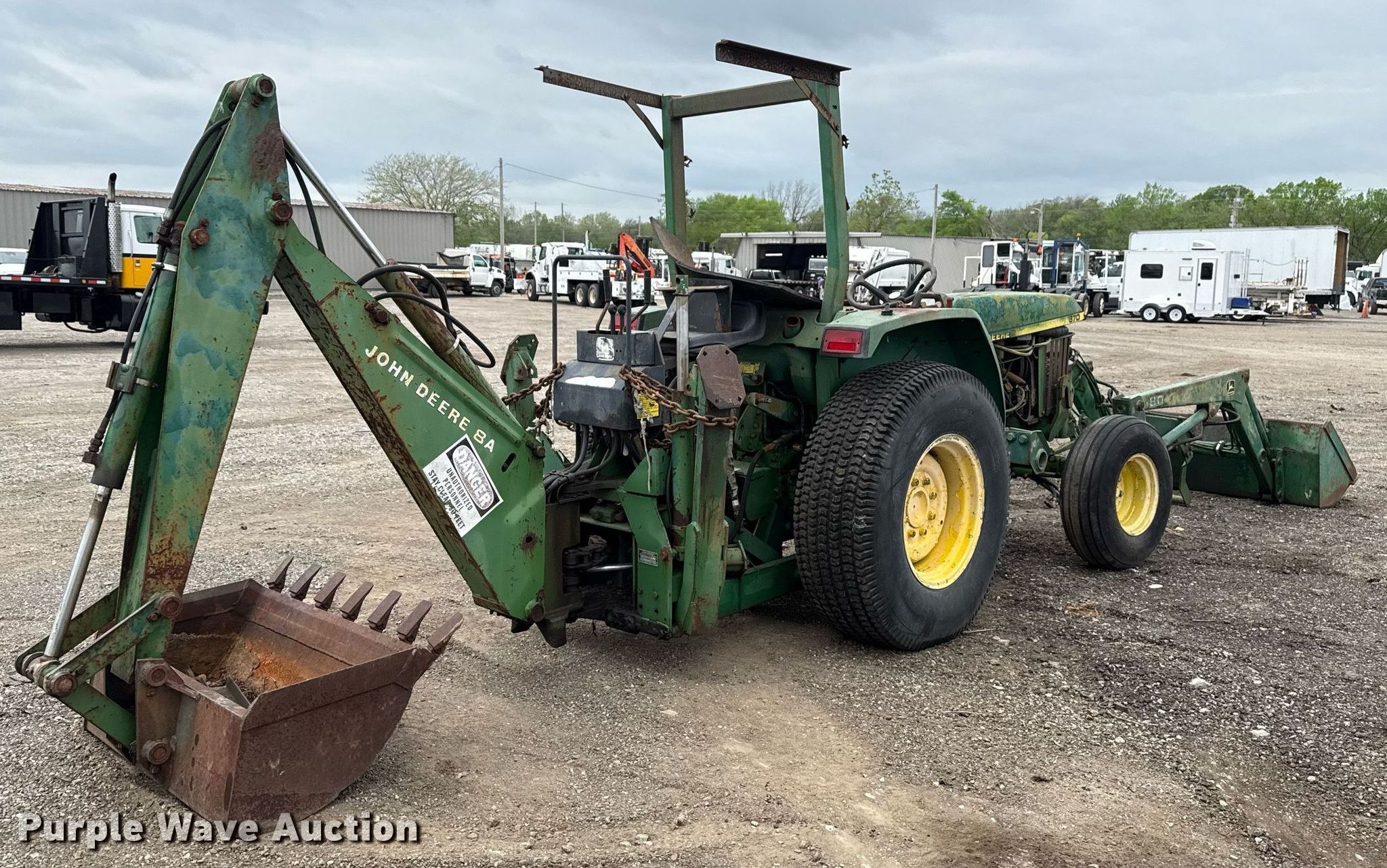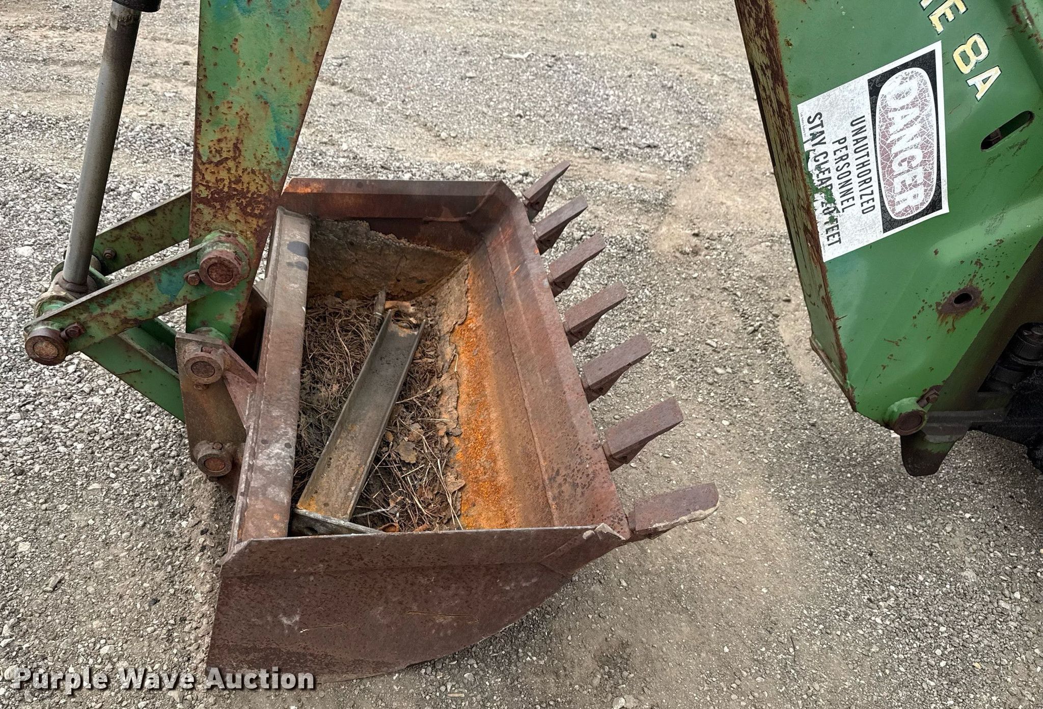 John Deere 870 tractor. Hours: 3,117 on meter. Engine John Deere 3TN64-RJK, Serial: CH3048D001065, Cylinders: 3, Fuel type: Diesel. Transmission Manual, Differential lock. Features PTO: 540, Three point, Rear: 1, Loader John Deere 80, Controls: Joystick, Bucket Width: 63", John Deere 8A backhoe attachment Bucket Width: 35", Teeth: 7.. Tires Front: 9.5L-14SL, Rear: 355/80D20. Notes Hydraulic leak, Unknown operating condition. 15107 North 137th East Avenue. Collinsville, OK 74021