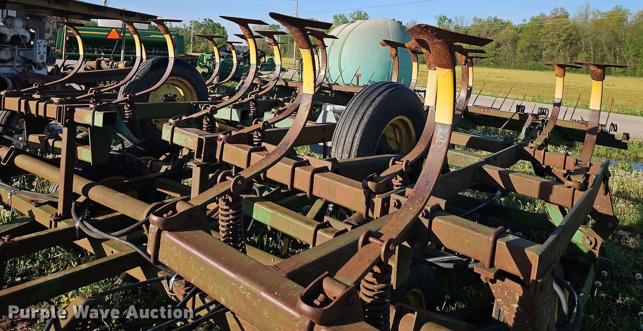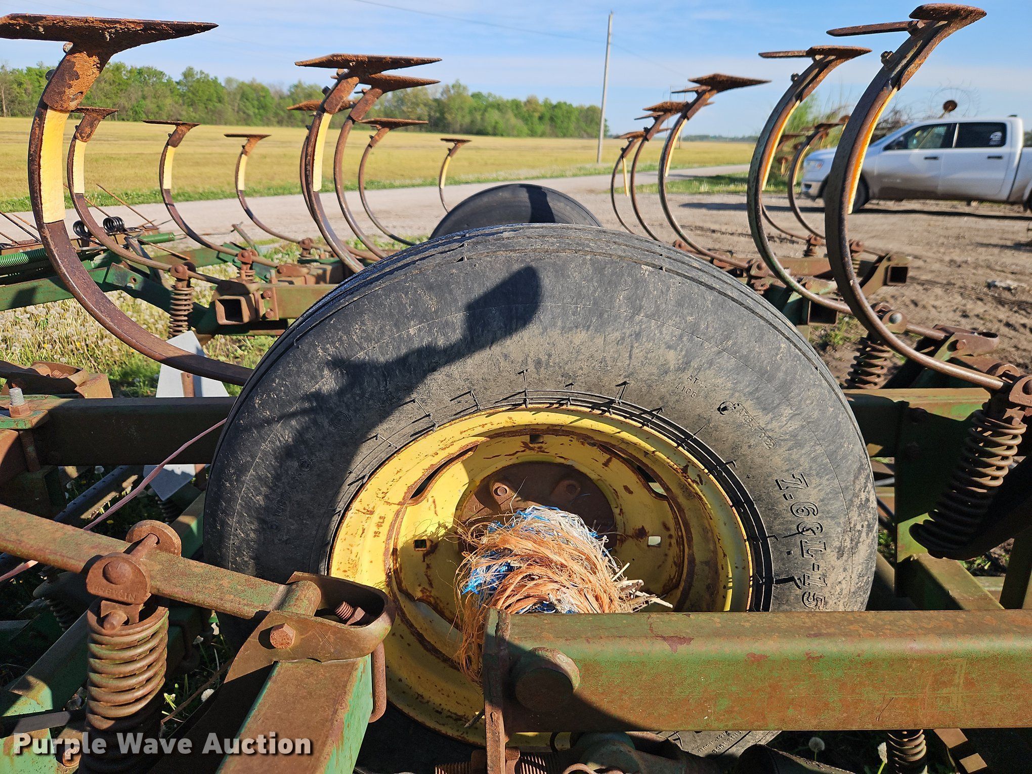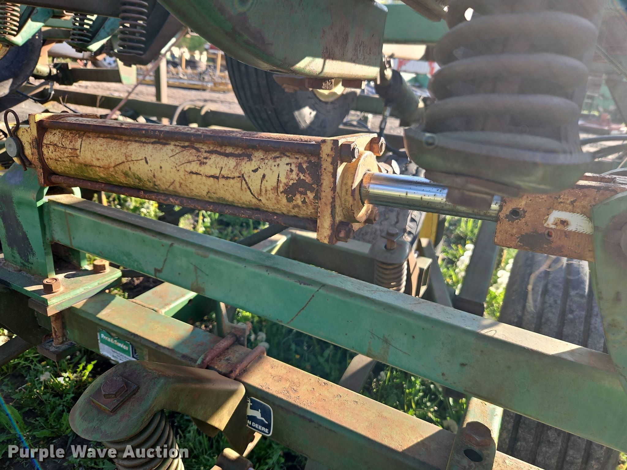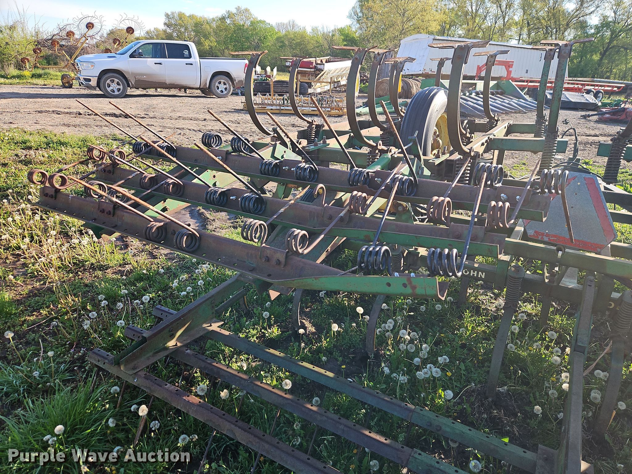 John Deere 1010 field cultivator. Overall width: 24'. Features Shanks: 47, Sweep width: 9", Operation Hydraulic lift, Hydraulic fold, Attachments Tine harrow Harrow bars: 3.. Tires Tire size: 7.60L-15, Gauge wheels Size: 7.60L-15. Butler, MO 64730