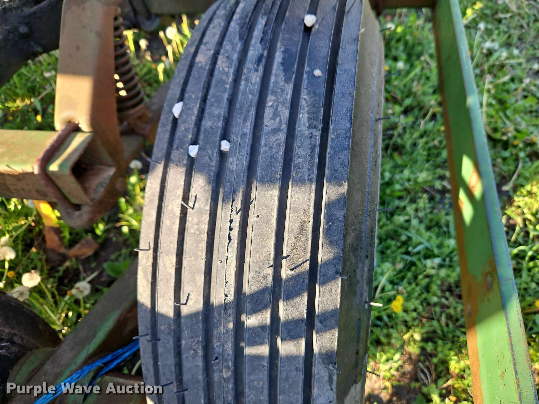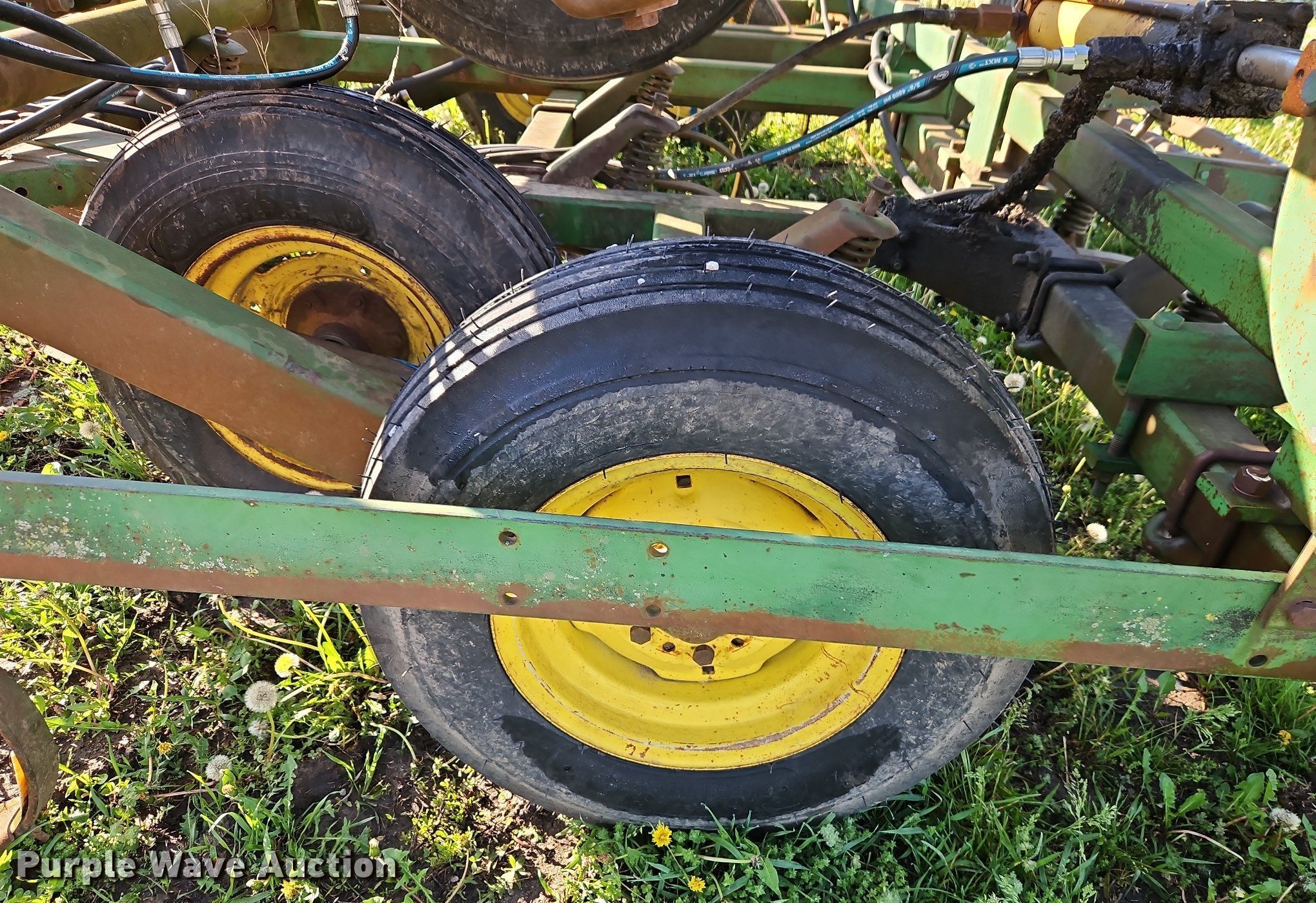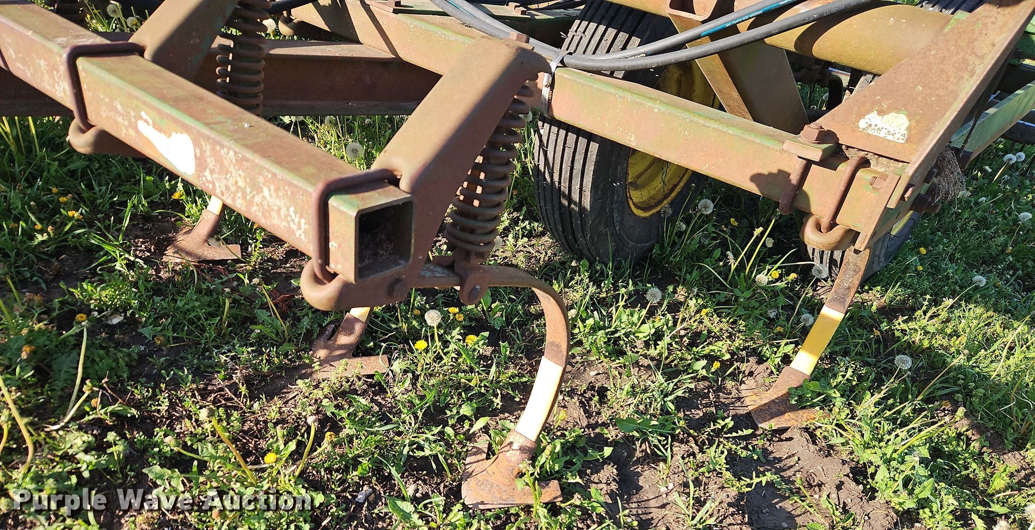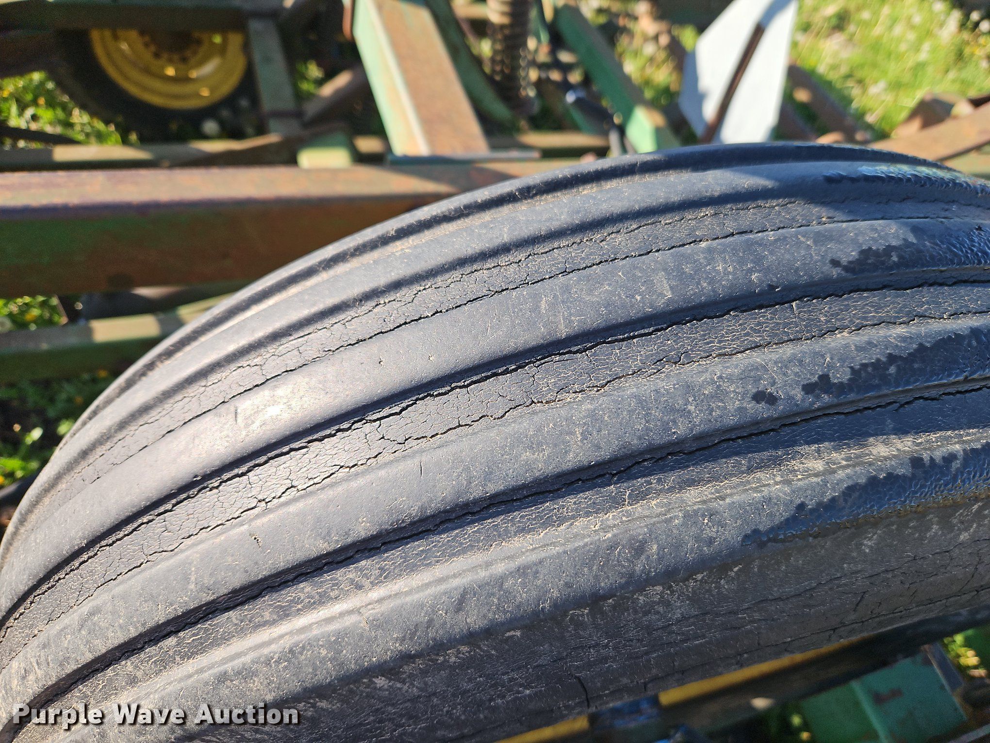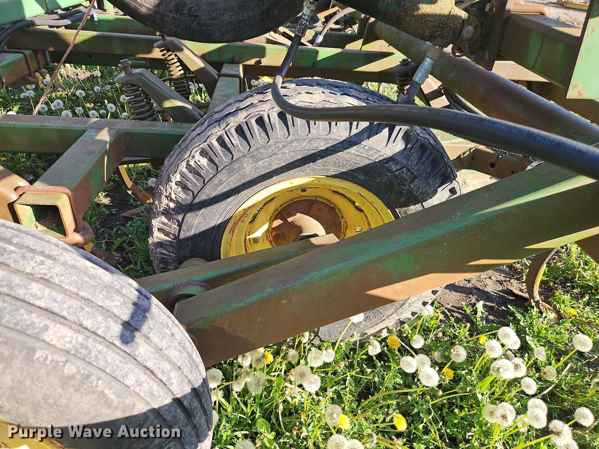 John Deere 1010 field cultivator. Overall width: 24'. Features Shanks: 47, Sweep width: 9", Operation Hydraulic lift, Hydraulic fold, Attachments Tine harrow Harrow bars: 3.. Tires Tire size: 7.60L-15, Gauge wheels Size: 7.60L-15. Butler, MO 64730