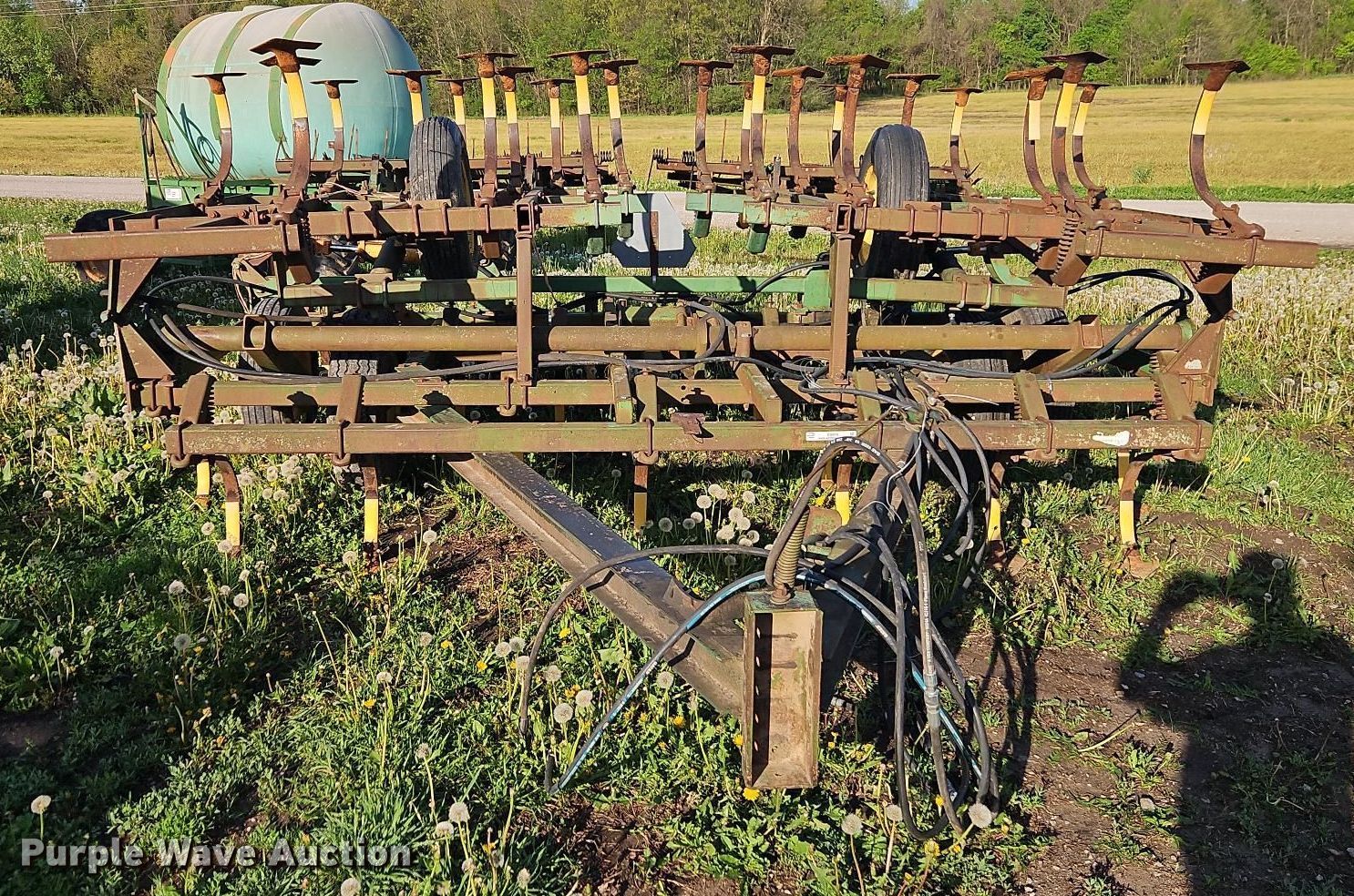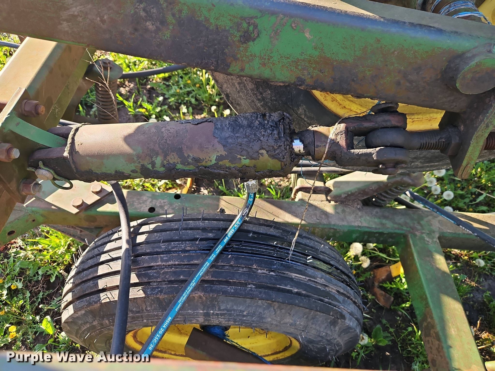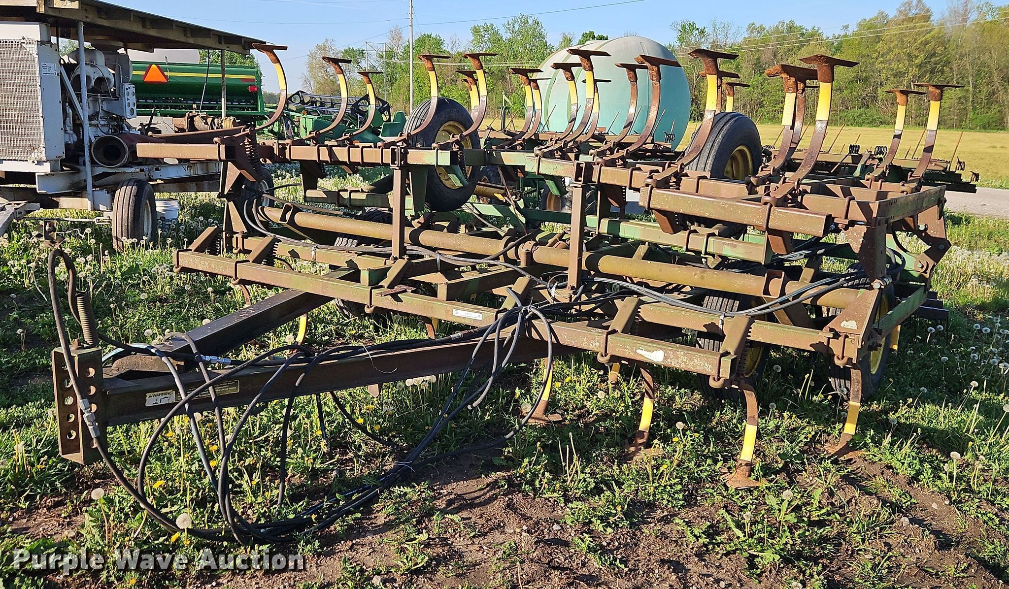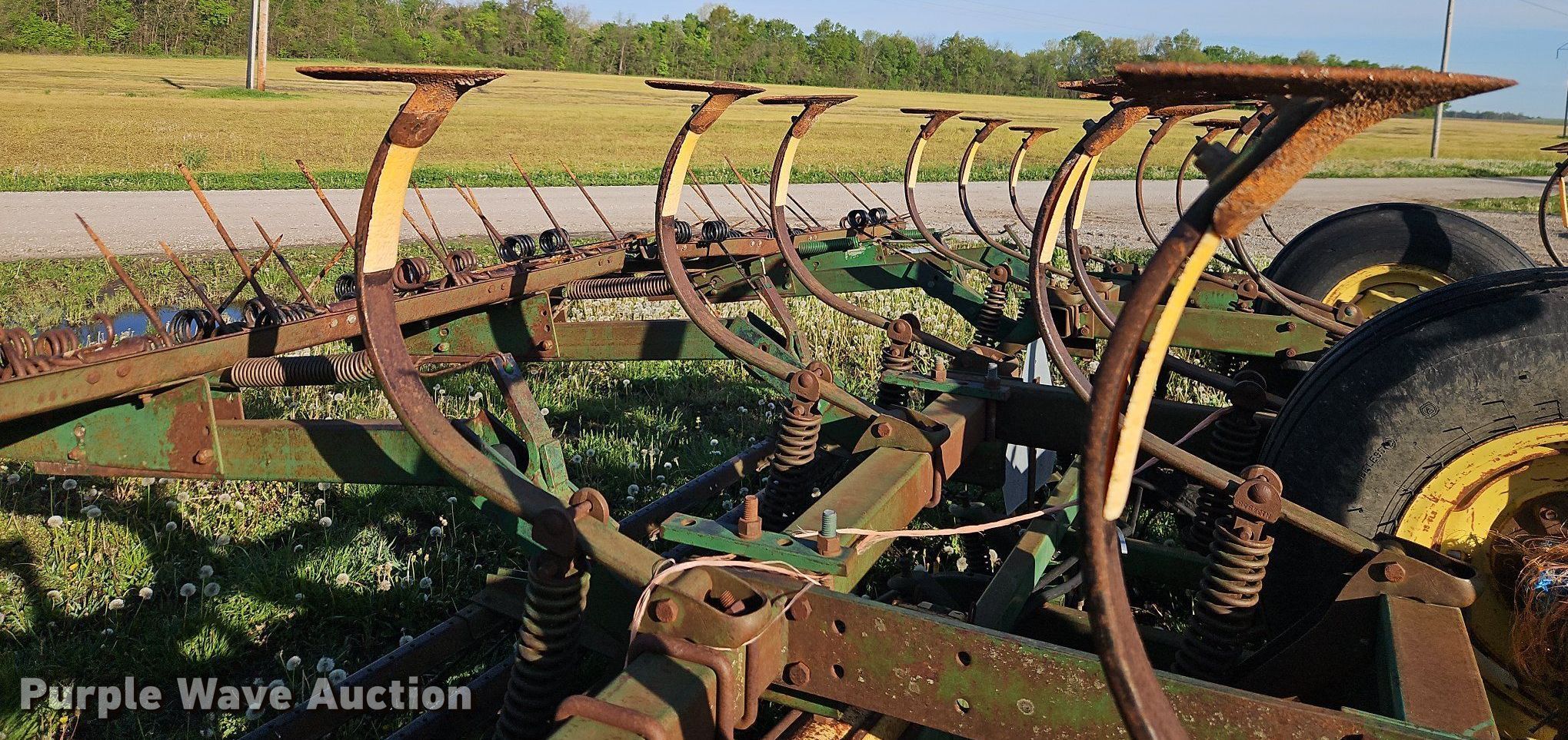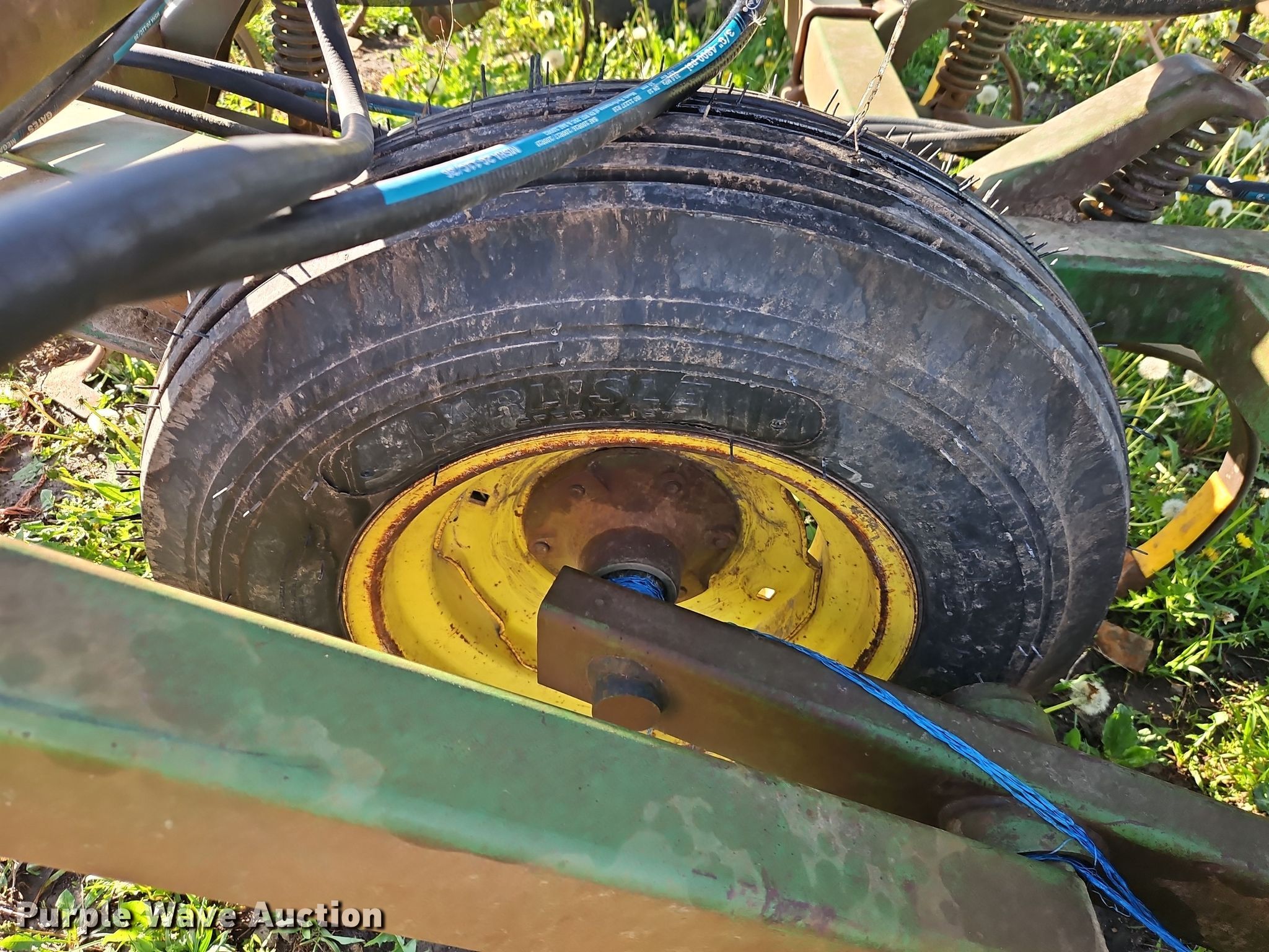 John Deere 1010 field cultivator. Overall width: 24'. Features Shanks: 47, Sweep width: 9", Operation Hydraulic lift, Hydraulic fold, Attachments Tine harrow Harrow bars: 3.. Tires Tire size: 7.60L-15, Gauge wheels Size: 7.60L-15. Butler, MO 64730