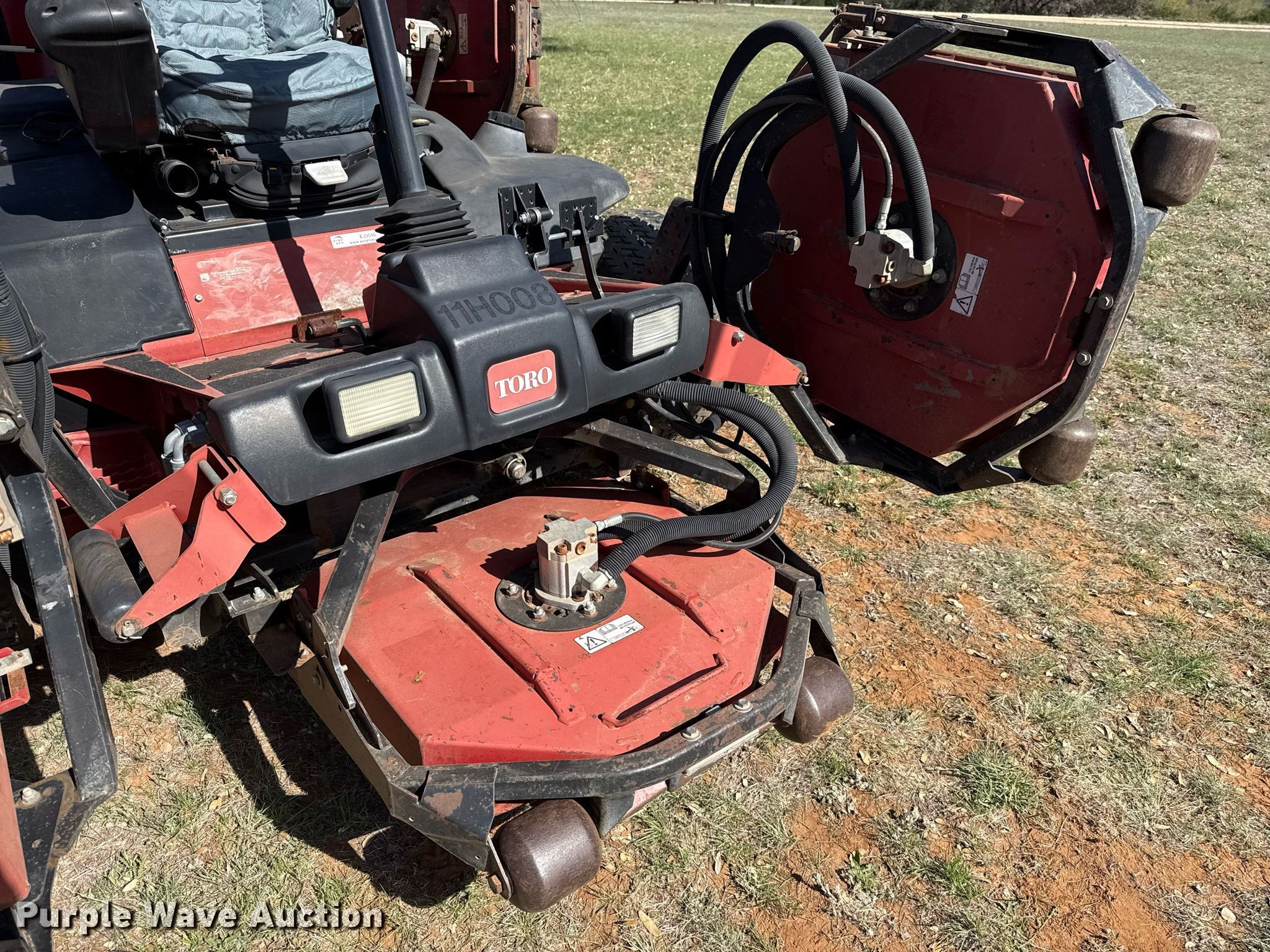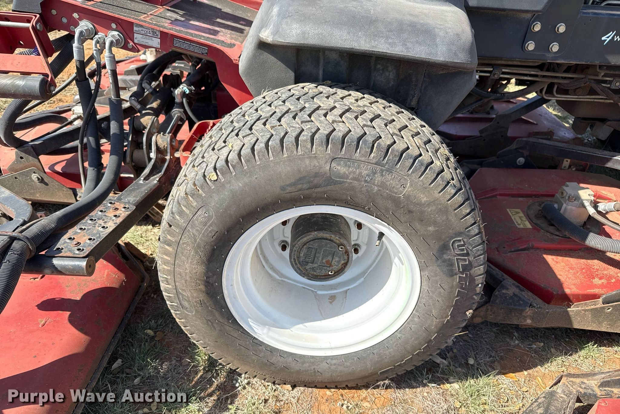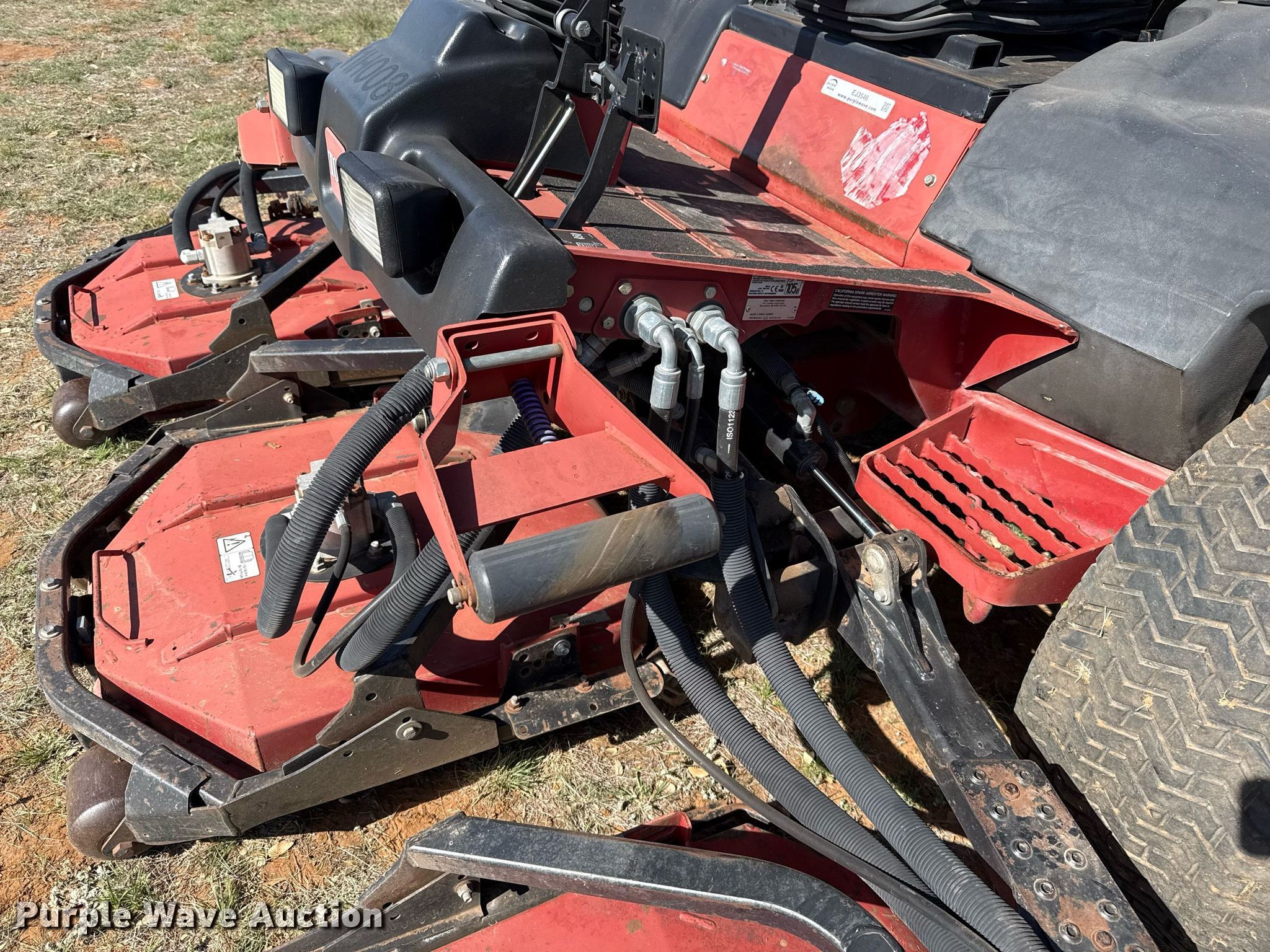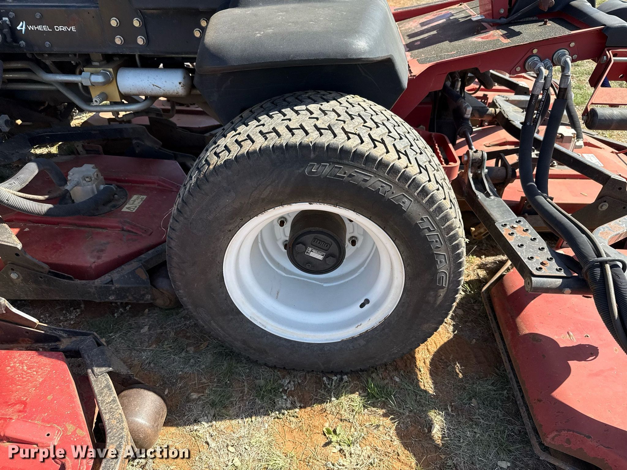 Toro Groundsmaster 4700 D ZTR lawn mower. Hours: 1,723 on meter, Cutting width: 150", Serial: 30858311000251, Unit #: 11H008. Engine Kubota V2403-T, Serial: BE1267, Displacement: 2.4L, Cylinders: 4, Fuel type: Diesel, kW: 41.7. Transmission Hydrostatic. Chassis Four wheel drive. Features Hydraulic fold decks, Flip up front deck. Tires Front: 14.00-15, Rear: 20x10.00-10, Brand: Carlisle. Mike Carpenter. Lampasas, TX 76550