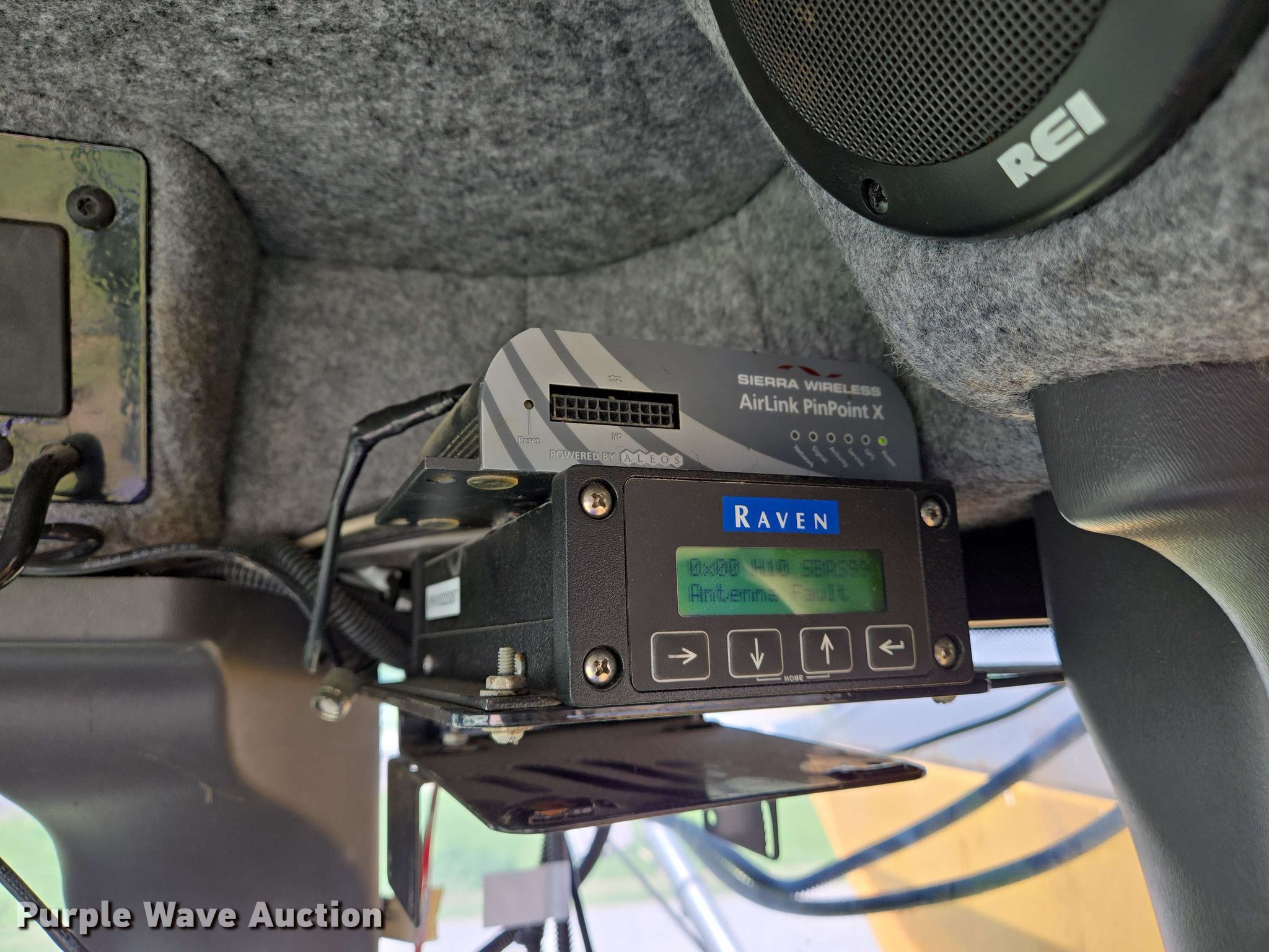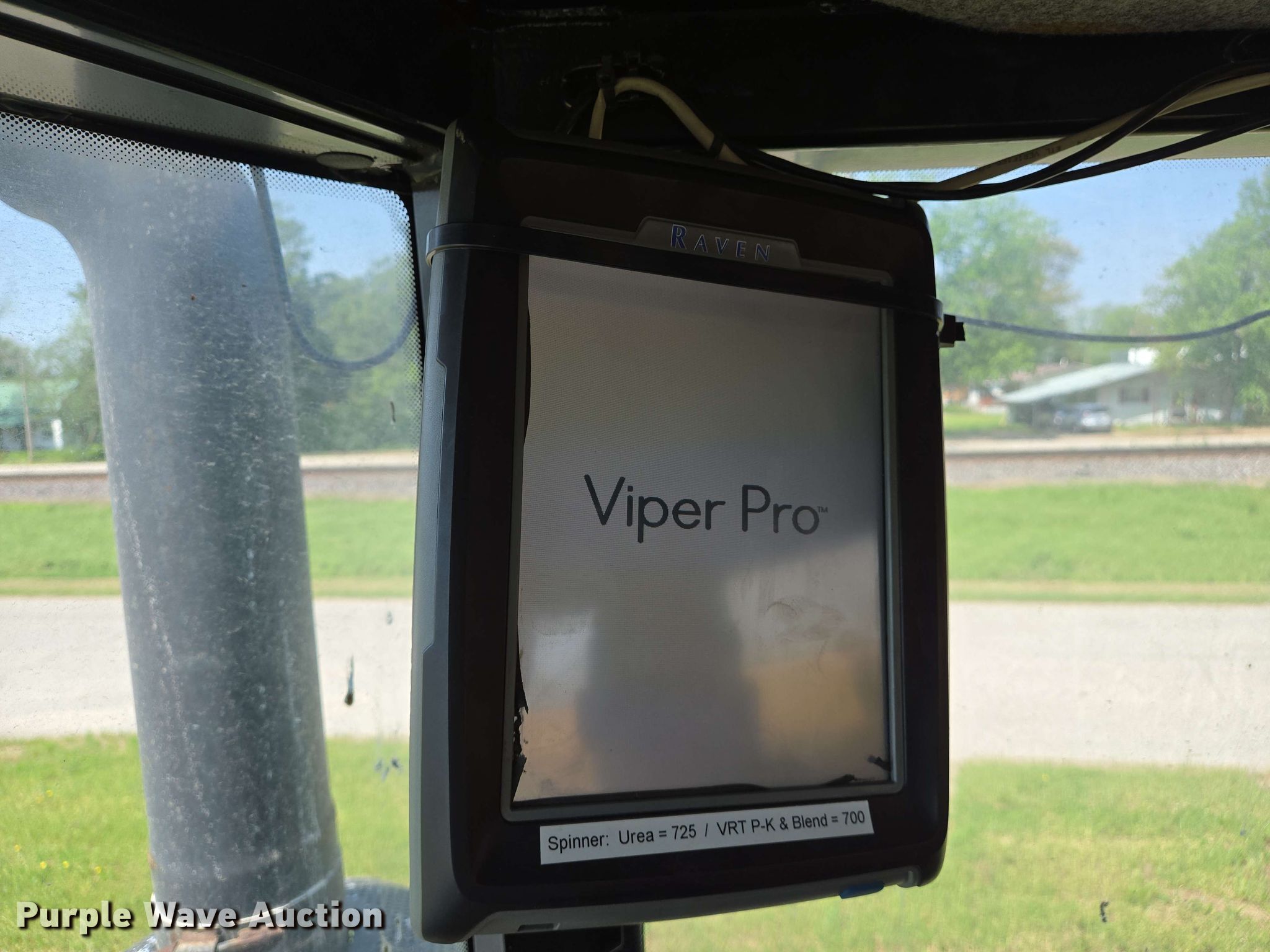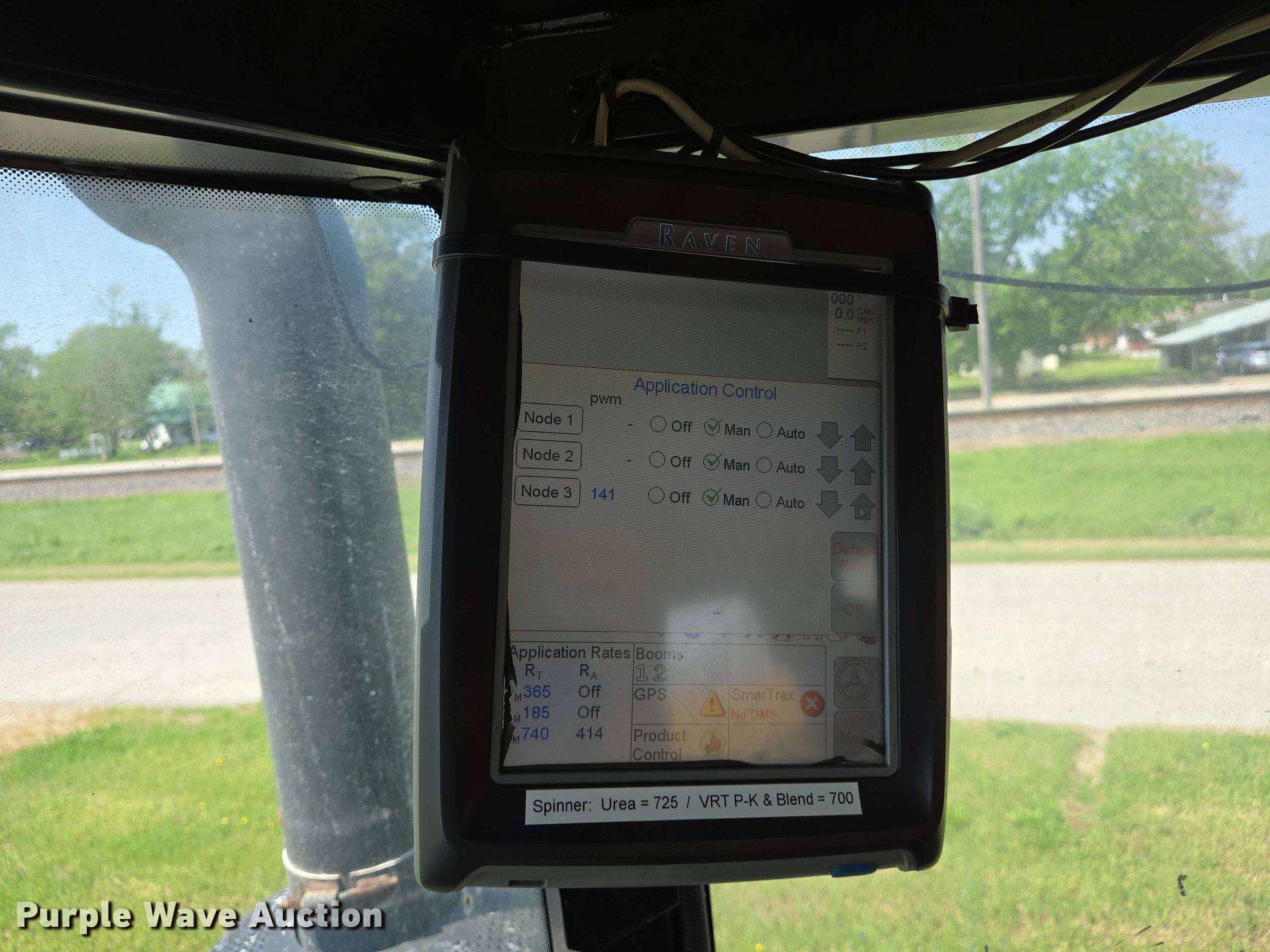 2015 RoGator RG1100B spreader. Engine hours: 2,857 on meter, VIN: AGCA1100PFNSN1244. Engine Fuel type: Diesel. Transmission Hydrostatic. Chassis Hydraulic axle width adjust. Operators station AC, Heat, Rotary beacon. Features Hydraulic ladder, Dry fertilizer spreader bed New Leader G4, Length: 11', Stainless steel, Dual spinners, Roll tarp, Conveyor belt, Electronics GPS monitor Raven, GPS receiver Raven Viper Pro, Auto steer, Ground radar. Tires Size: 380/90R46, Row crop tires. MFA Inc. Bernie, MO 63822