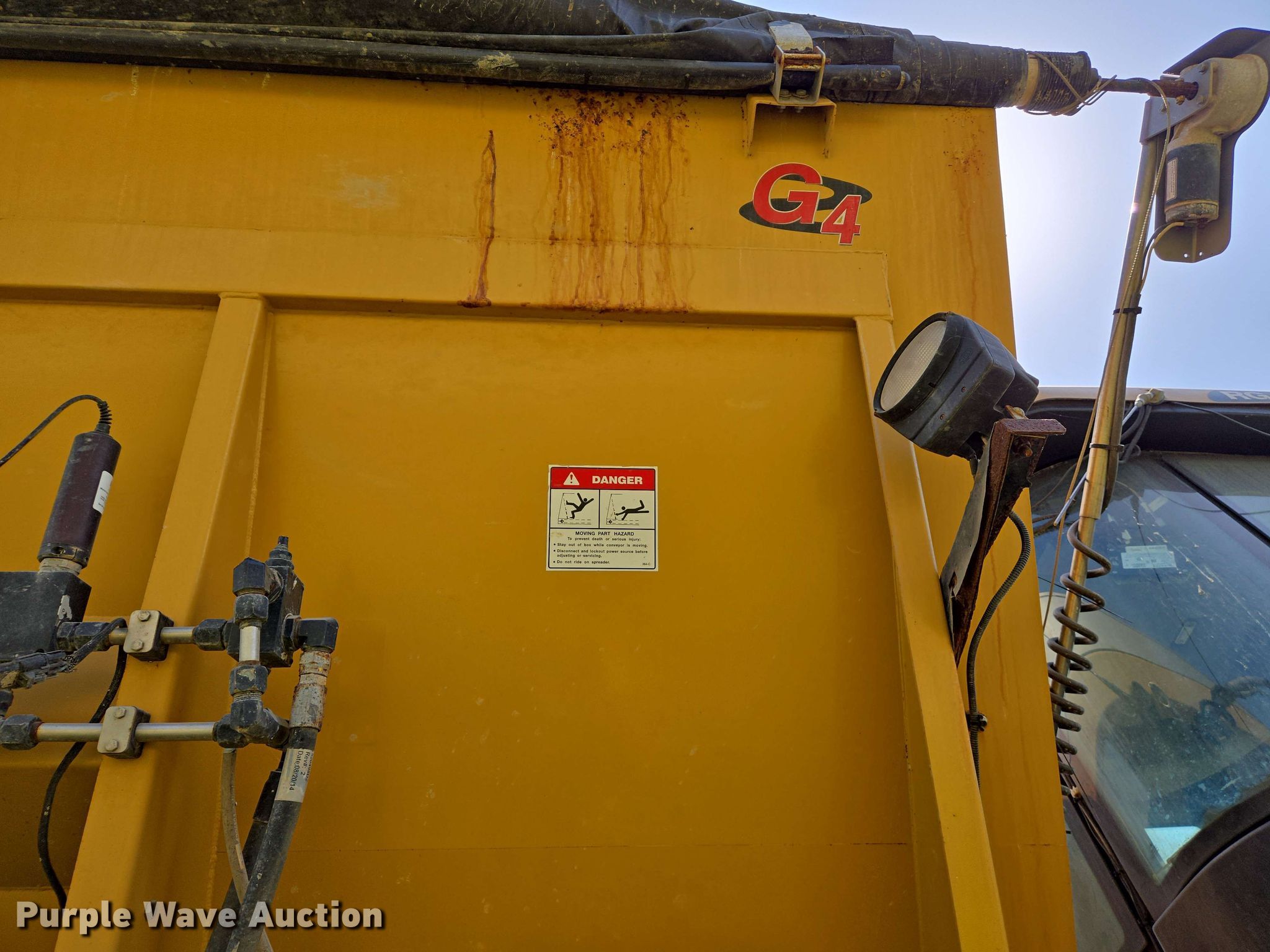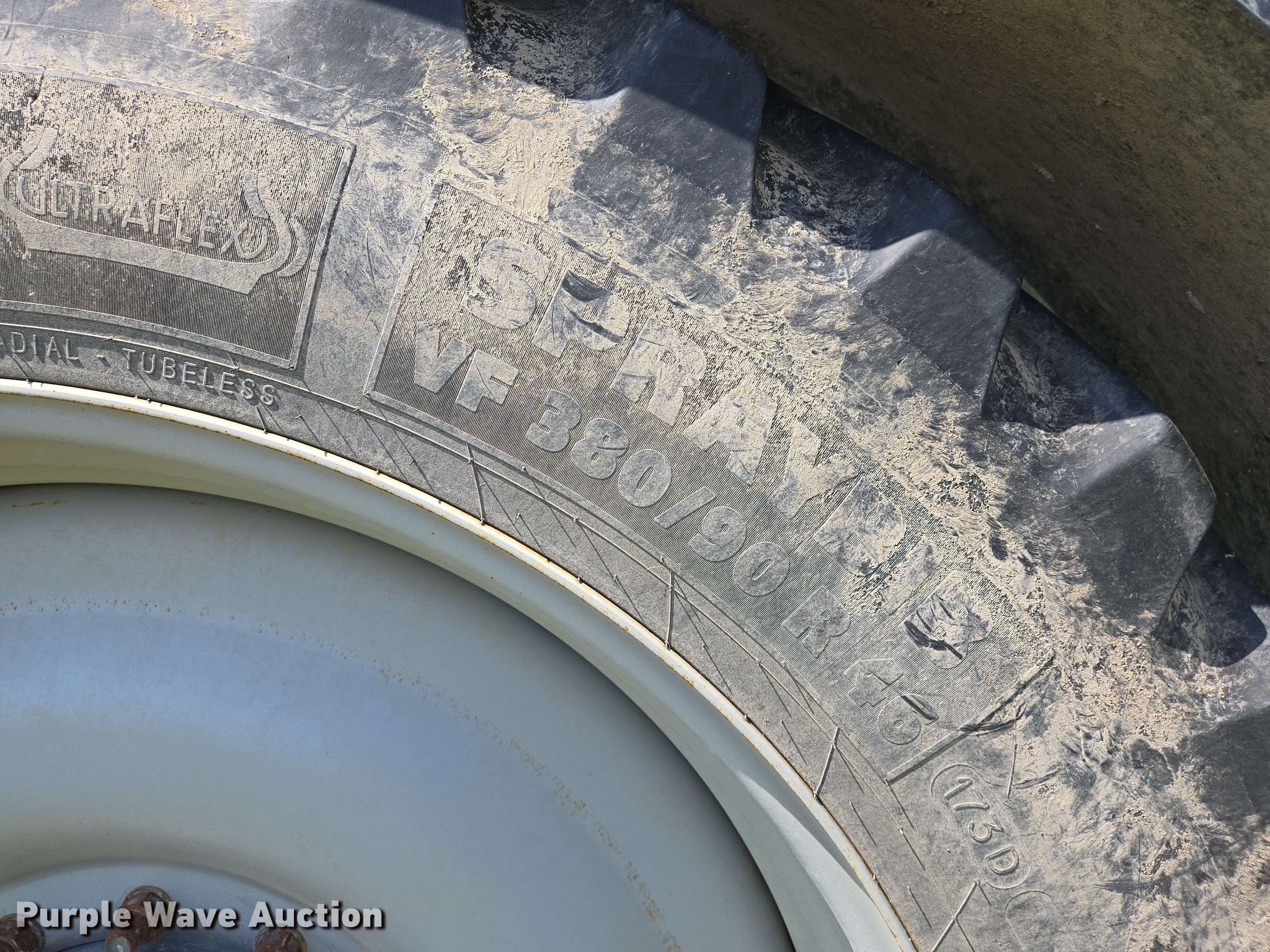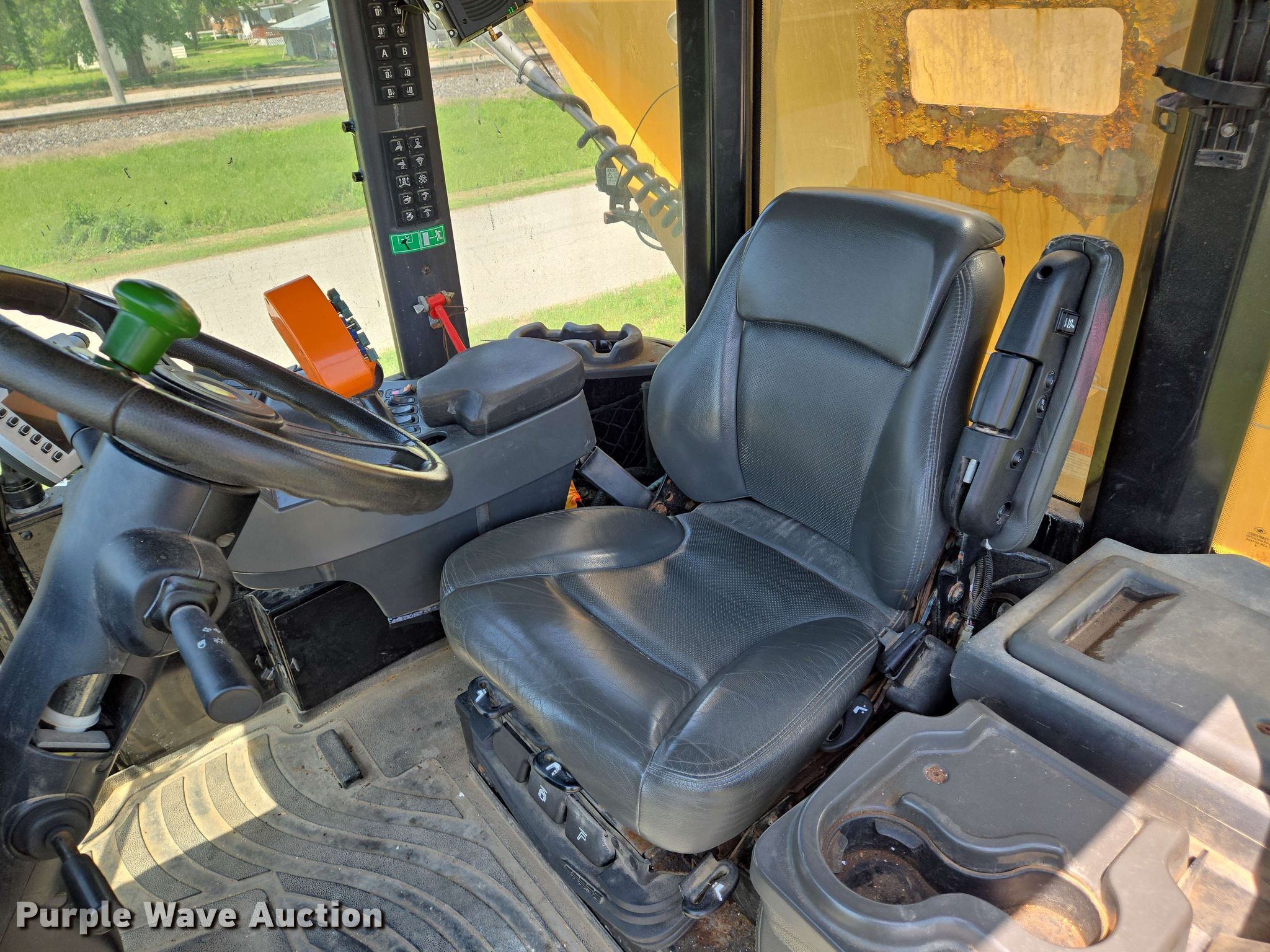 2015 RoGator RG1100B spreader. Engine hours: 2,857 on meter, VIN: AGCA1100PFNSN1244. Engine Fuel type: Diesel. Transmission Hydrostatic. Chassis Hydraulic axle width adjust. Operators station AC, Heat, Rotary beacon. Features Hydraulic ladder, Dry fertilizer spreader bed New Leader G4, Length: 11', Stainless steel, Dual spinners, Roll tarp, Conveyor belt, Electronics GPS monitor Raven, GPS receiver Raven Viper Pro, Auto steer, Ground radar. Tires Size: 380/90R46, Row crop tires. MFA Inc. Bernie, MO 63822